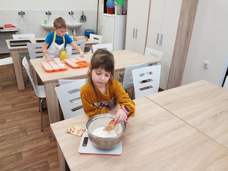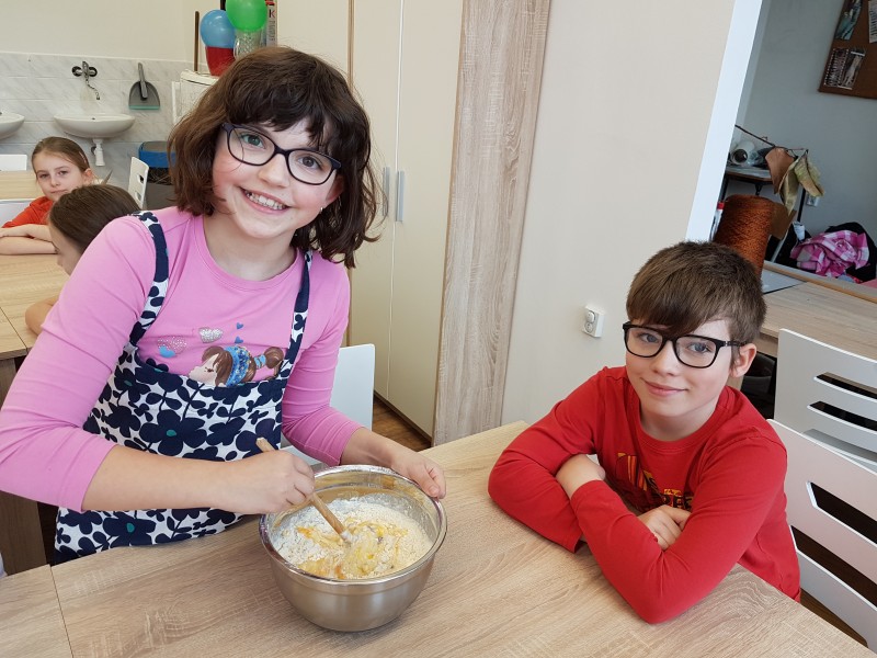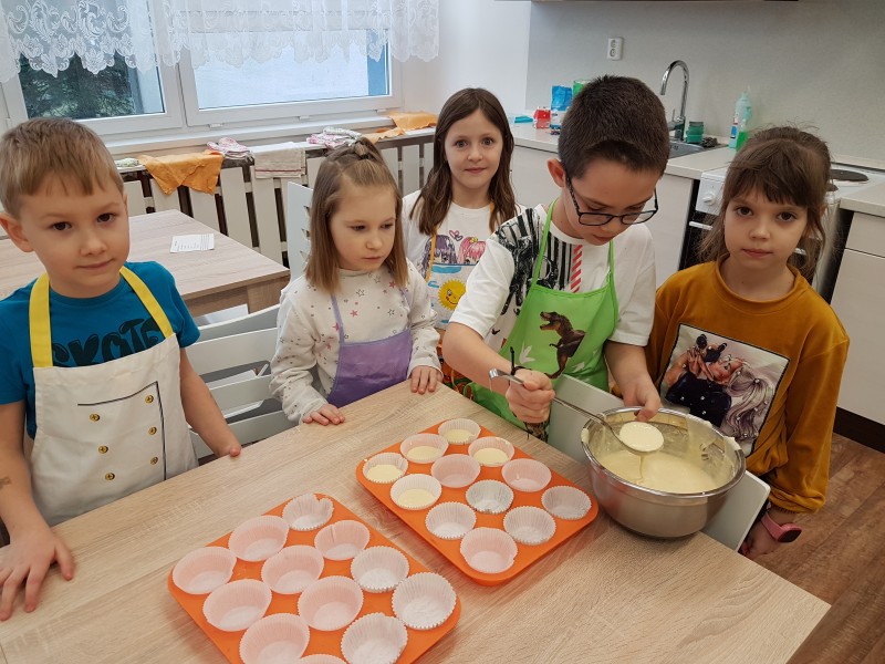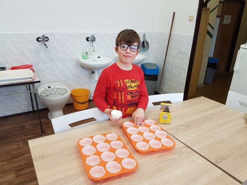 Kuchtíci se opět pustili do pečení. Tentokrát jsme si zkusili upéct muffiny. Malé pečené dortíky byly nadýchané a uvnitř skrývaly kousky čokolády. Výborná svačinka nám všem chutnala.