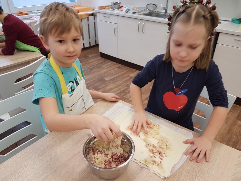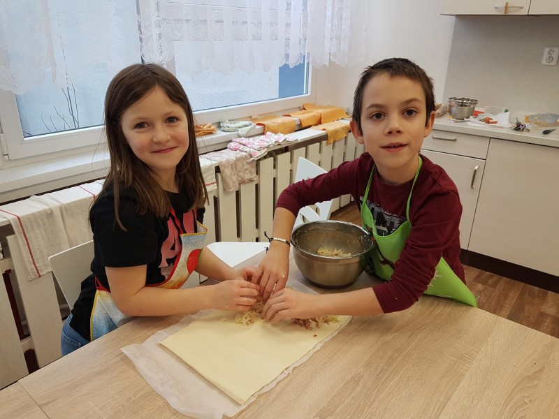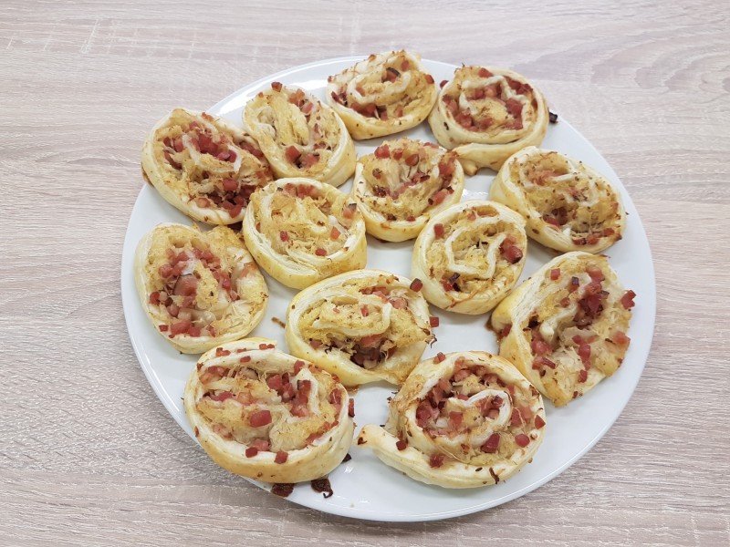 Kuchtíci si po sladkém vánočním hodování upekli rychlou svačinku z kysaného zelí a slaniny. Zelňáky jsou jednoduché na přípravu a chutnají teplé i studené.