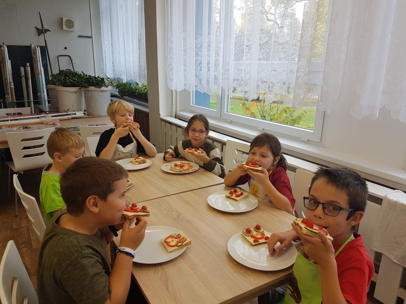Na prvním kroužku Kuchtíků jsme si vytvořili usměvavé talíře plné vitamínů.