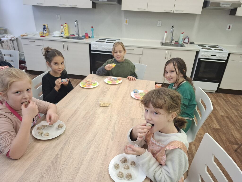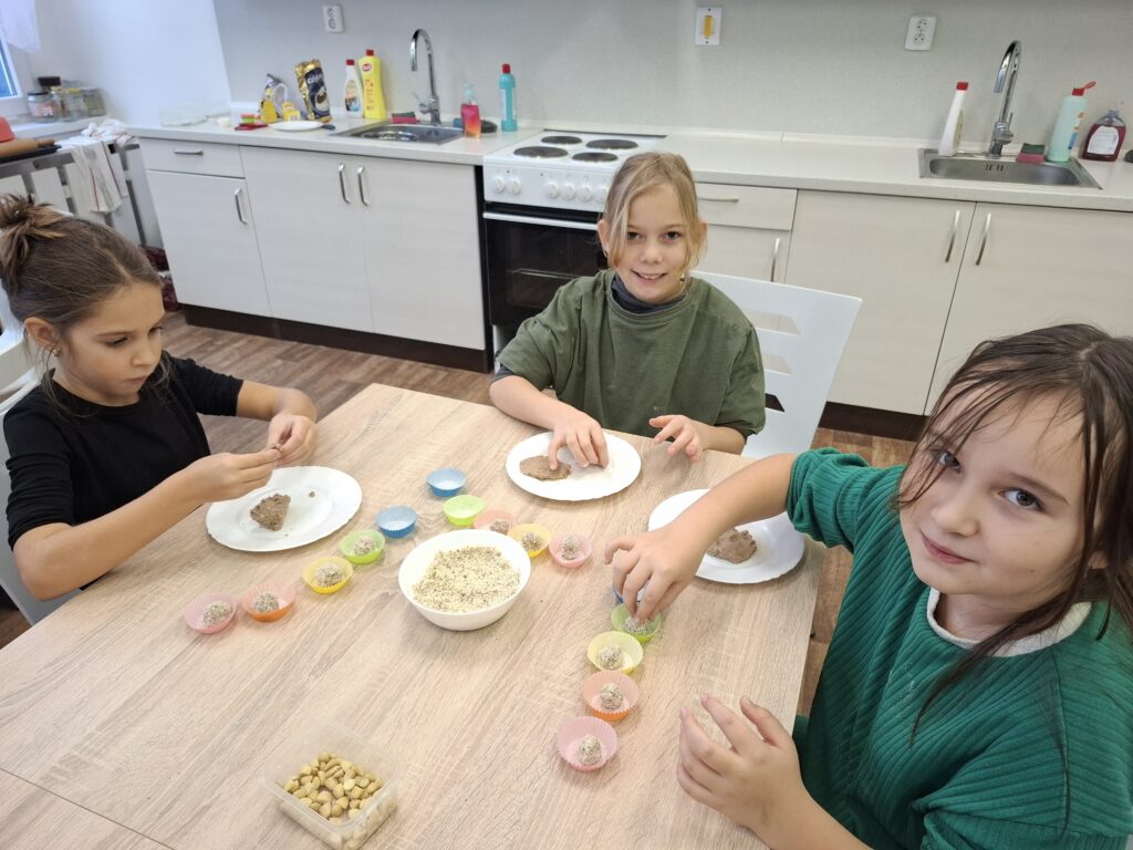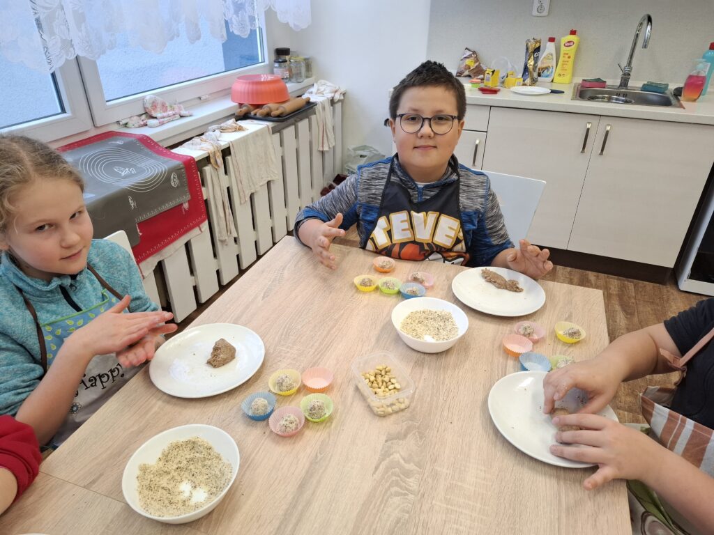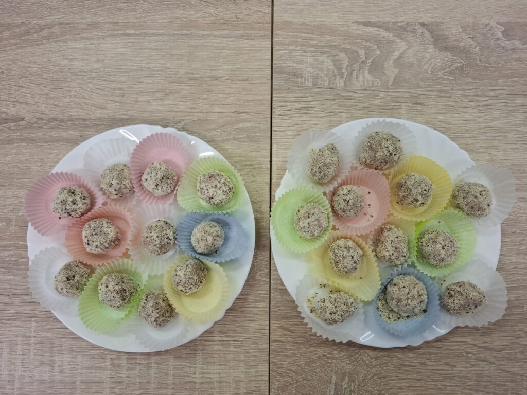 Vánoce už klepou na dveře a kuchtíci si připravili nepečené cukroví. Tajemství úspěchu je správná konzistence těsta, kterou jsme po celou dobu přípravy testovali ochutnávkou.  Deliskové kuličky obalené v drcených mandlích se nám moc povedly.  Kuchtíci přejí všem HEZKÉ VÁNOCE.