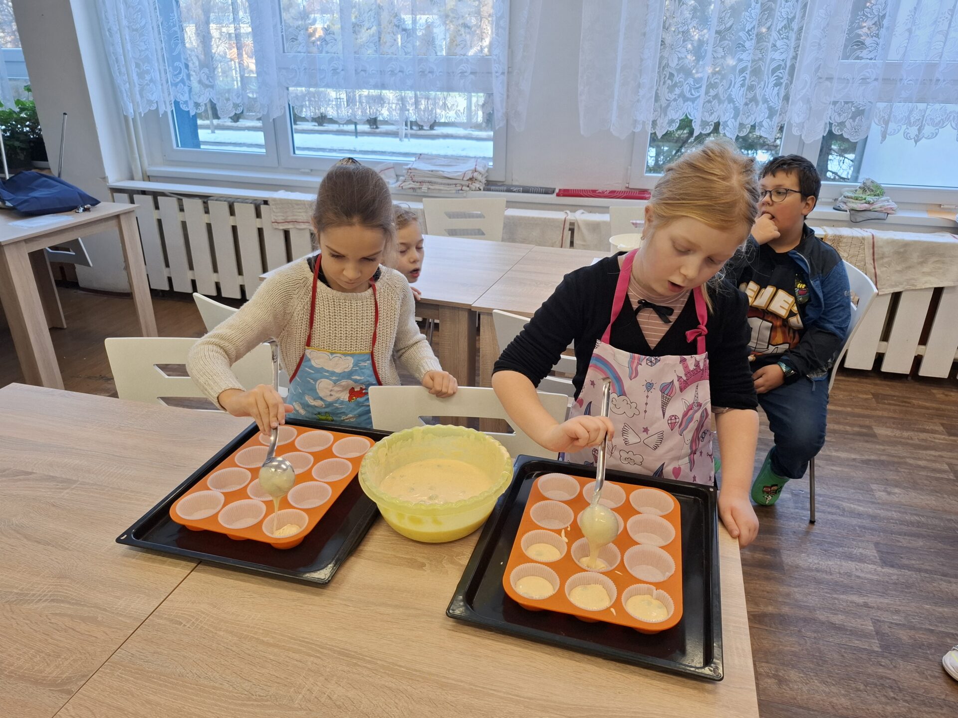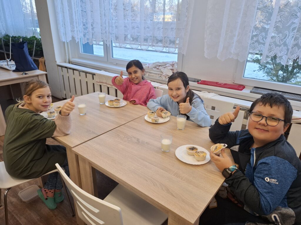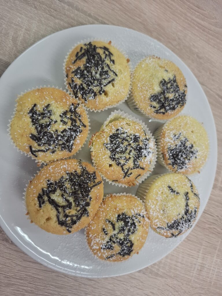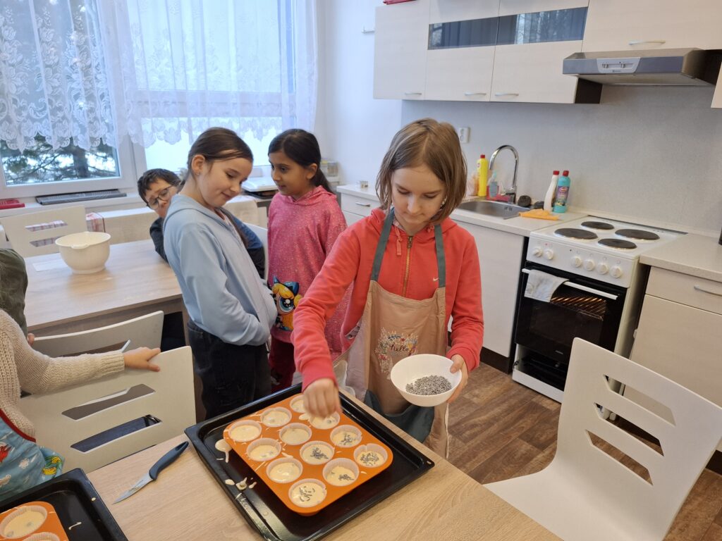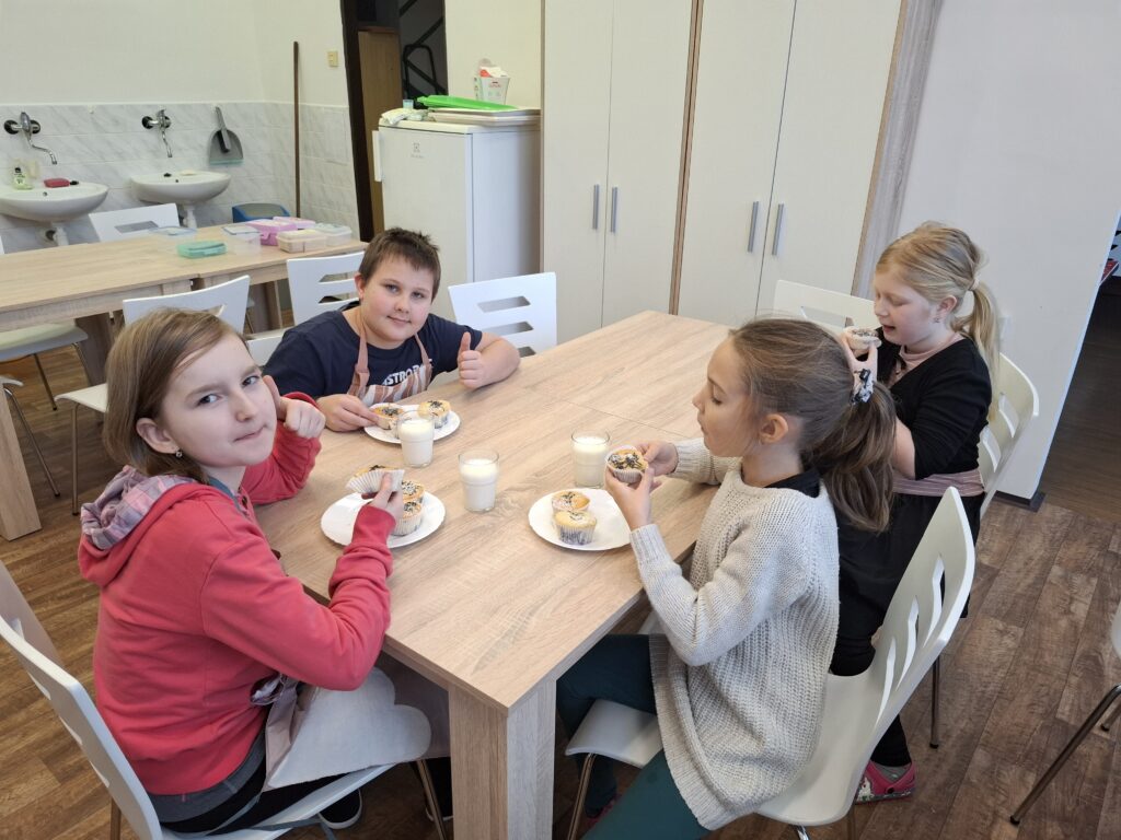 Kuchtíci si dnes upekli borůvkové muffiny. Malé, nadýchané a vláčné dortíky se nám povedly a moc nám chutnaly.