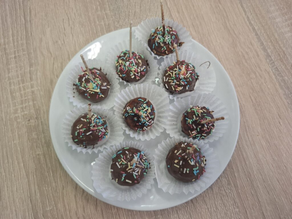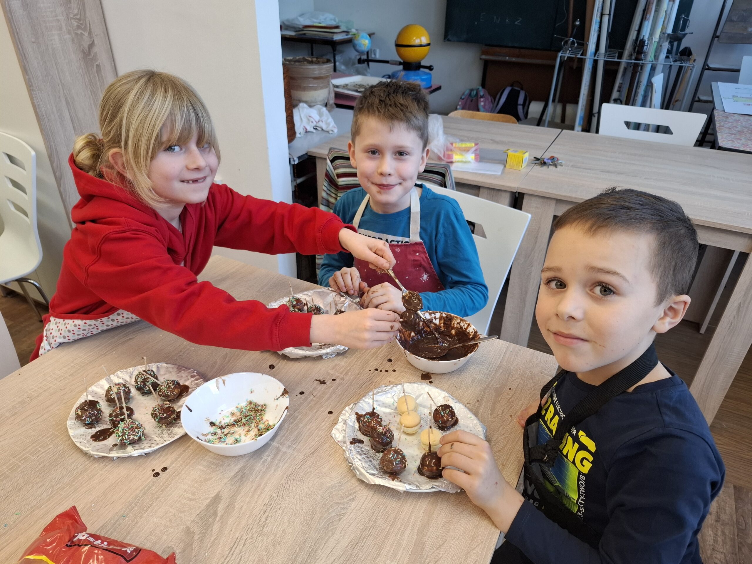 Jednoduché, rychlé a dobré. Kuchtíci si připravili banánové jednohubky, po kterých měli pusy celé od čokolády. Tuto dobrotu můžeme servírovat při dětských oslavách.