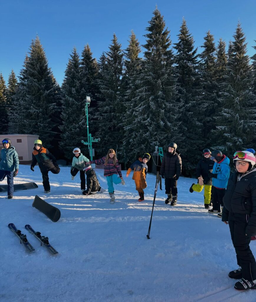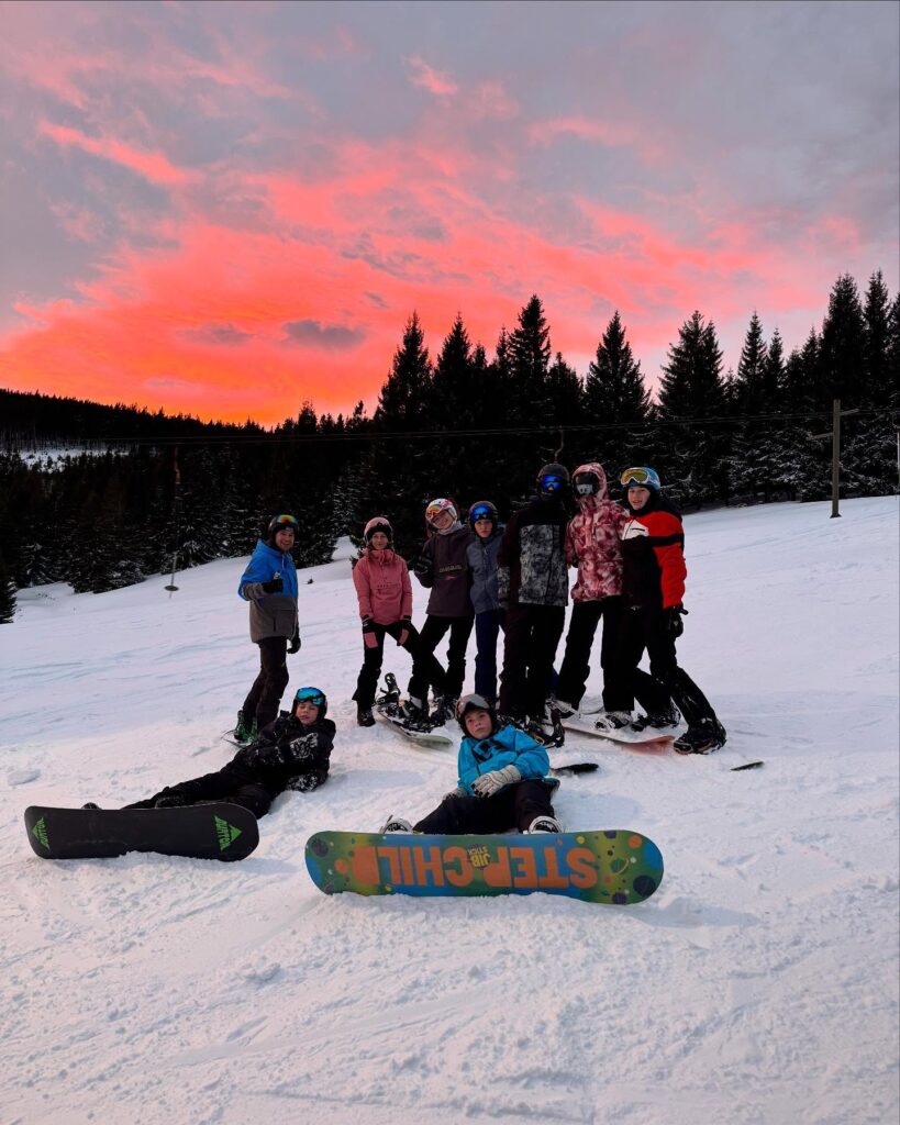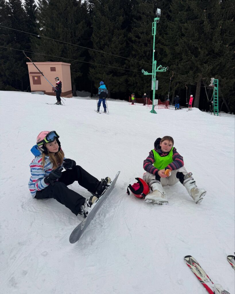 V lednu se Sofie, Mia, Čenda, Vojta, Kryštof a Pavel zúčastnili lyžařského výcviku. Ubytovaní jsme byli v Boudě Grizzly v Malé Úpě v Krkonoších. U chaty byly 2 sjezdovky s vleky a spousta sněhu. Každý den dopoledne i odpoledne jsme lyžovali nebo jezdili na snowboardu. Jednou jsme měli i večerní lyžování.