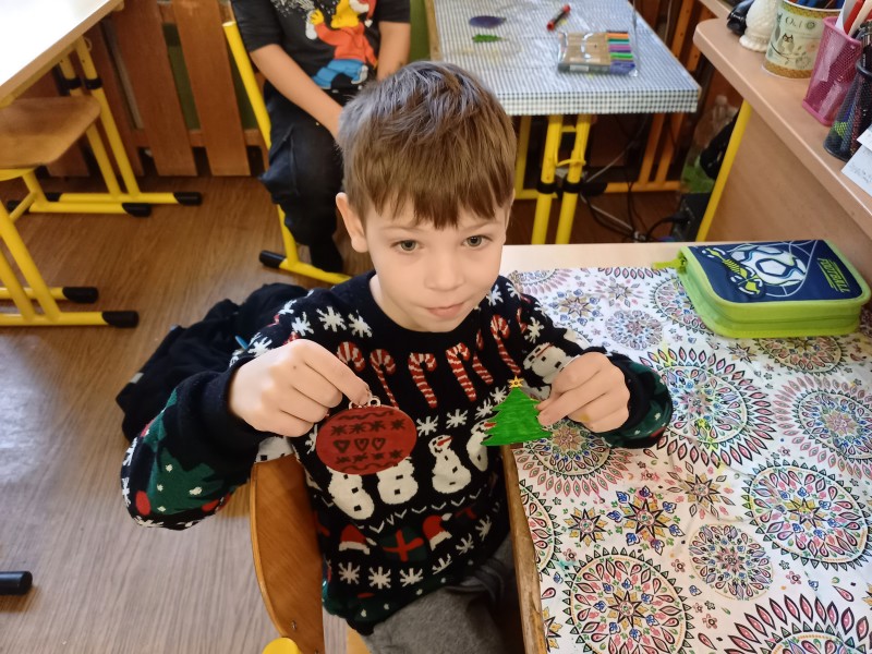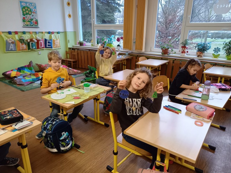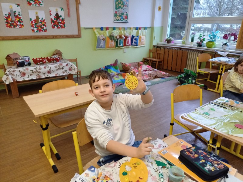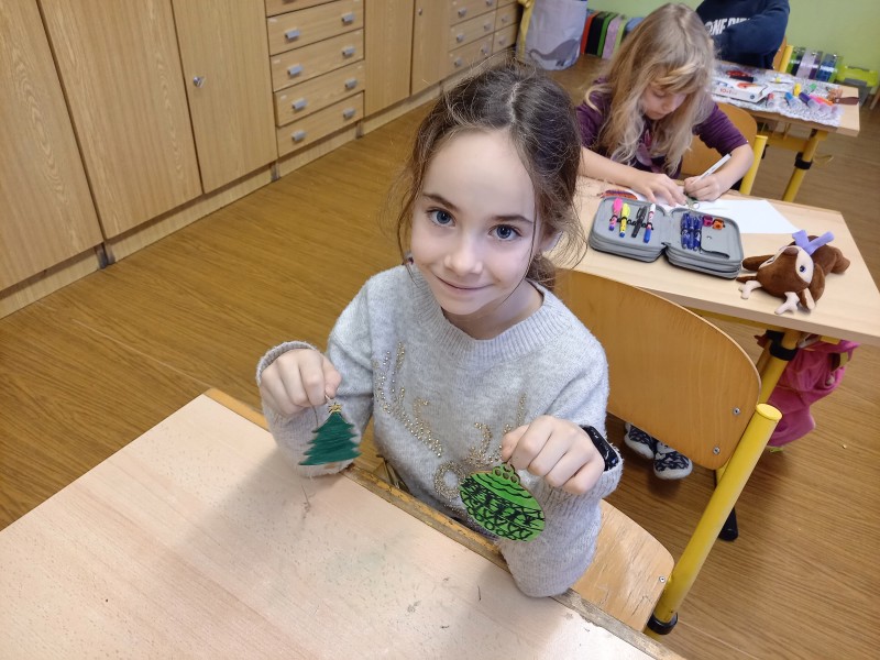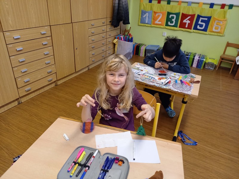 Na dřevěné ozdoby děti malovaly převážně temperovými barvami.