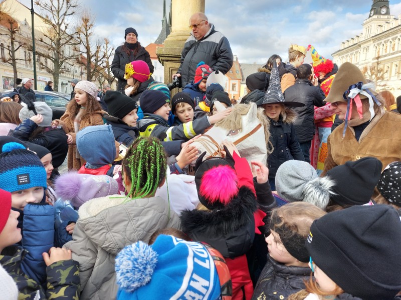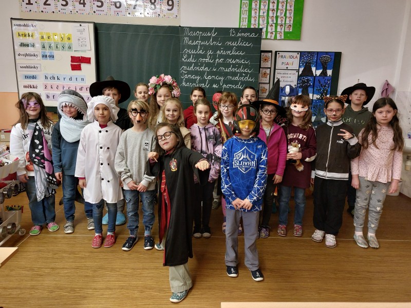 Dnes 13. 2. jsme společně oslavili Masopust, na který nás tradičně pozvala MK Louny. Letos nás doprovodila kapela Superkus při ZŠ Louny. Sešli jsme se na Mírovém náměstí a sledovali masopustní rej. Dostali jsme malé občerstvení a teplý čaj. Všichni jsme si den užili a naše masky nás krásně zdobily.
