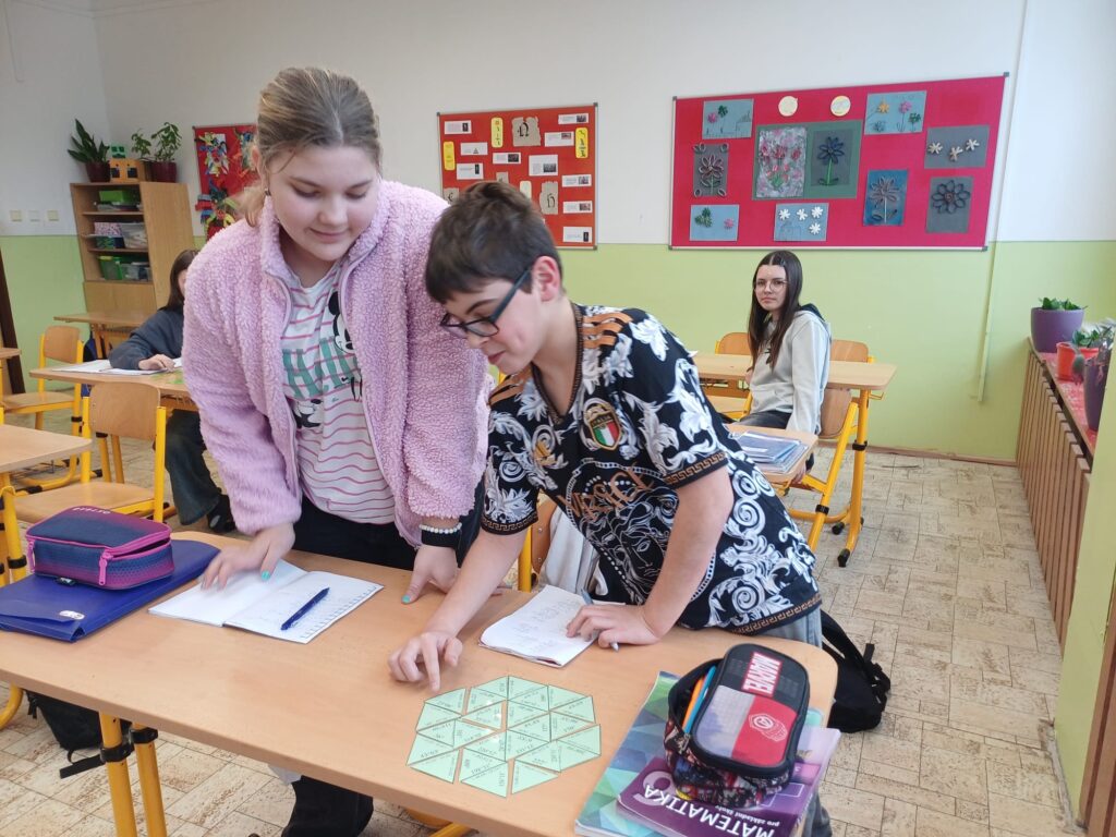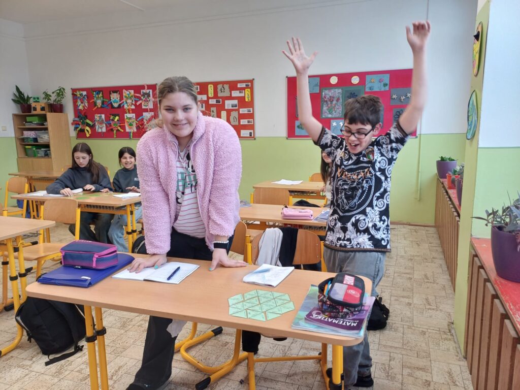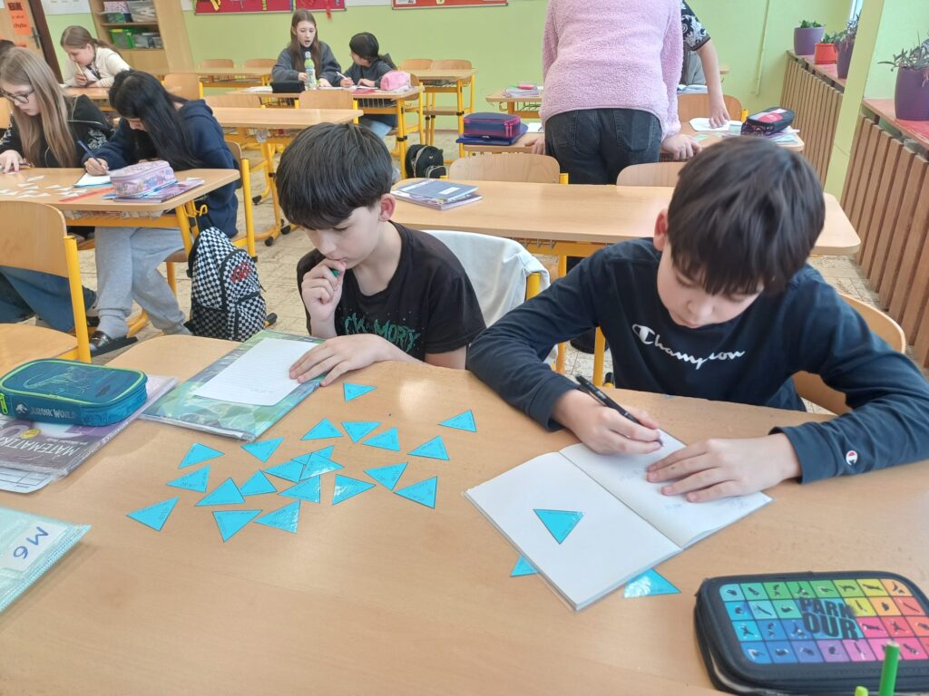 Při skládání trimina museli pečlivě počítat velikosti úhlů ve stupních, správně sčítat i odčítat a zároveň spolupracovat ve dvojicích. Díky této aktivitě si nejen upevnili své početní dovednosti, ale také rozvíjeli logické myšlení a schopnost týmové práce.