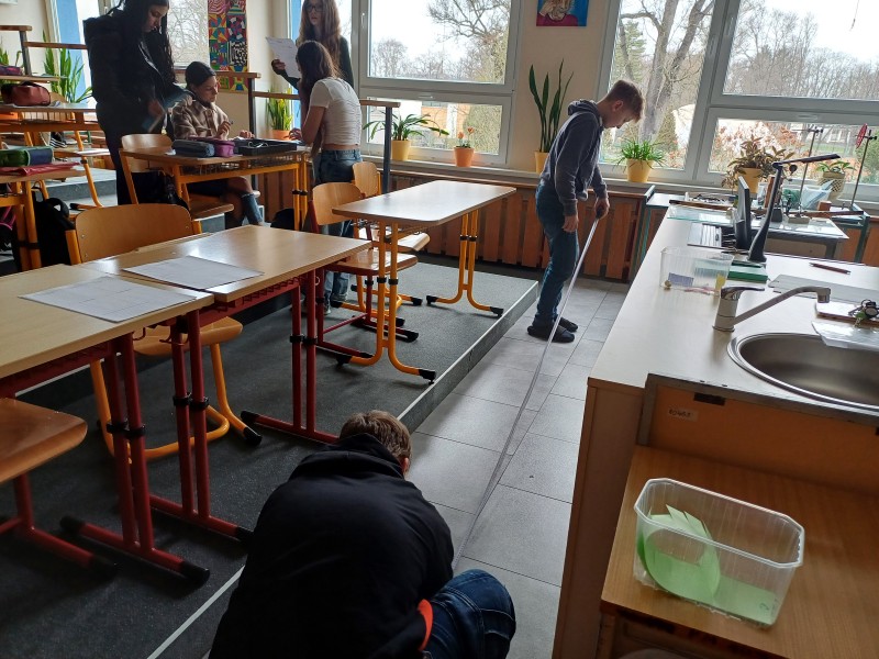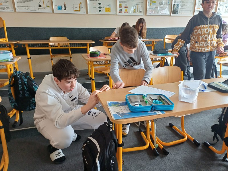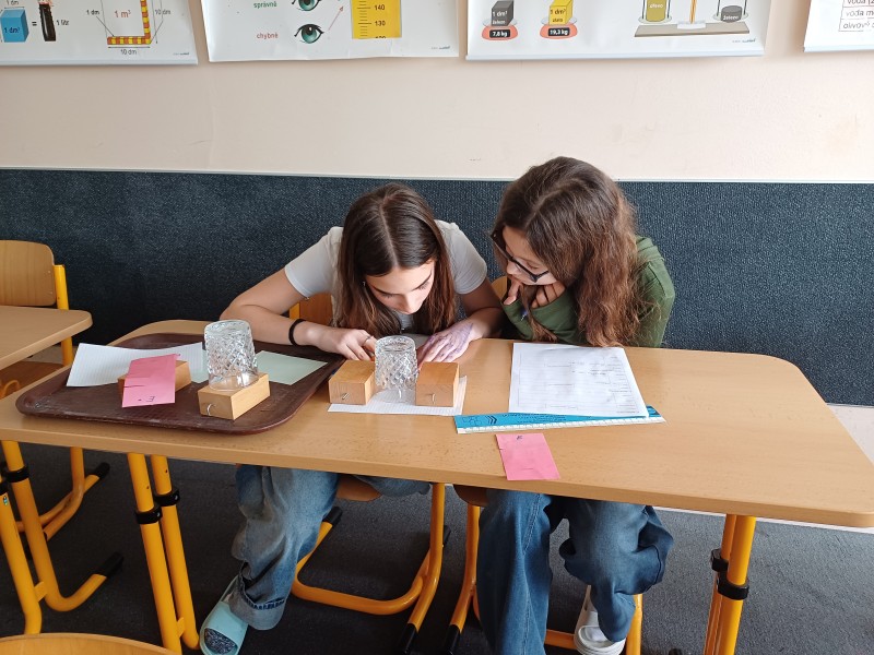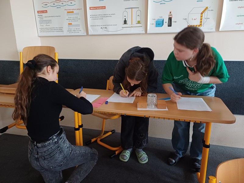 V hodinách fyziky jsme se zabývali délkou a jejím měřením. V dnešní hodině jsme měli možnost ověřit své znalosti prakticky a měřili jsme délky různých předmětů. Změřit tloušťku vodiče, průměr sklenice, délku učebny a další nás malinko potrápilo, ale do práce jsme se pustili s nadšením a nakonec jsme byli úspěšní.