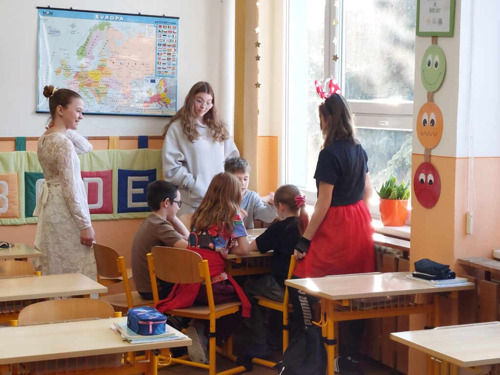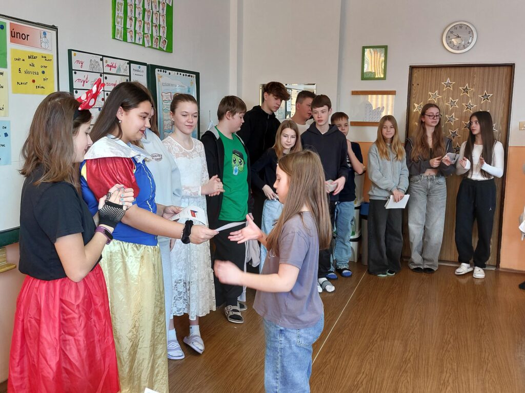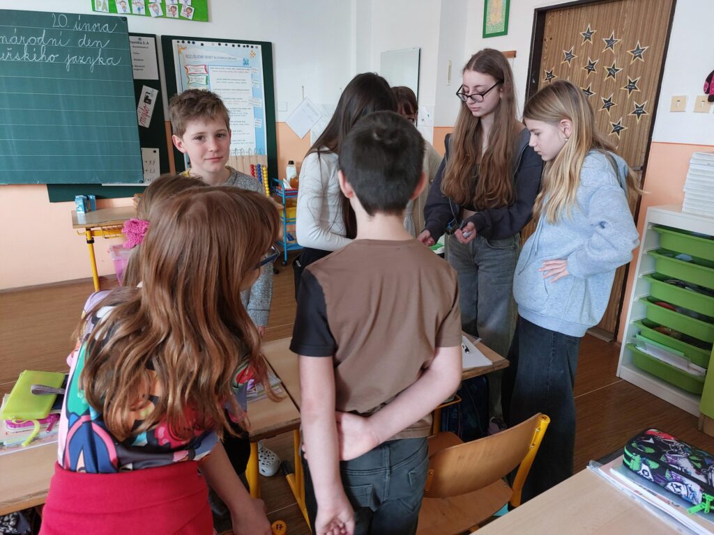 Celý týden u nás ve škole probíhá akce "Mezinárodní den mateřského jazyka". Žáci 2. stupně navštěvují žáky 1. stupně a připravují pro ně zajímavé aktivity o českém jazyce. My jsme přivítali 7. B, která si pro nás nachystala zajímavé soutěže, hádanky, pexeso. Všichni získali diplom na památku a sladkou odměnu. Děkujeme móóc.