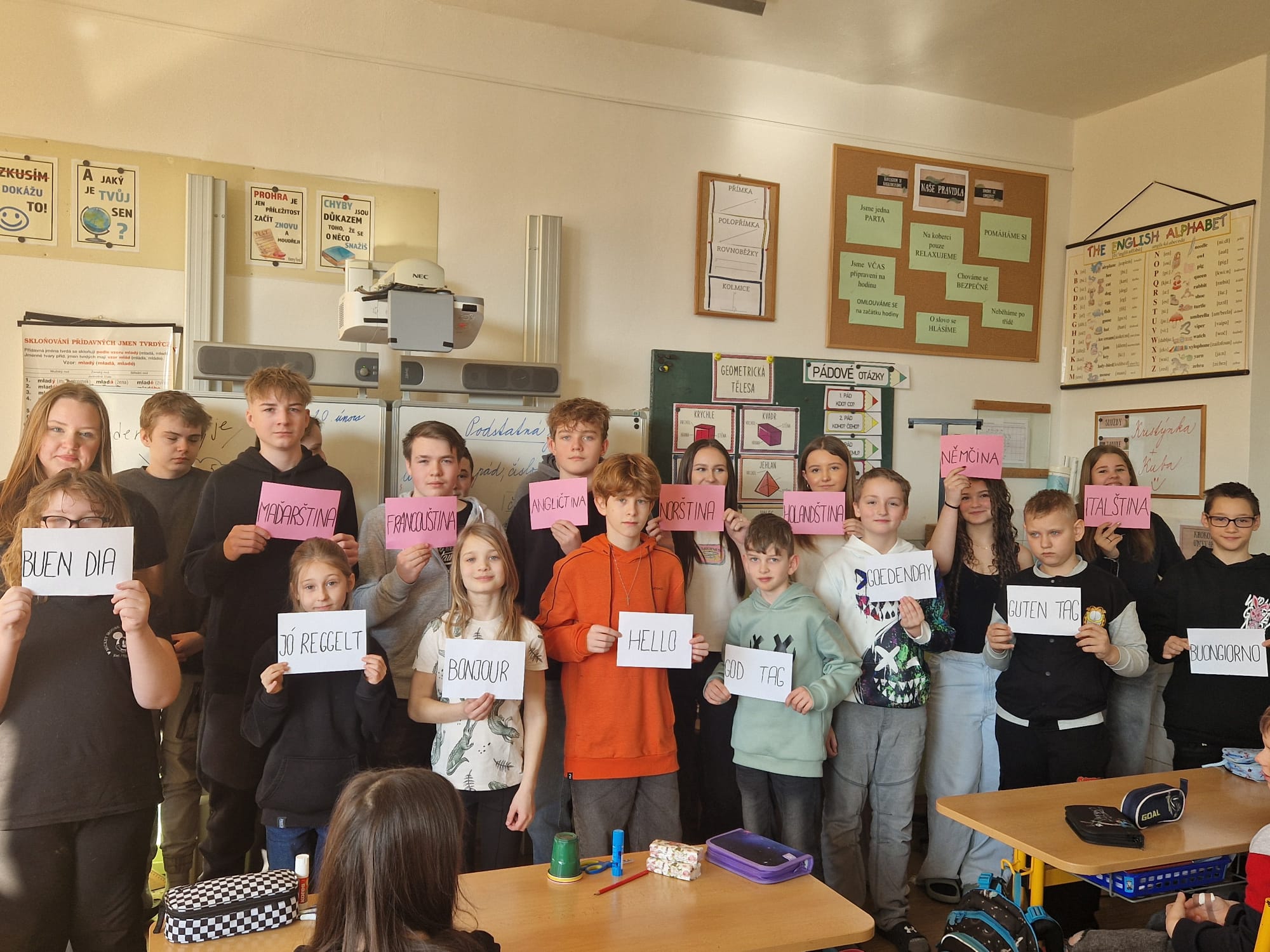 Ve čtvrtek a v pátek jsme navštívili žáky 4. A a 4. B, abychom jim přiblížili nějaké zajímavosti o češtině. V pátek totiž proběhl Mezinárodní den mateřského jazyka. Pro děti jsme připravili ukázku slovanských a neslovanských jazyků, aby na vlastní oči viděly, že pozdrav "dobrý den" si mezi neslovanskými jazyky vůbec není podobný, kdežto mezi slovanskými je podoba značná. Poté jsme jim předali pár zajímavostí o češtině, děti si nalepily listy s nejoblíbenějšími českými slovy na svůj strom češtiny a pak jsme ve skupinkách řešili různé češtinářské úkoly. Byla to příjemná zkušenost.