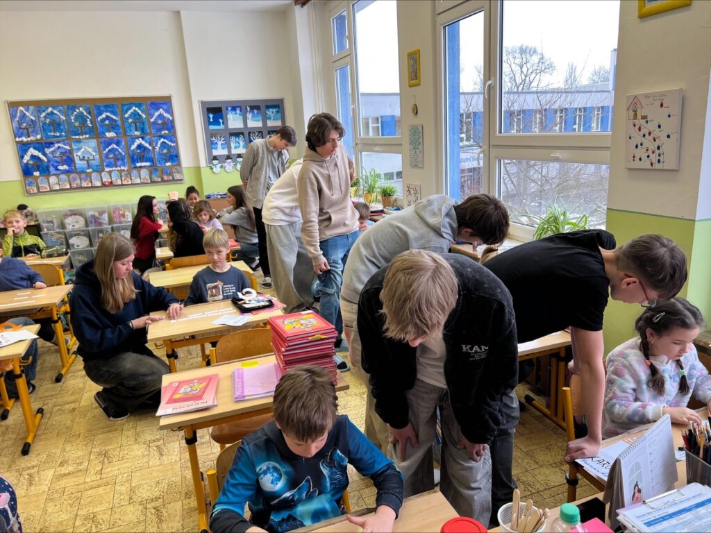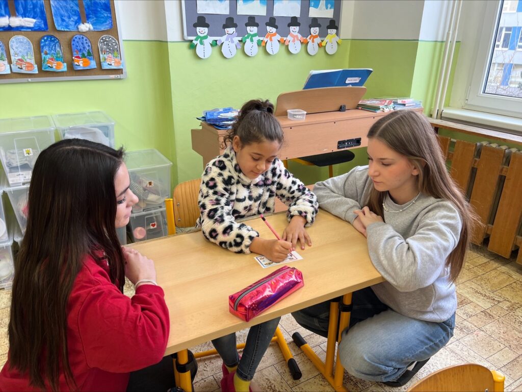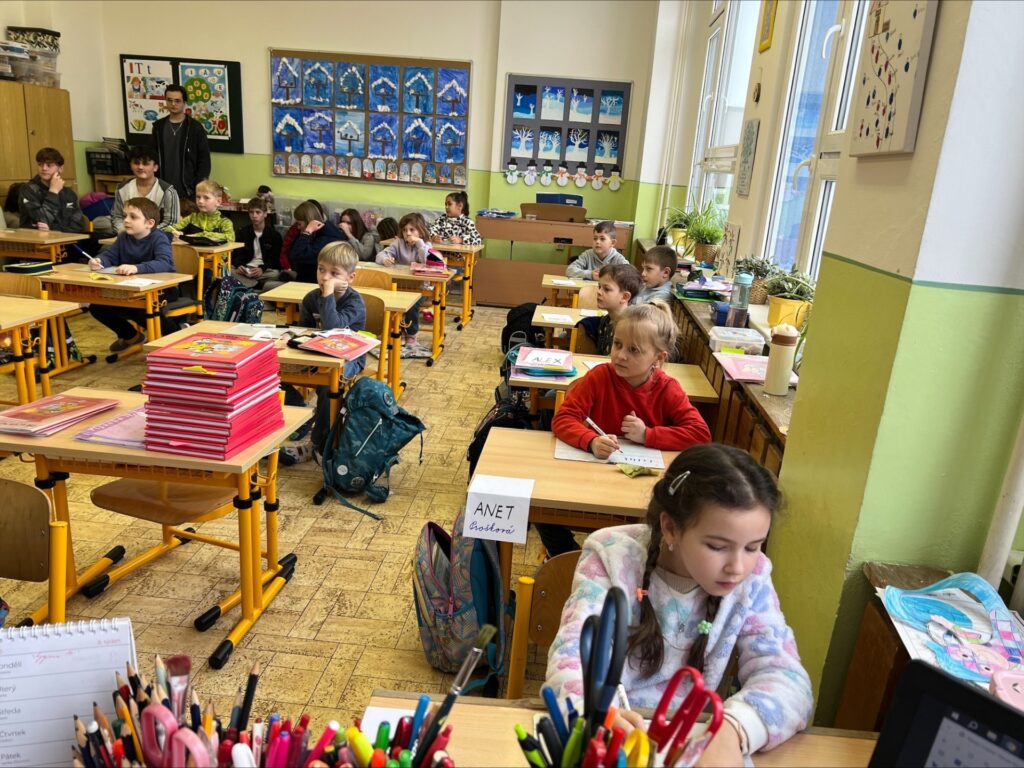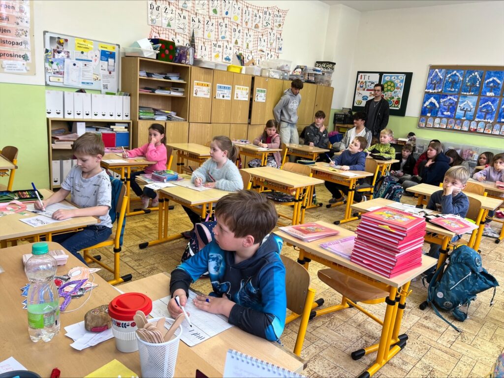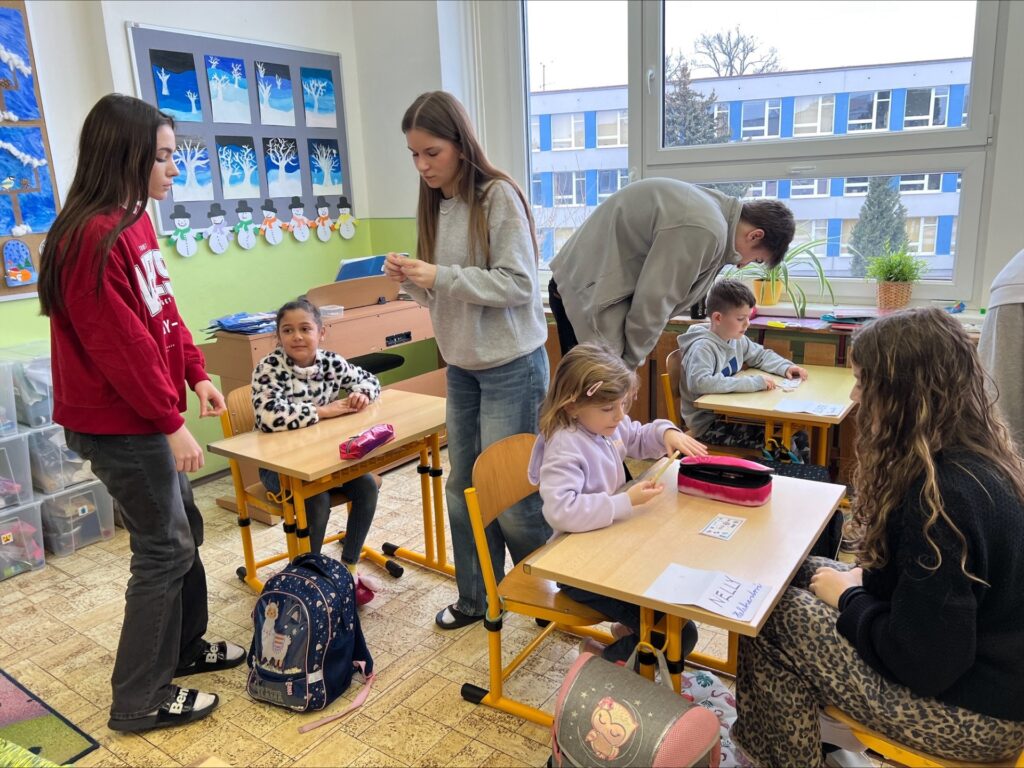 V pátek nás při příležitosti Světového dne mateřštiny navštívili žáci z 9. D. Přečetli nám kousek pohádky o zvířátkách nejprve anglicky, pak německy, a nakonec jsme je uprosili, že ji chceme česky, protože pak jsme jí teprve porozuměli. Počítali jsme zvířátka, malovali je a procvičovali slabiky při hře domino. Bylo to prima setkání.