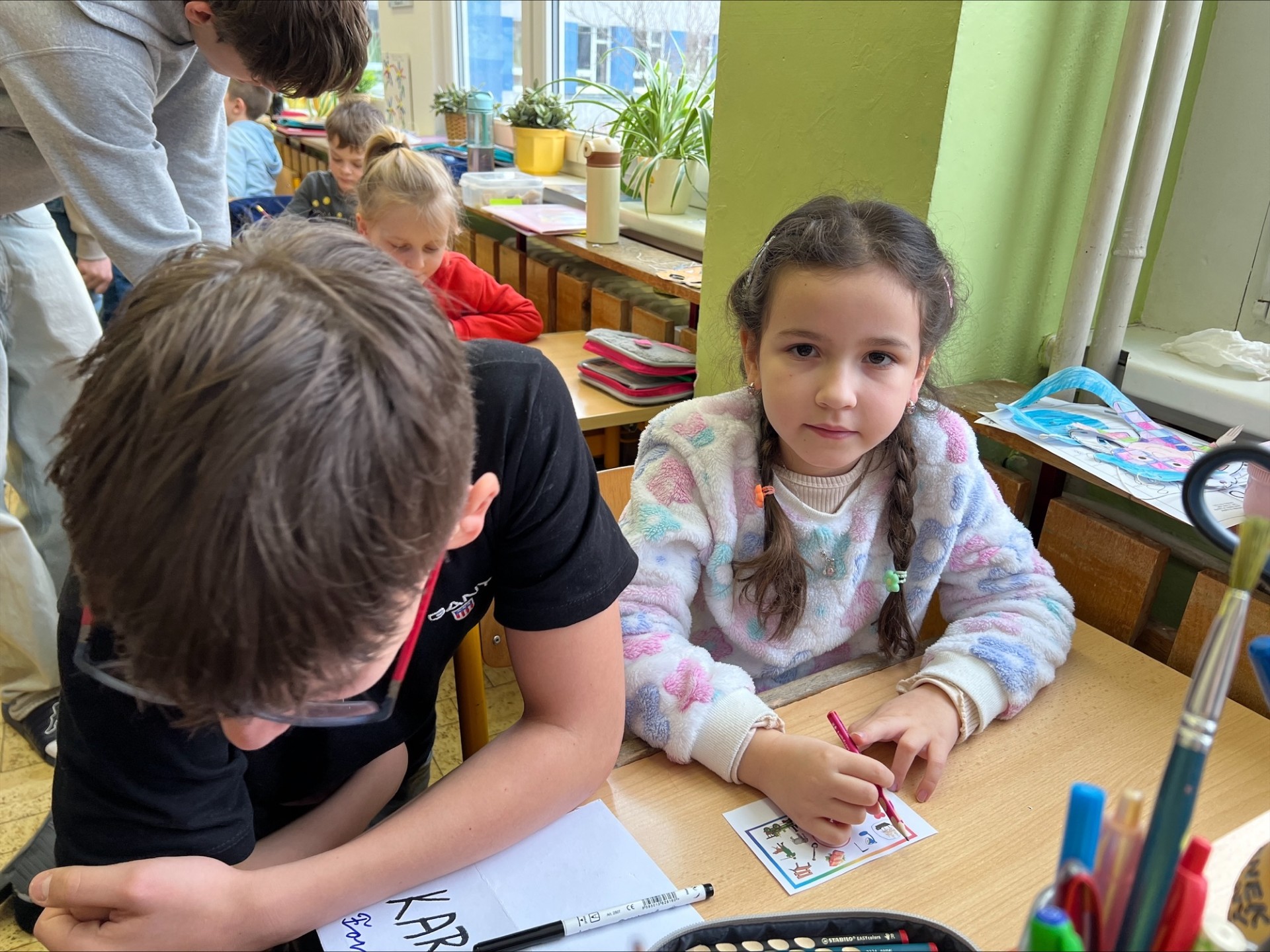 V pátek nás při příležitosti Světového dne mateřštiny navštívili žáci z 9. D. Přečetli nám kousek pohádky o zvířátkách nejprve anglicky, pak německy, a nakonec jsme je uprosili, že ji chceme česky, protože pak jsme jí teprve porozuměli. Počítali jsme zvířátka, malovali je a procvičovali slabiky při hře domino. Bylo to prima setkání.