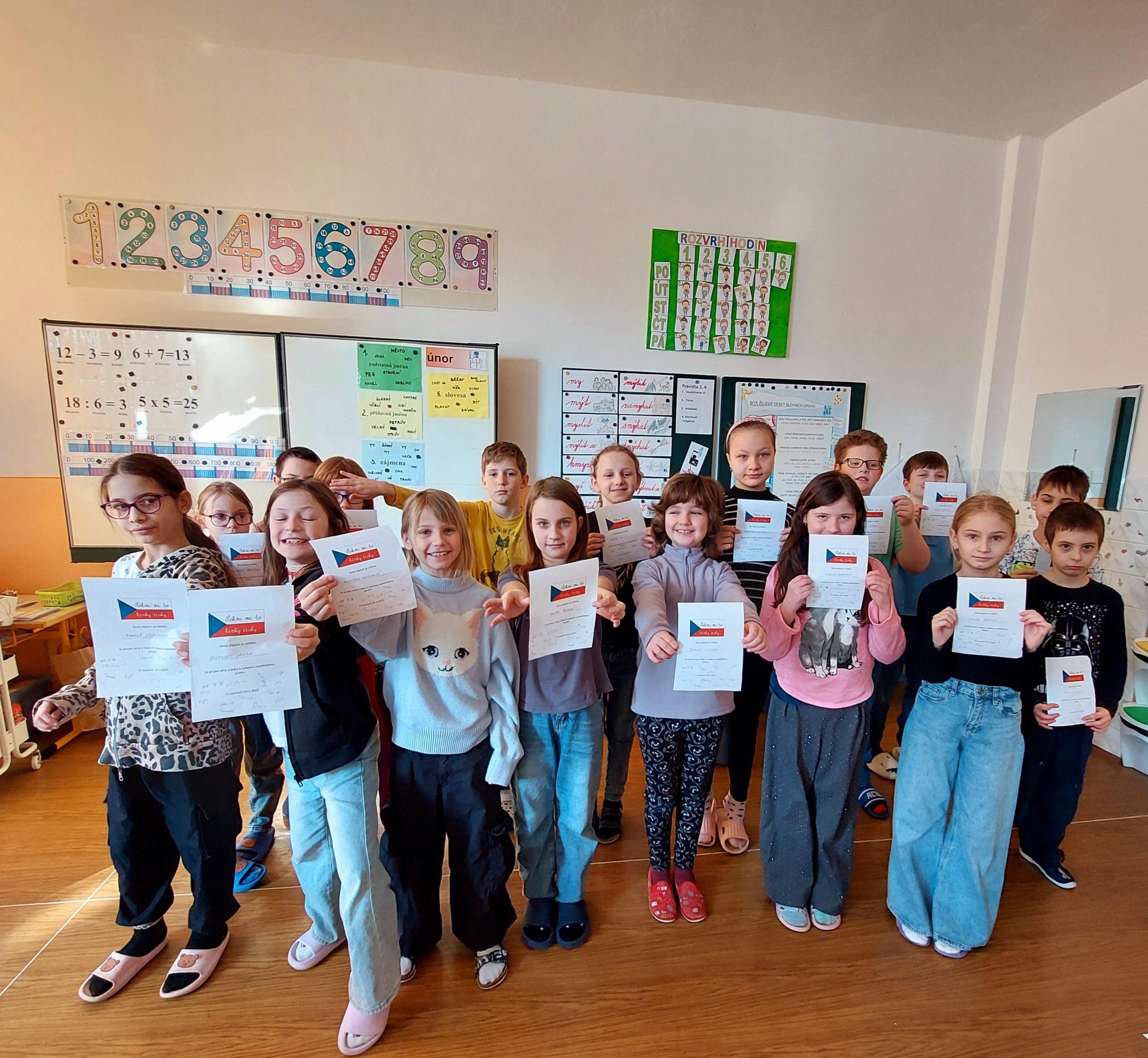 Celý týden u nás ve škole probíhá akce "Mezinárodní den mateřského jazyka". Žáci 2. stupně navštěvují žáky 1. stupně a připravují pro ně zajímavé aktivity o českém jazyce. My jsme přivítali 7. B, která si pro nás nachystala zajímavé soutěže, hádanky, pexeso. Všichni získali diplom na památku a sladkou odměnu. Děkujeme móóc.