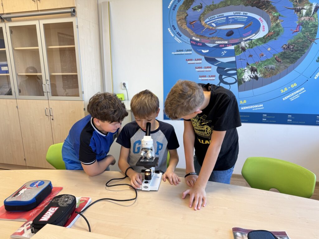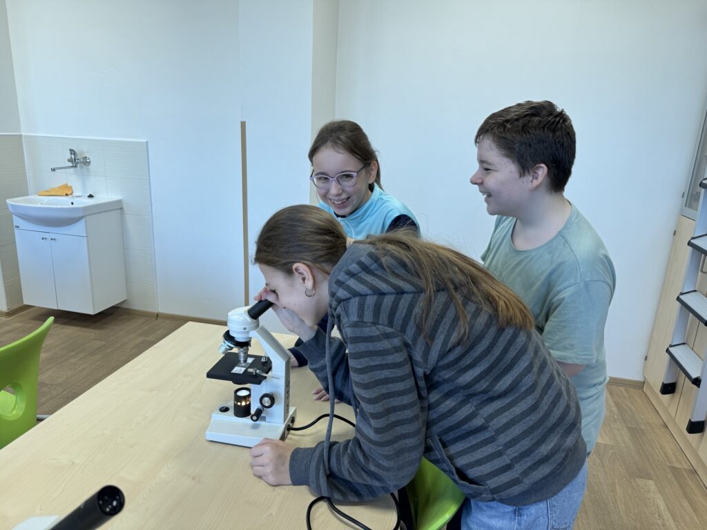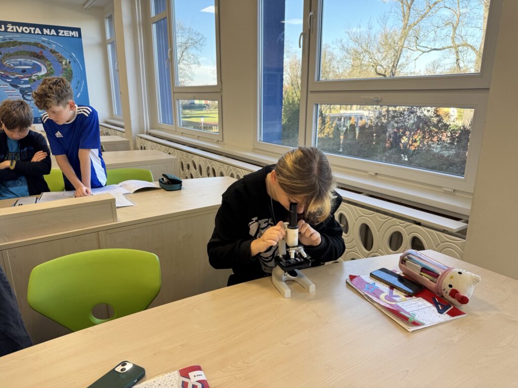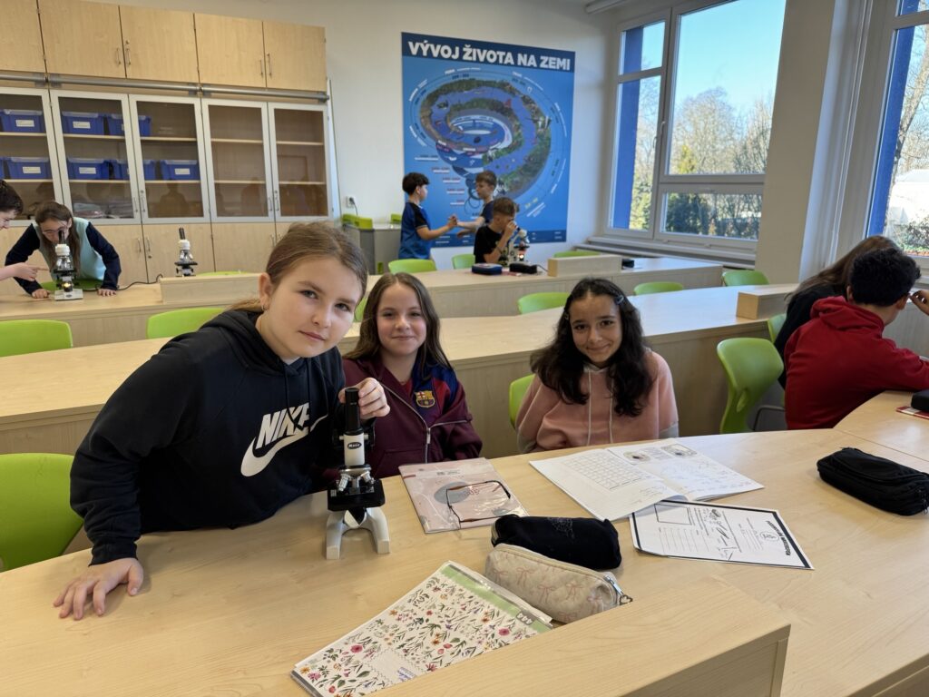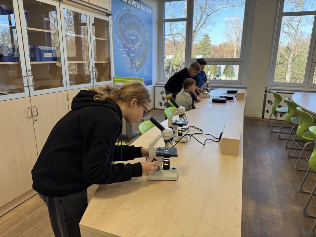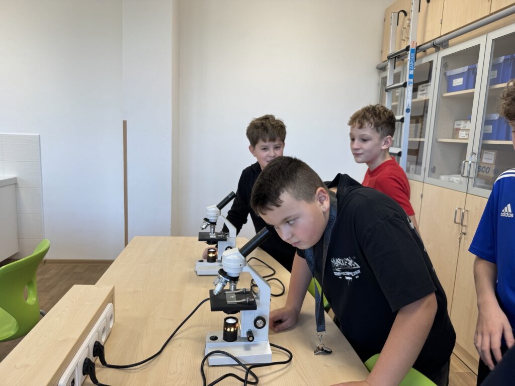 V hodině přírodopisu jsme se věnovali mikroskopování. Nejprve jsme si připomněli, jak správně pracovat s mikroskopem, a poté jsme si vytvořili preparát z cibule. Ten jsme následně pozorovali pod mikroskopem a zkoumali jsme stavbu rostlinných buněk, zejména buněčnou stěnu a jádro.