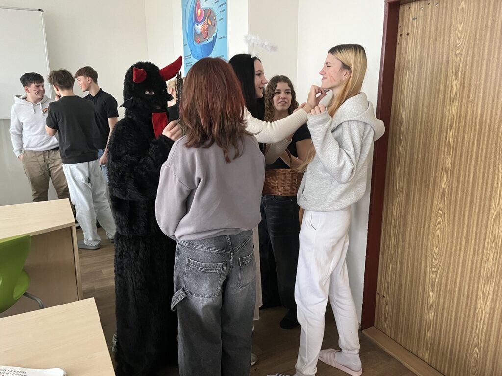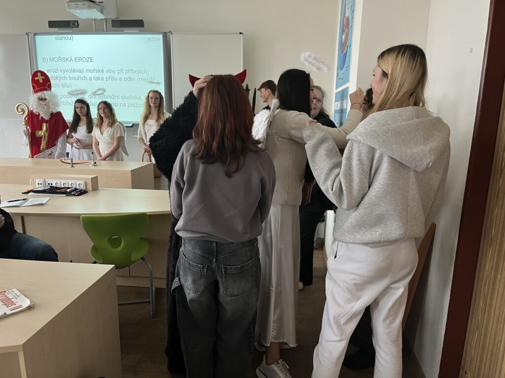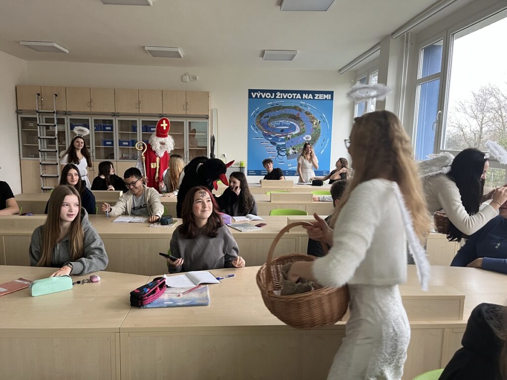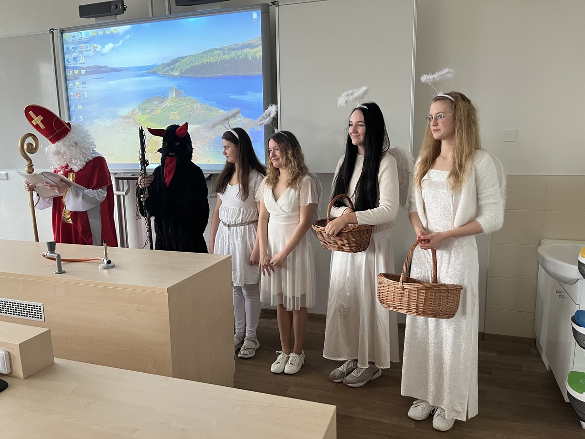 I když už nejsme malé děti, přesto nás Mikuláš s čertem a andělkami navštívili. Kdo byl hodný, dostal pochvalu. Zlobidla slíbila, že se polepší. Tak snad slib dodrží:)