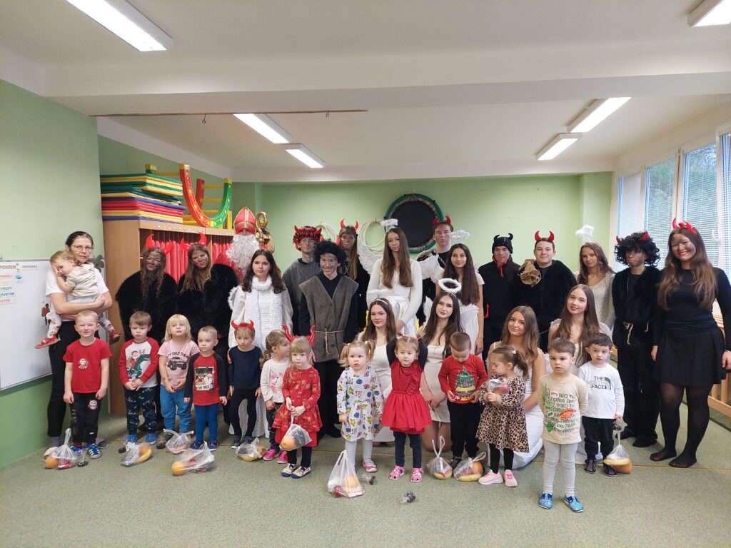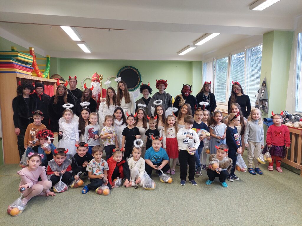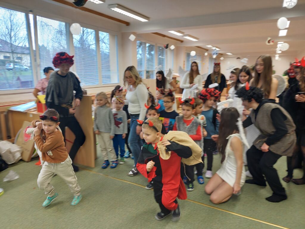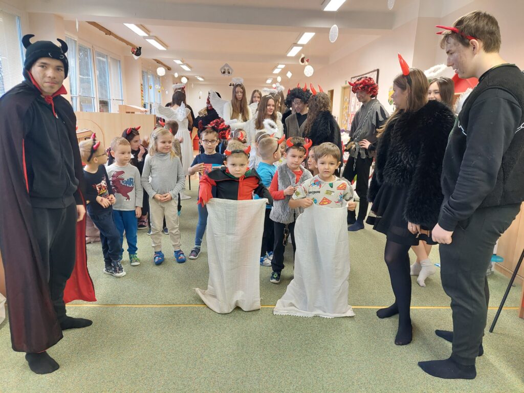 Adventní čas přináší kouzlo tradic a právě to zažily děti v Mateřské škole Přemyslovců, kam v pátek 5. prosince zavítali žáci 9. C. V převlecích Mikuláše, andělů a čertů vnesli do školky radost, smích a trochu napínavého očekávání. Malé děti se nejprve zvědavě rozhlížely, ale brzy se jejich tváře rozzářily úsměvem. Deváťáci si pro ně připravili sportovní soutěže, které děti nadšeně plnily. Nechyběly ani veselé písničky, povídání a drobné odměny za odvahu. Atmosféra byla plná pohody, přátelství a vánočního kouzla.