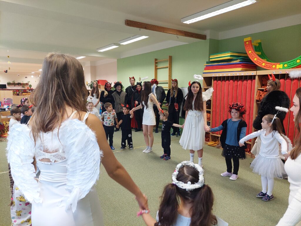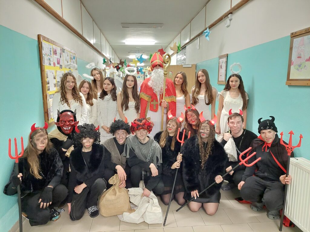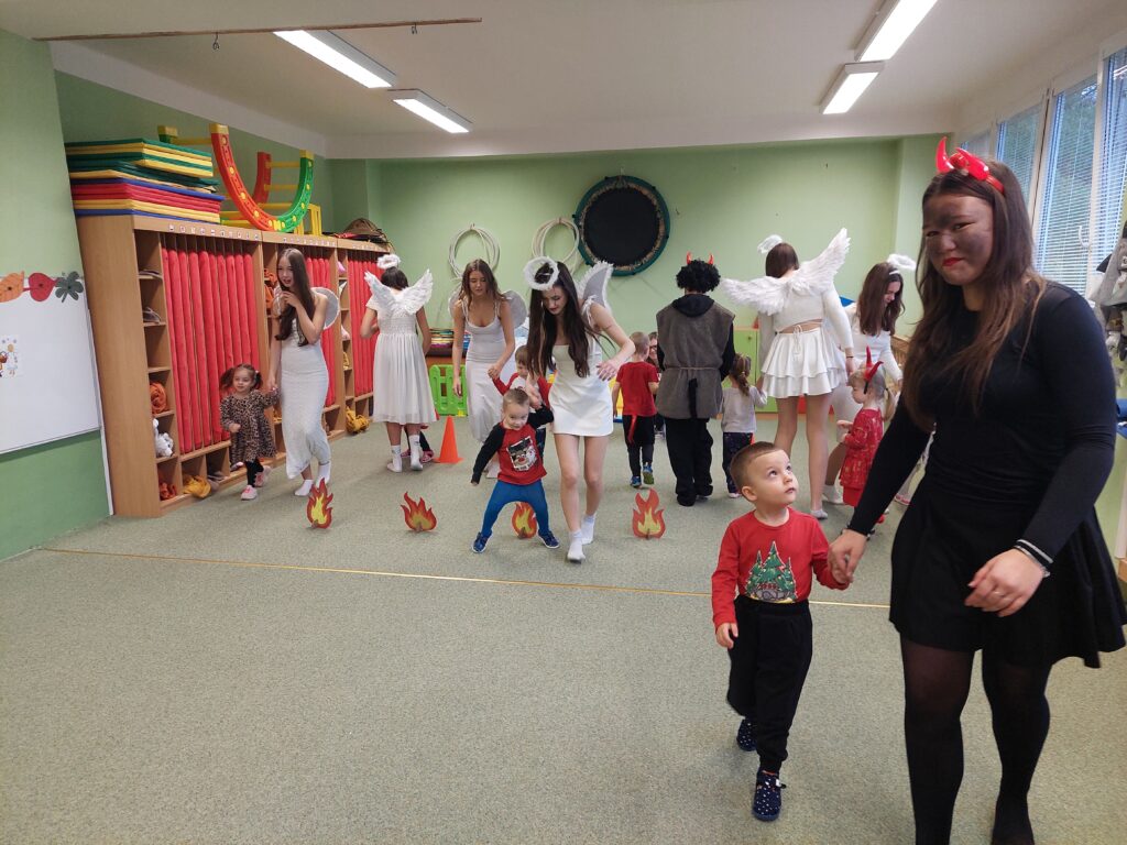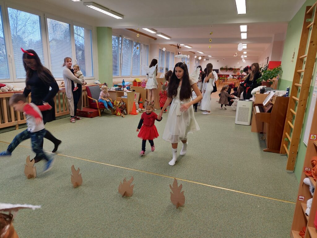 Adventní čas přináší kouzlo tradic a právě to zažily děti v Mateřské škole Přemyslovců, kam v pátek 5. prosince zavítali žáci 9. C. V převlecích Mikuláše, andělů a čertů vnesli do školky radost, smích a trochu napínavého očekávání. Malé děti se nejprve zvědavě rozhlížely, ale brzy se jejich tváře rozzářily úsměvem. Deváťáci si pro ně připravili sportovní soutěže, které děti nadšeně plnily. Nechyběly ani veselé písničky, povídání a drobné odměny za odvahu. Atmosféra byla plná pohody, přátelství a vánočního kouzla.
