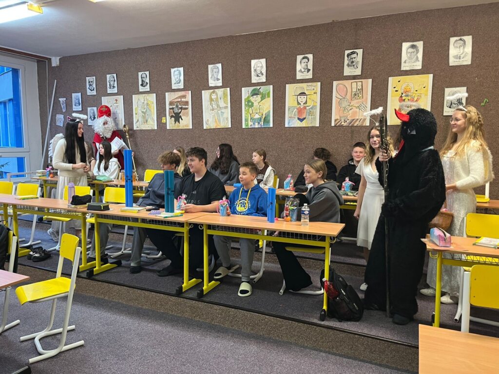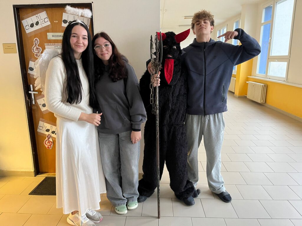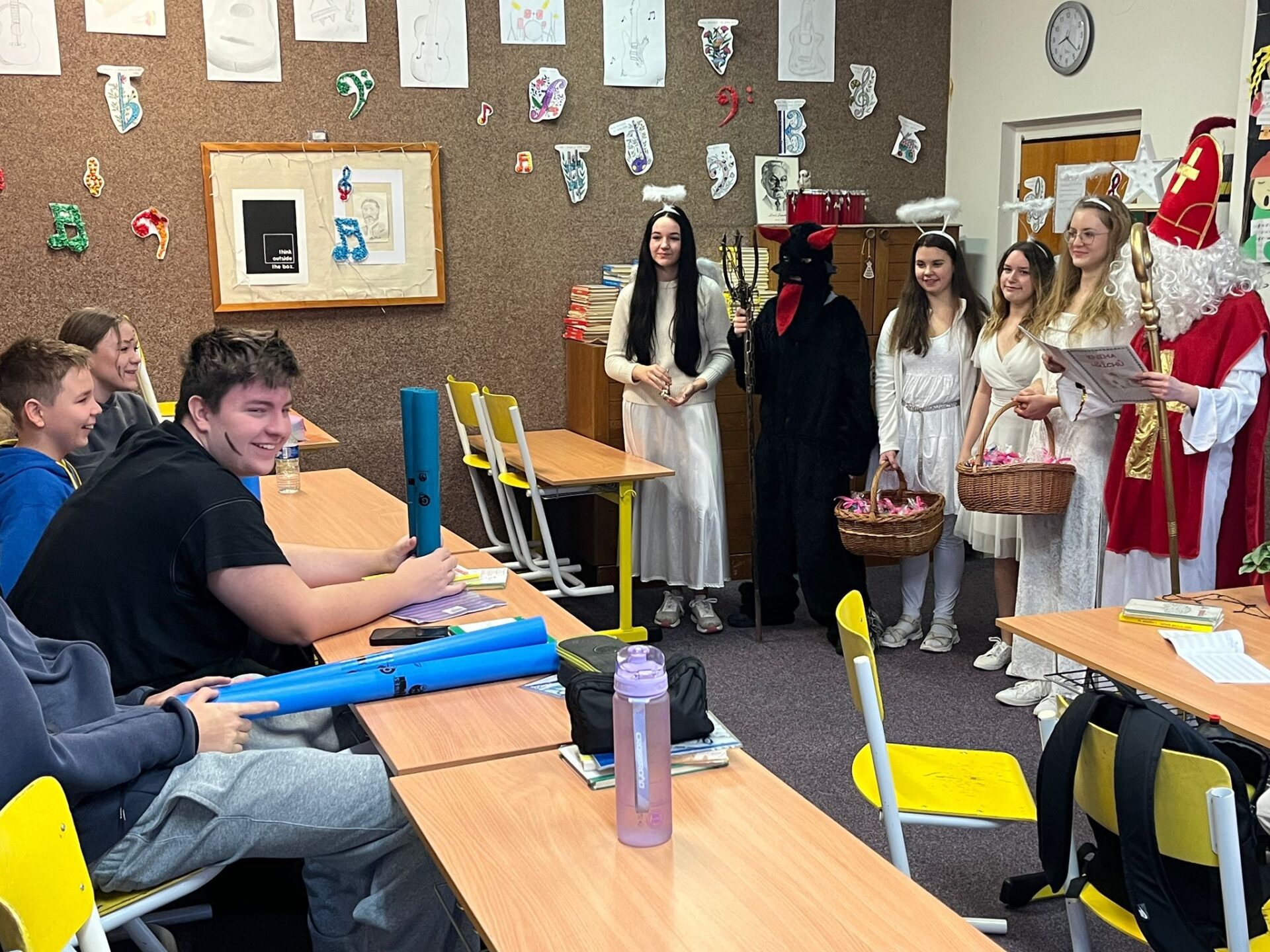 Dnes k dětem při vyučování dorazil Mikuláš s čertem a anděly. Vyčinili hříšníkům. Všem rozdali nějaké dobroty.