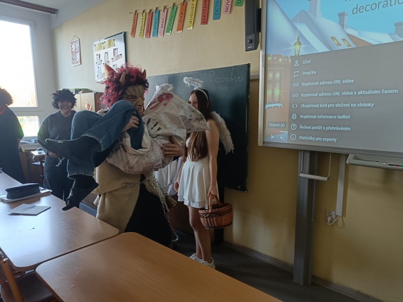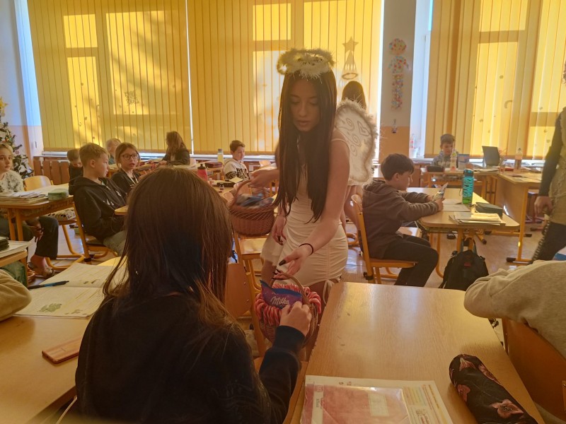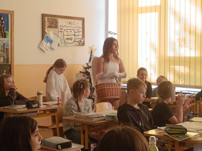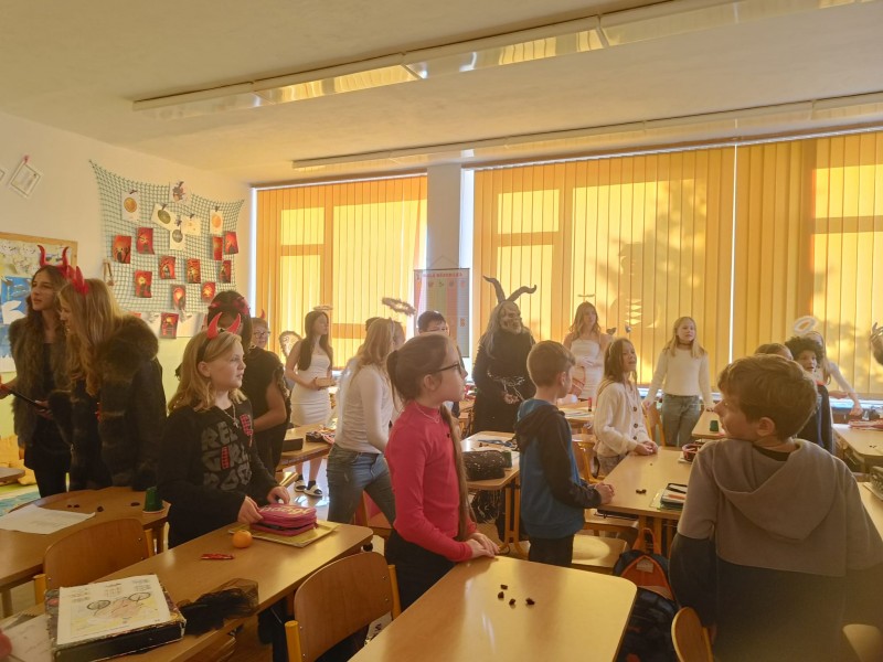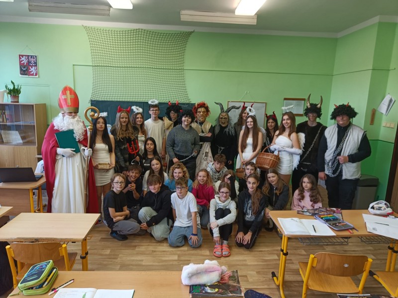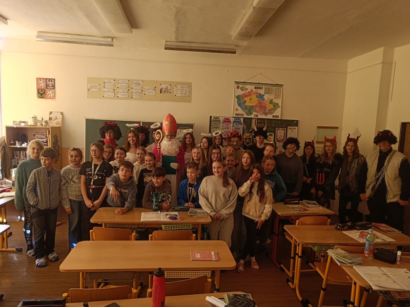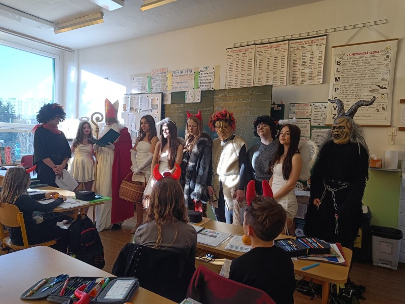 Dnes jsme se proměnili v čerty, Mikuláše a anděly a navštívili žáky 4., 5. a 6. tříd. Přinesli jsme jim spoustu radosti, ale i trochu napětí, když Mikuláš ze své knihy četl, kdo byl během roku hodný a kdo zlobil, přičemž se zlobily si poradili čerti. Andělé však všechny spravedlivě odměnili za jejich snahu a dobré skutky.