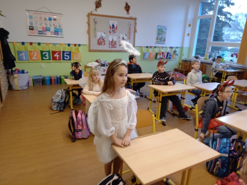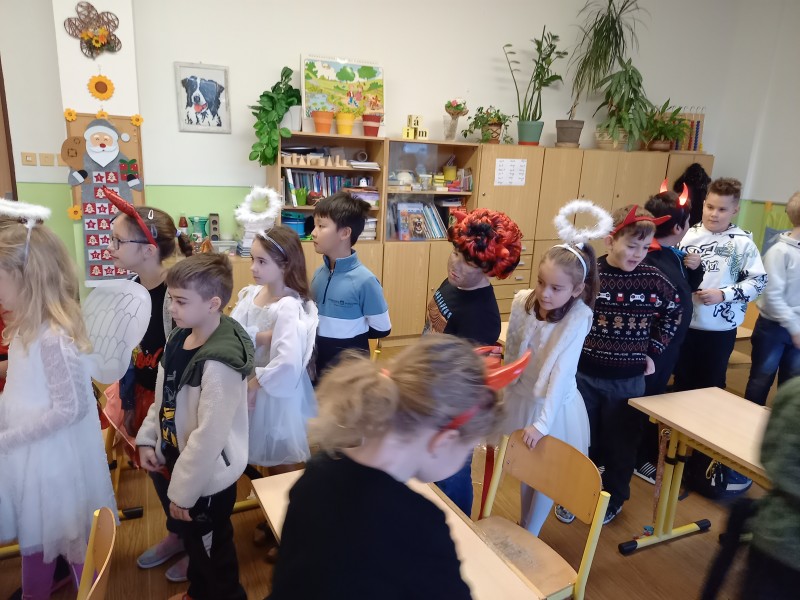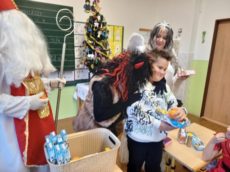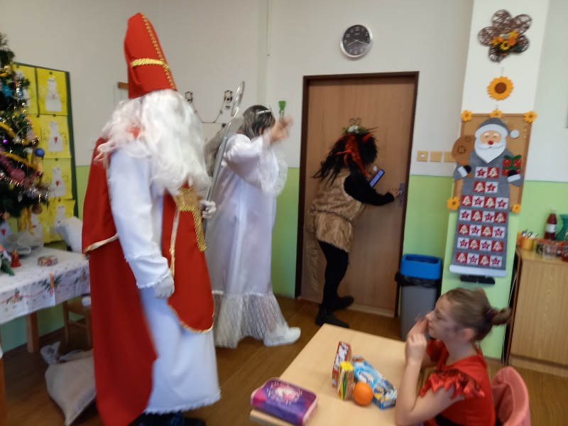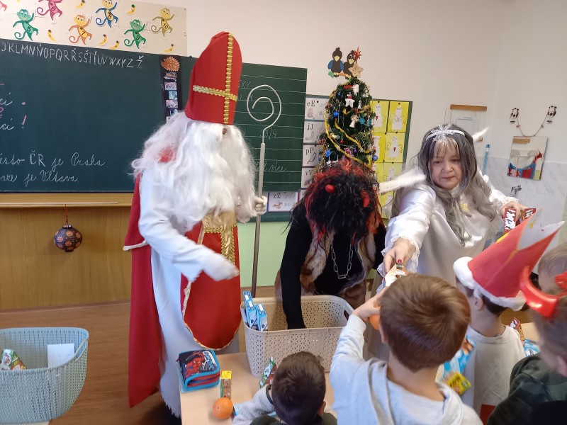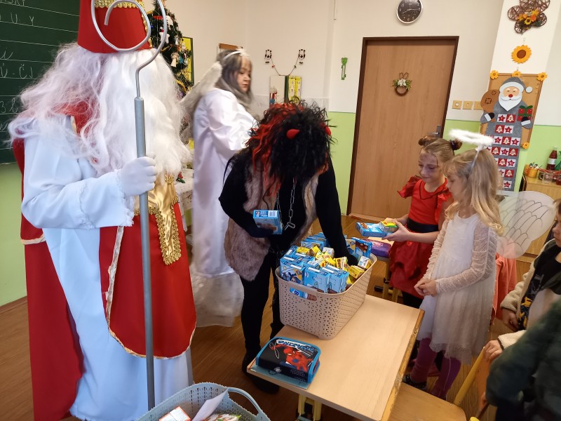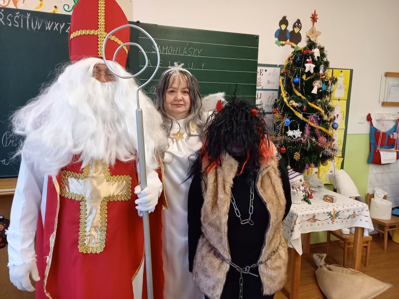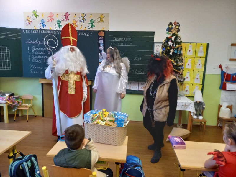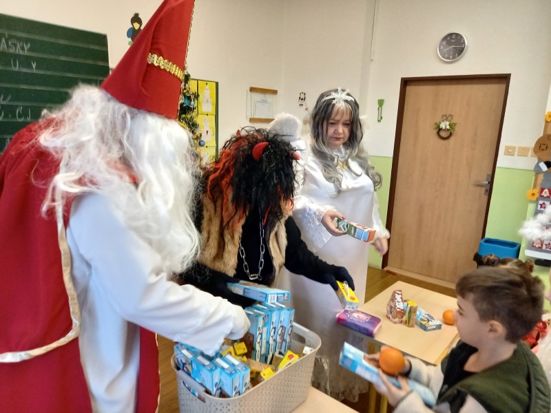Navštívil nás Mikuláš s čertem a andělem. Děti měly velikou radost a na dobrotách si hned pochutnaly.