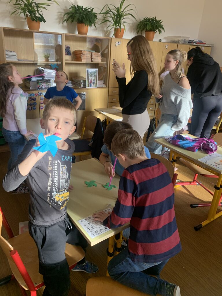 Vyrobili jsme větrníky, vyzdobili si třídu, děti si zkoušely hrátky se svým dechem.