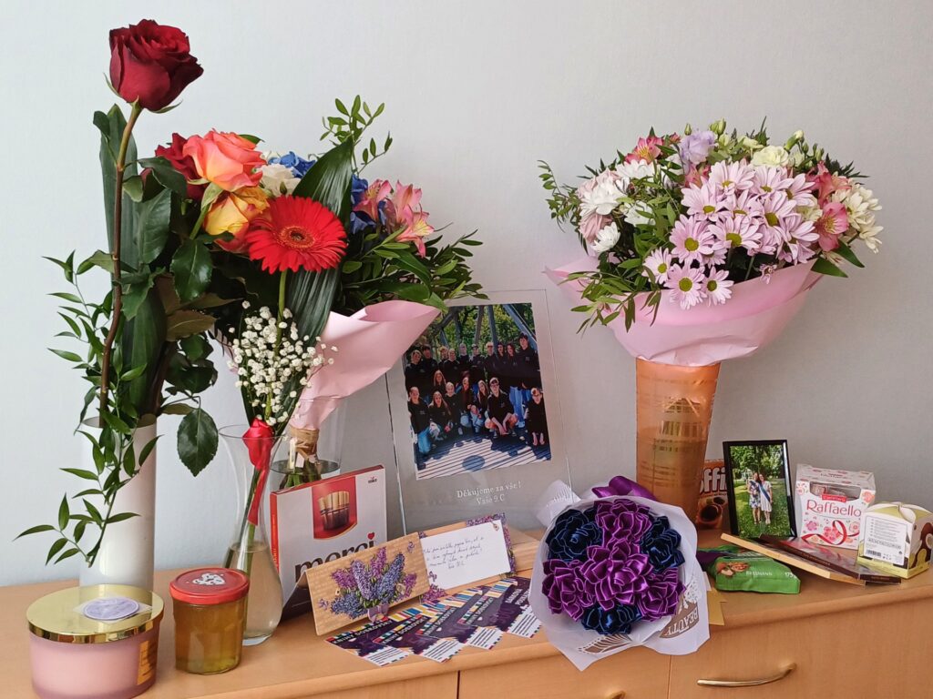 Ještě jednou moc děkuji za všechna krásná překvapení, která jste mi na závěr připravili. Za ty nádherné dárečky, za kytici, která je snad ještě větší než obrovská, za krásnou fotku, která mi vás bude každý den připomínat. Děkuji i za zásobu čtení a především za vaše úžasné osobní dárečky a dopisy, které mě opravdu dojaly.