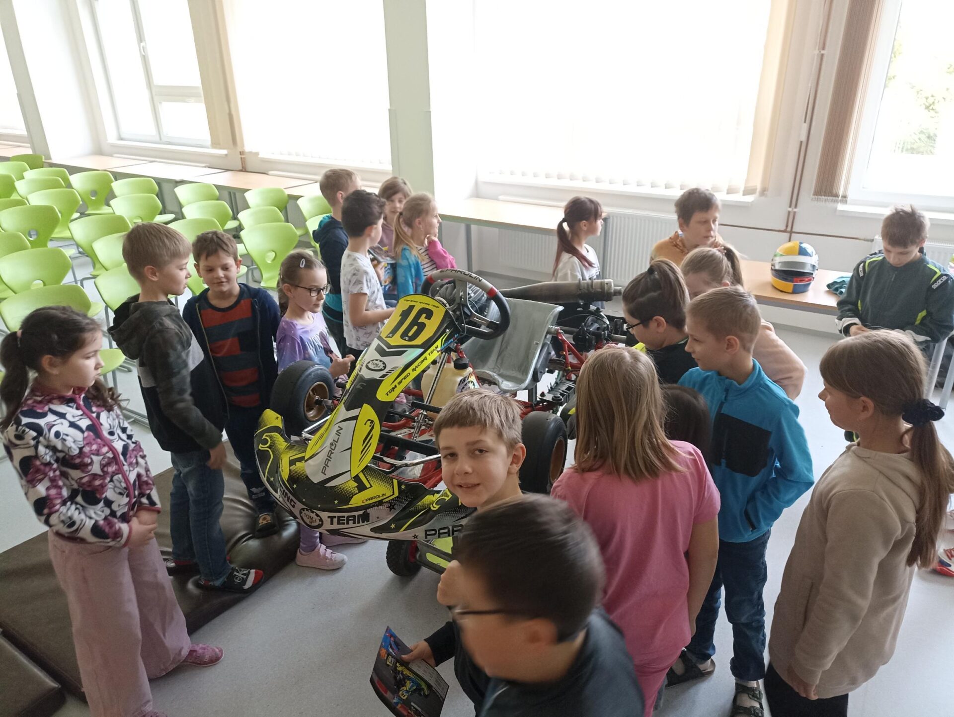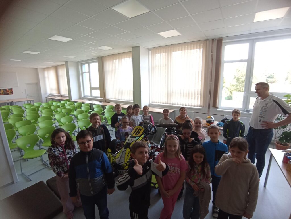 Zajímavosti o motokárách jsme se dozvěděli na besedě v nové aule školy.