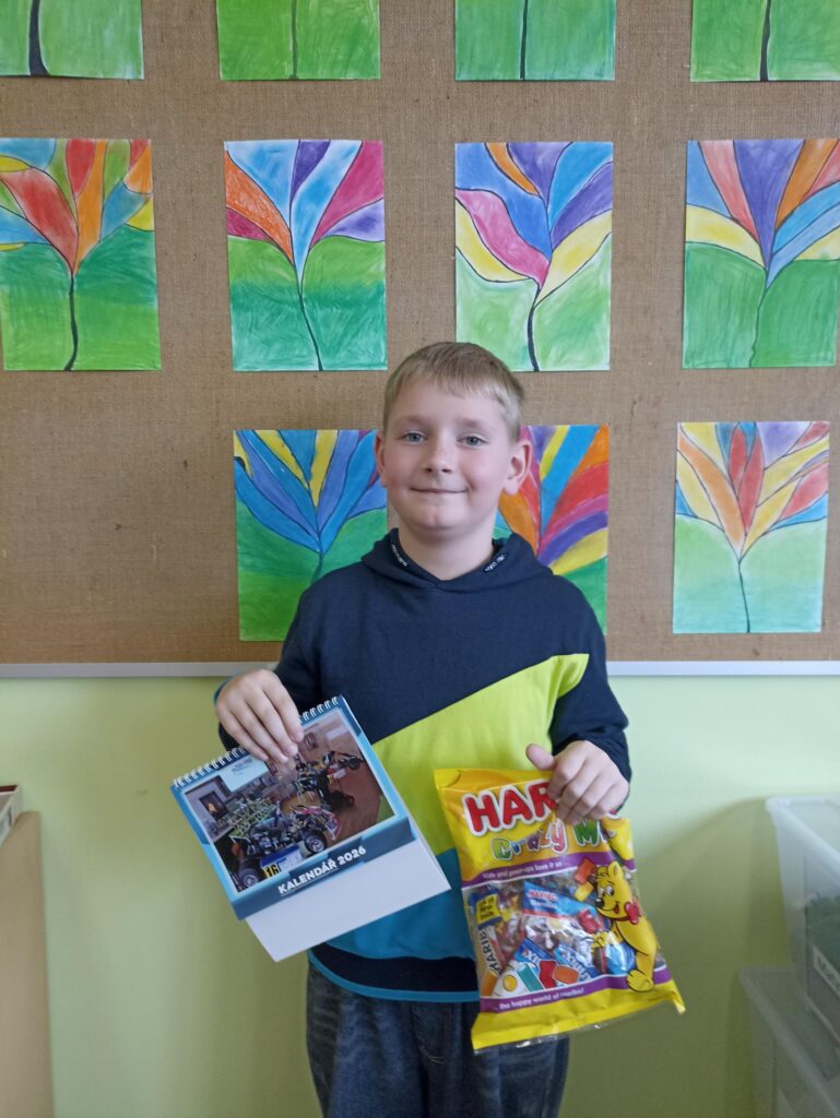 Náš spolužák Kuba vyhrál odměnu za vědomostní otázku.