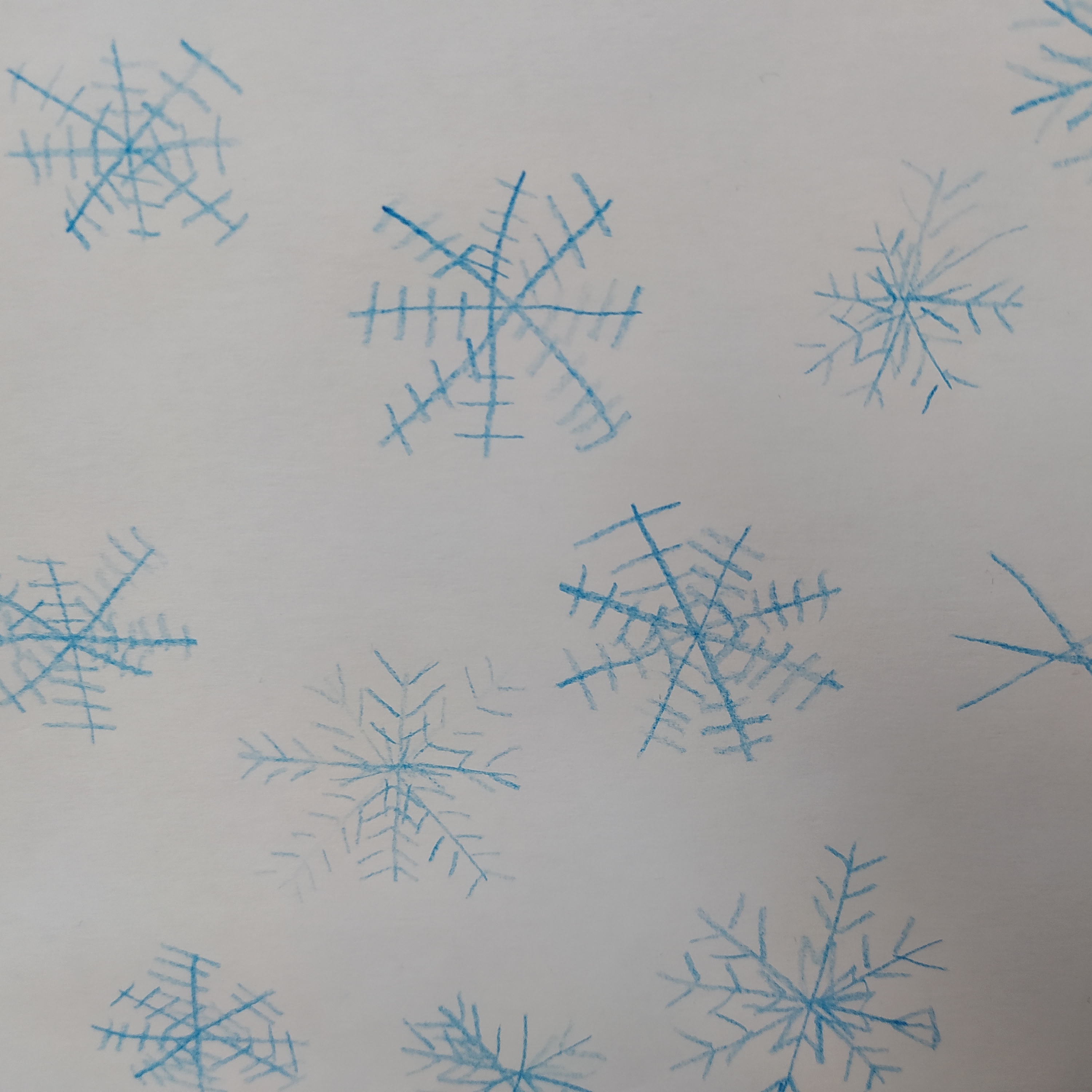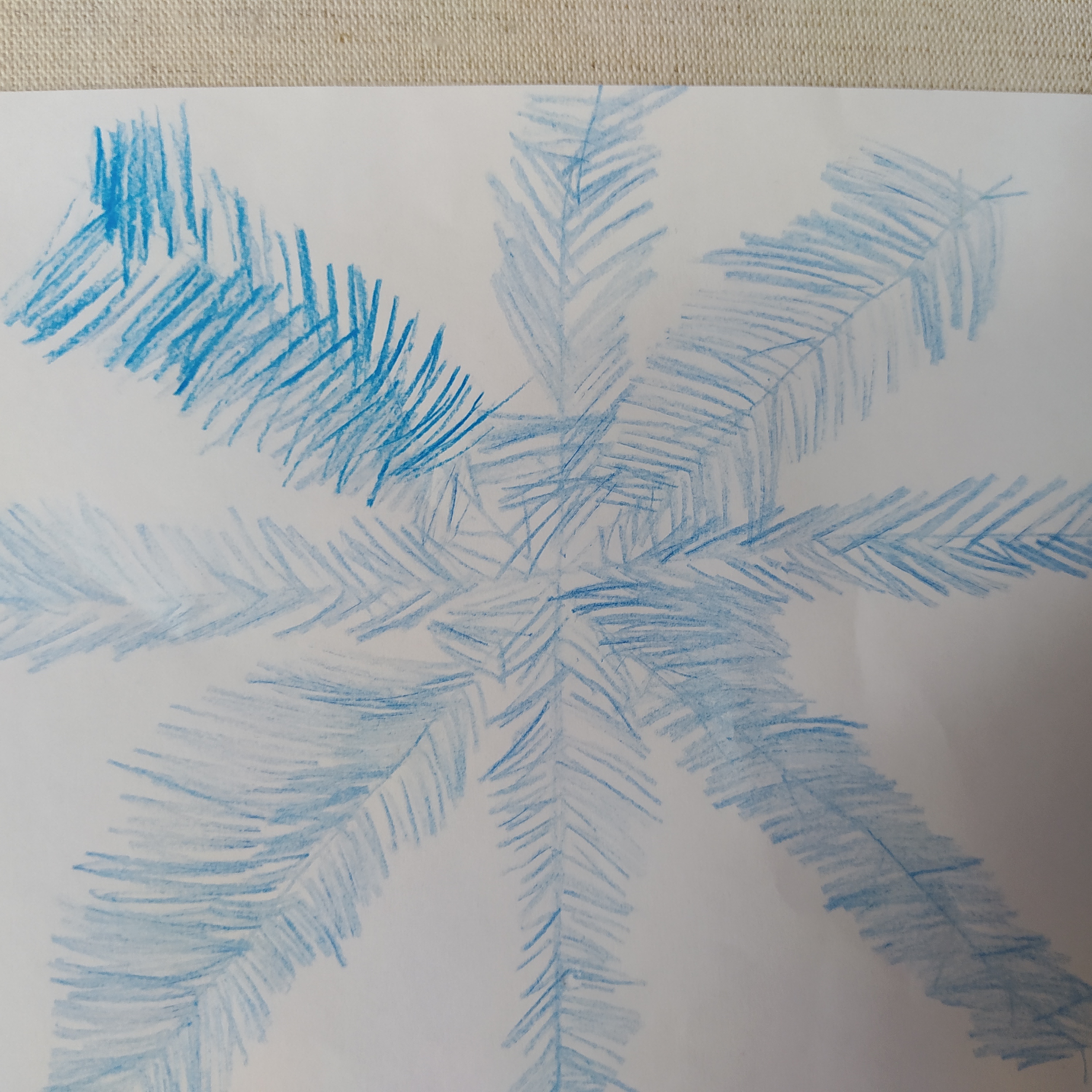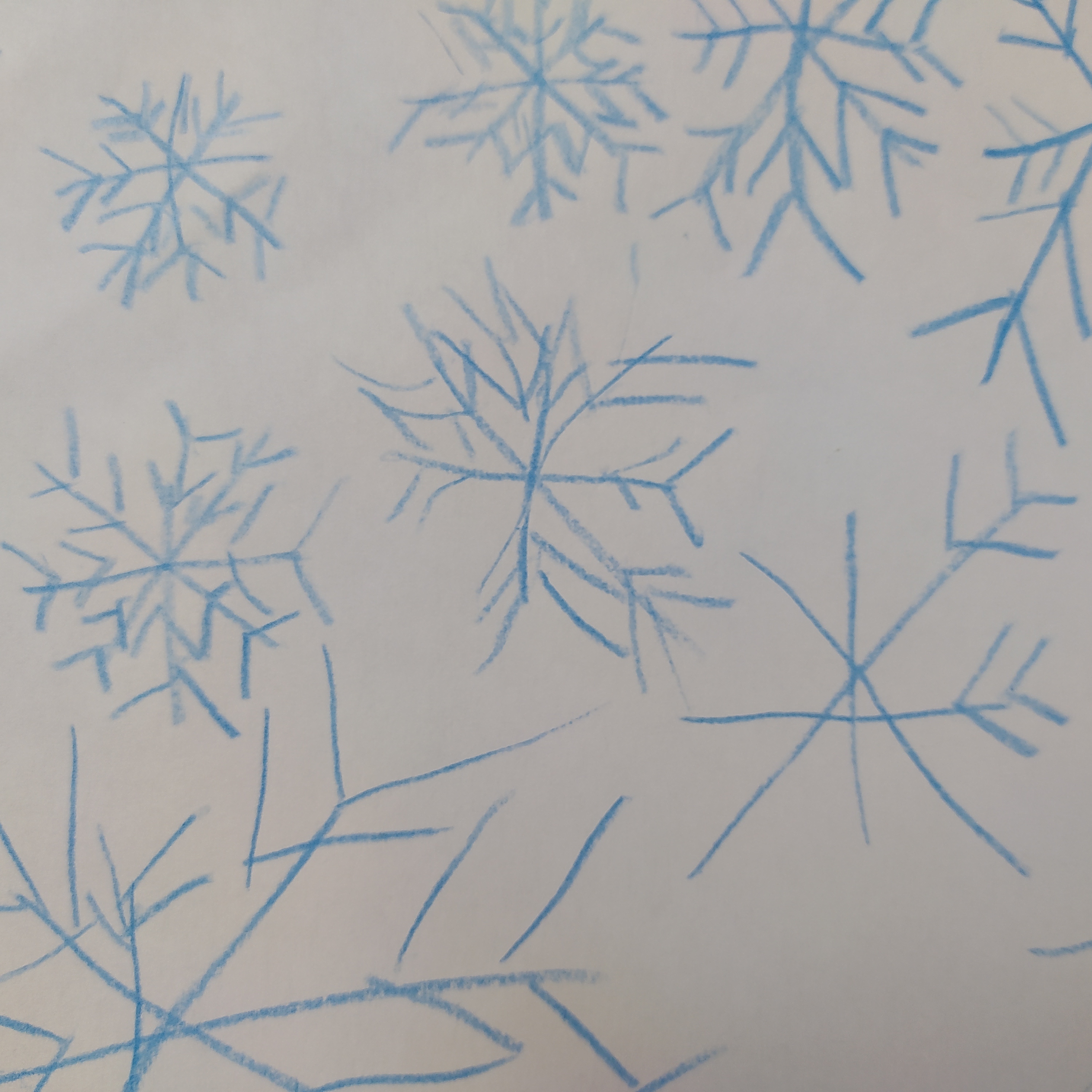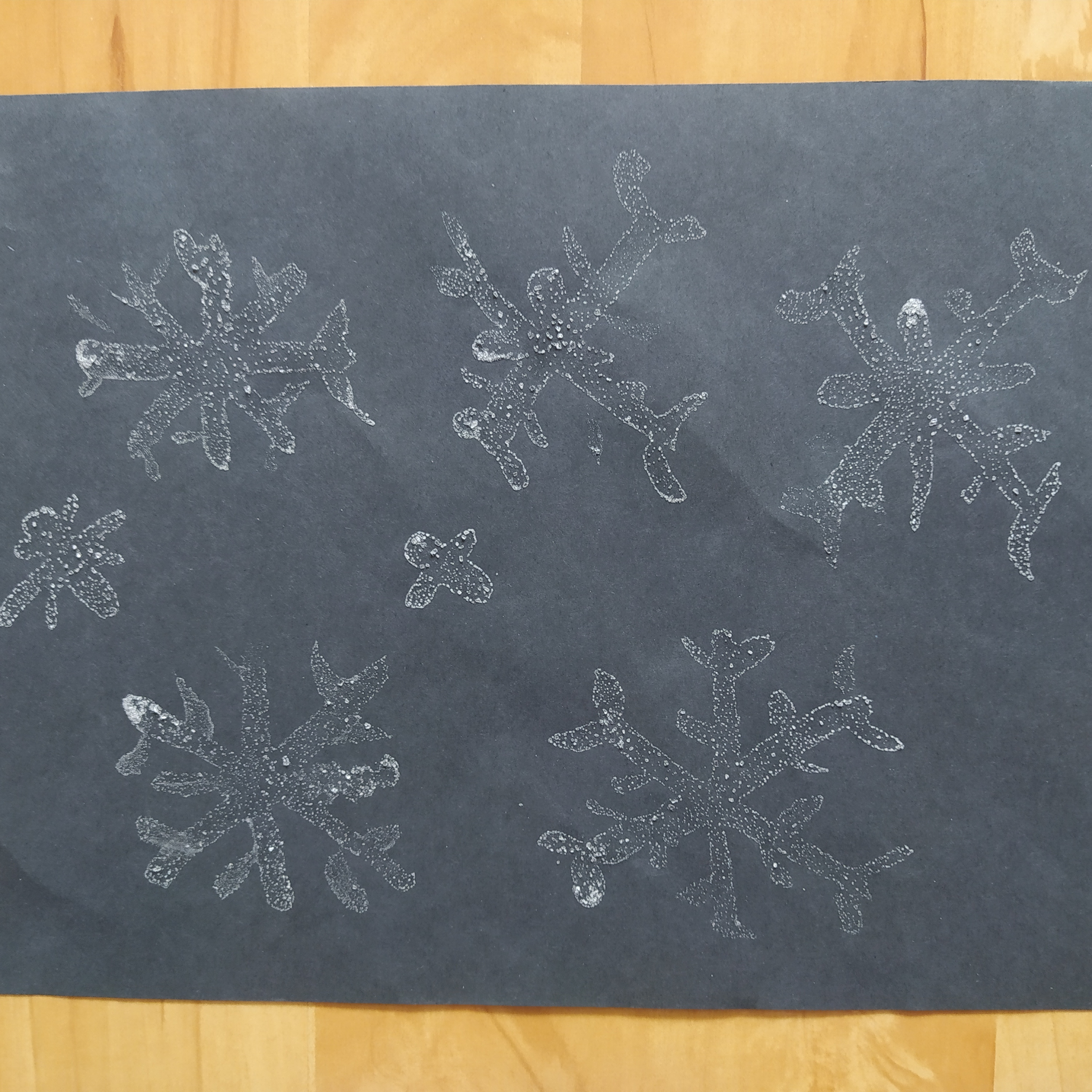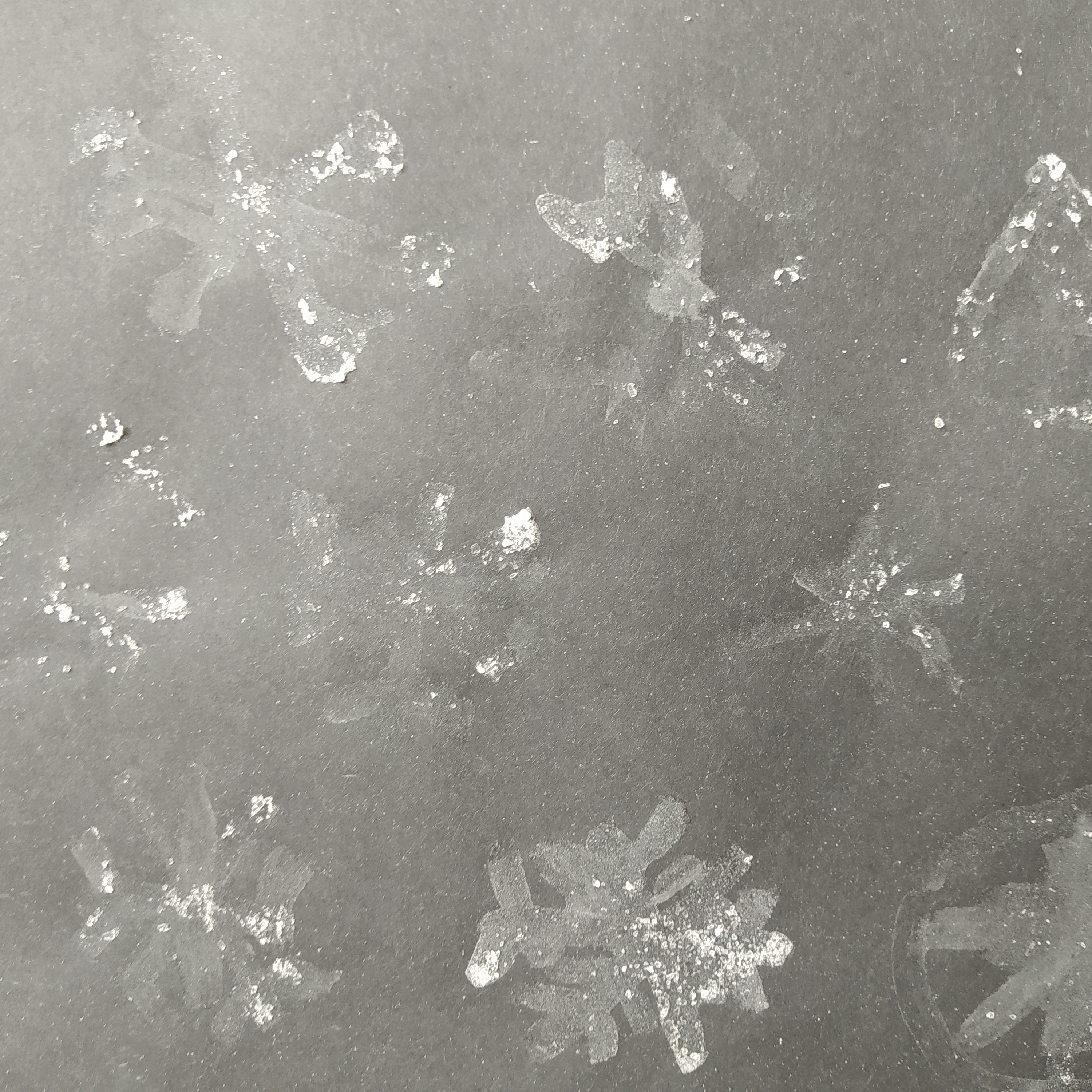 Solí a vodou jsme si namalovali sněhové vločky. Někteří z nás si nejdříve udělali návrh, jak by vločka měla vypadat.