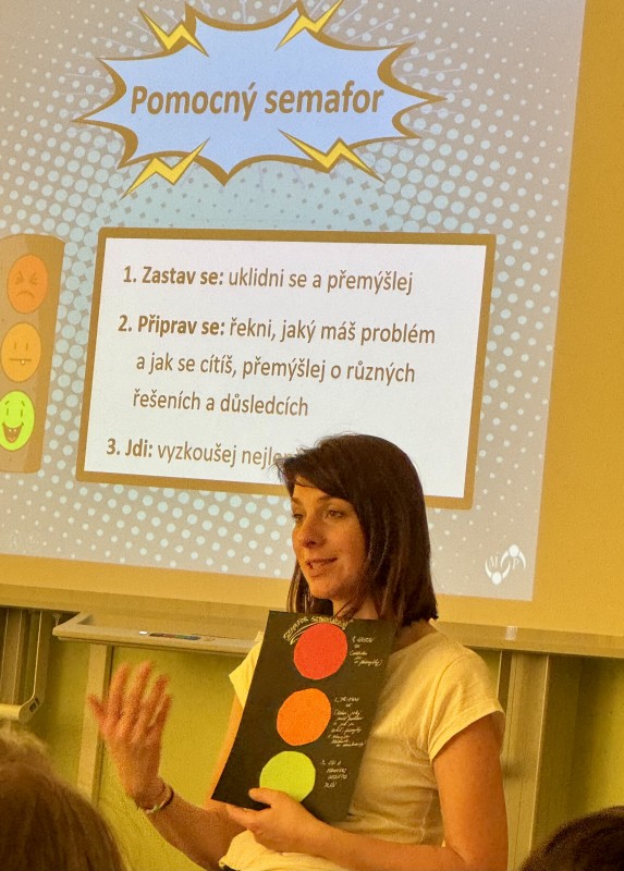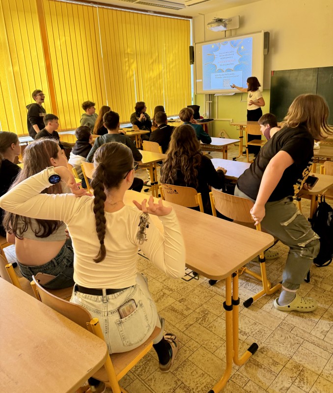 Paní lektorka nám vysvětlila, jak stres vypadá a jak ovlivňuje naše psychické i fyzické zdraví. Je dobré poznat sami sebe, abychom mohli stres zvládat a posilovat svoji odolnost. Velkou pomocí může být i aplikace "Nepanikař". Získané informace se nám budou v životě určitě hodit.