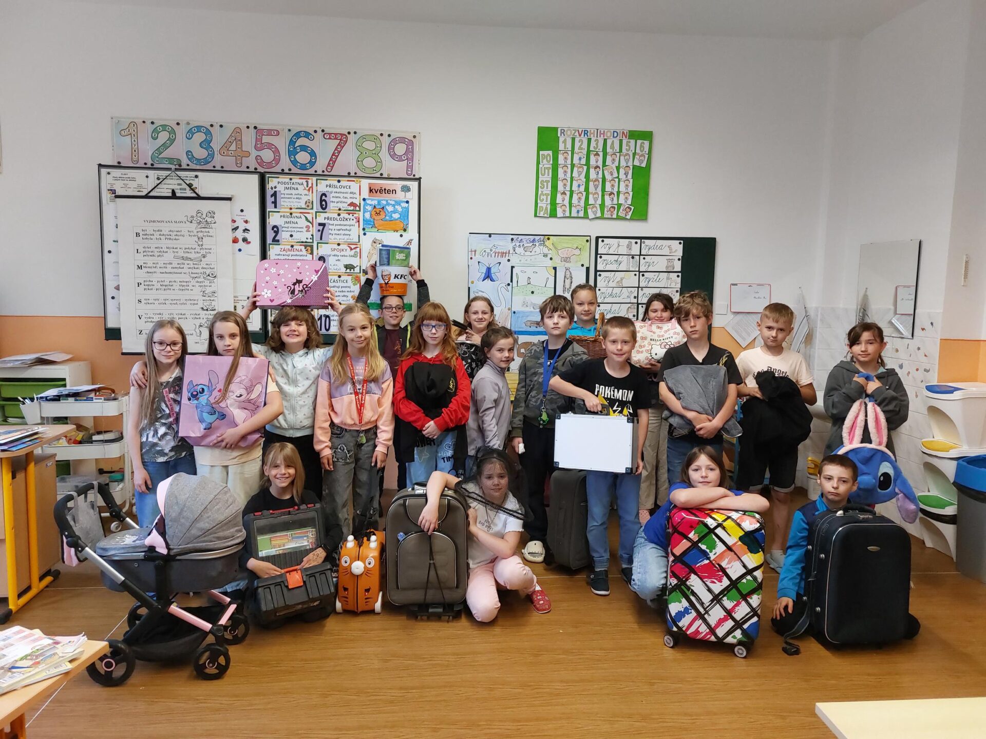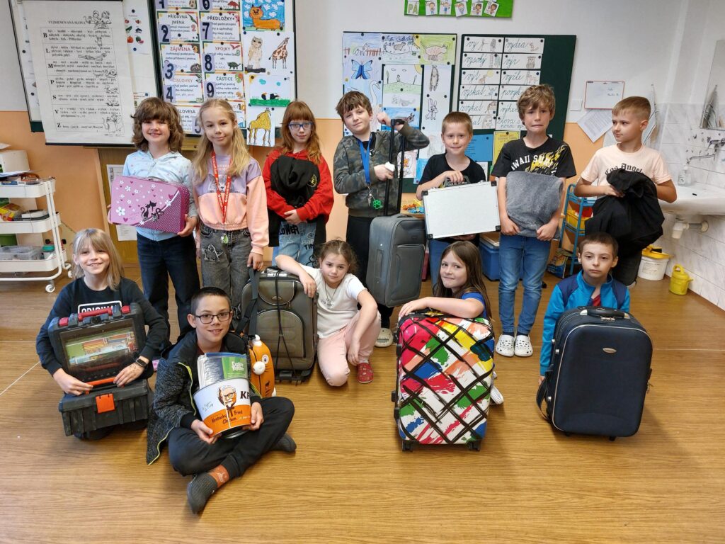 Většina třídy se zapojila do zábavného dne a představila kuriózní zavazadla. Všichni jsme se pobavili. Cenu za nejlepší zavazadlo vyhrály Ema a Bára.