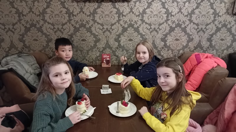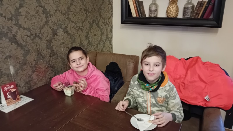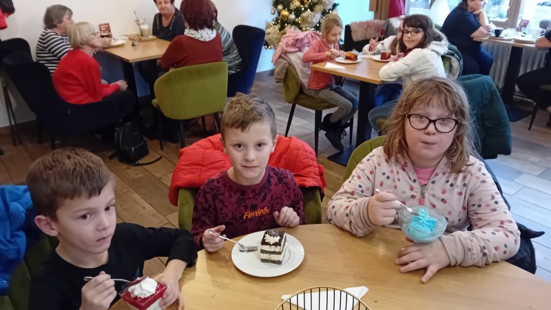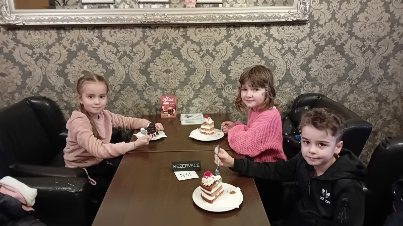 Děti z " KERAMIKY " a  "KREATIVNÍHO TVOŘENÍ " zavítaly do CUKRÁRNY, kde si pochutnaly na dortíčku. Doplnili jsme energii potřebnou pro další tvoření.