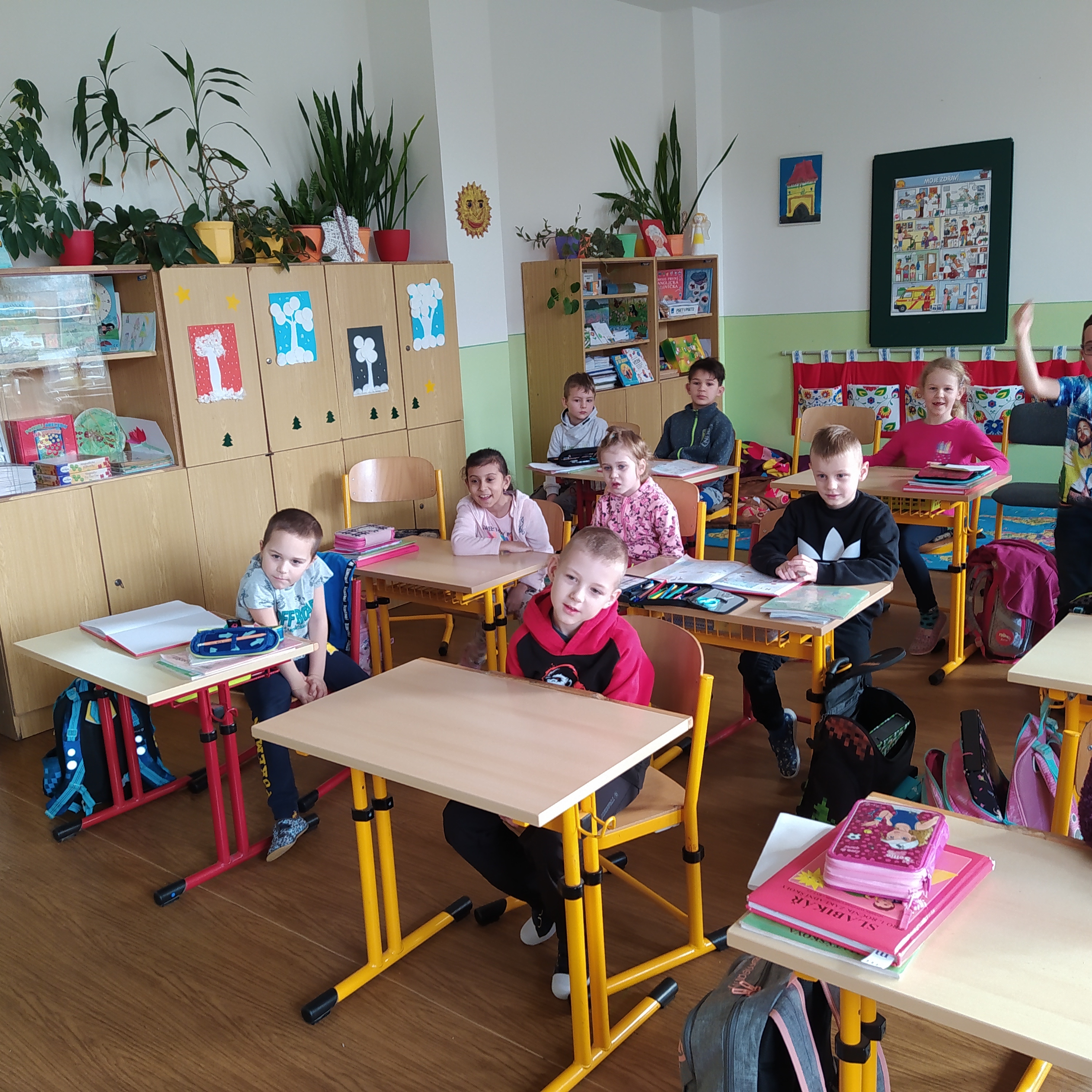 Paní učitelce ze Včeliček jsme předvedli, co už umíme a jak hezky čteme. Měla radost a chválila nás.