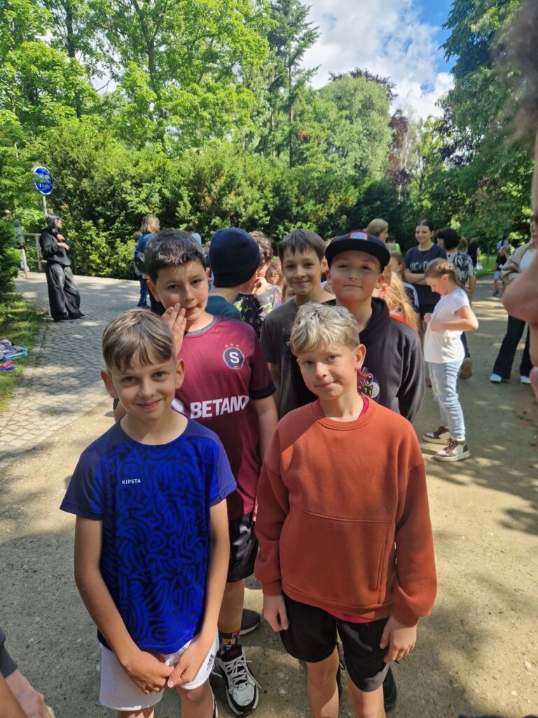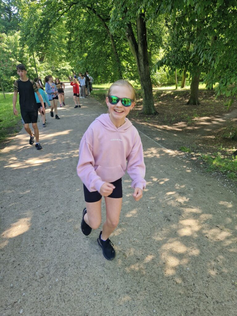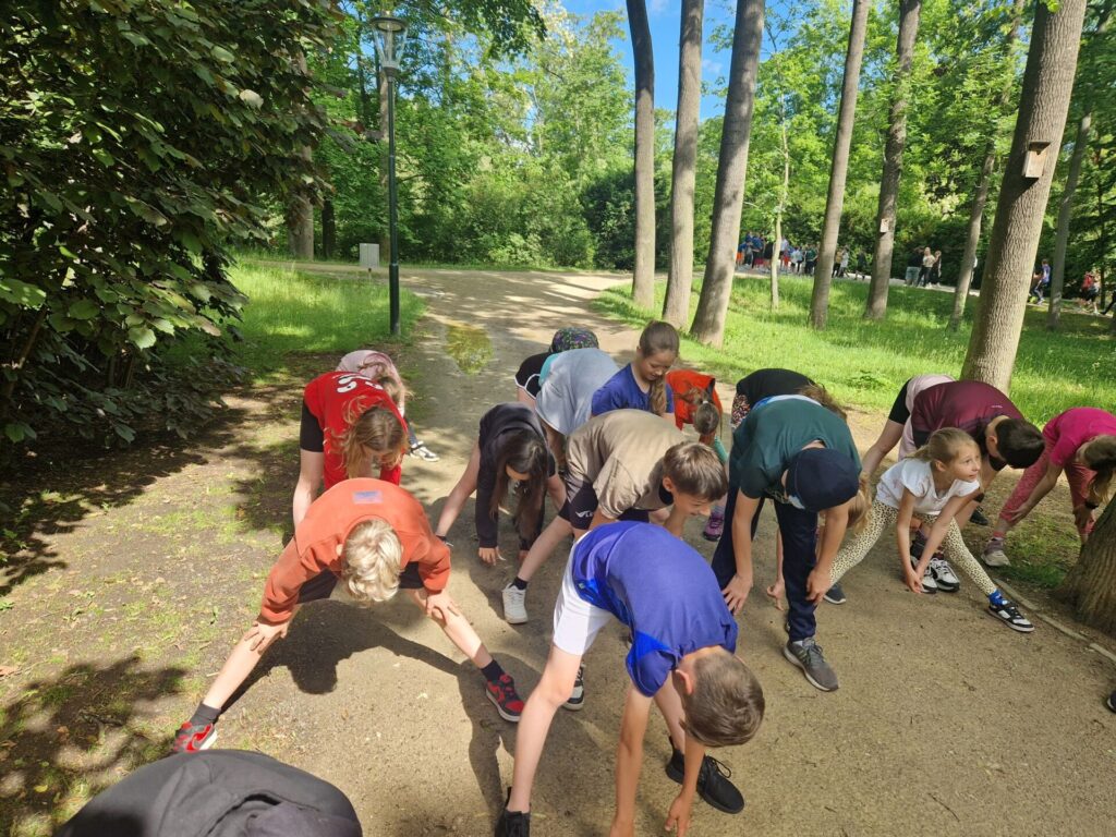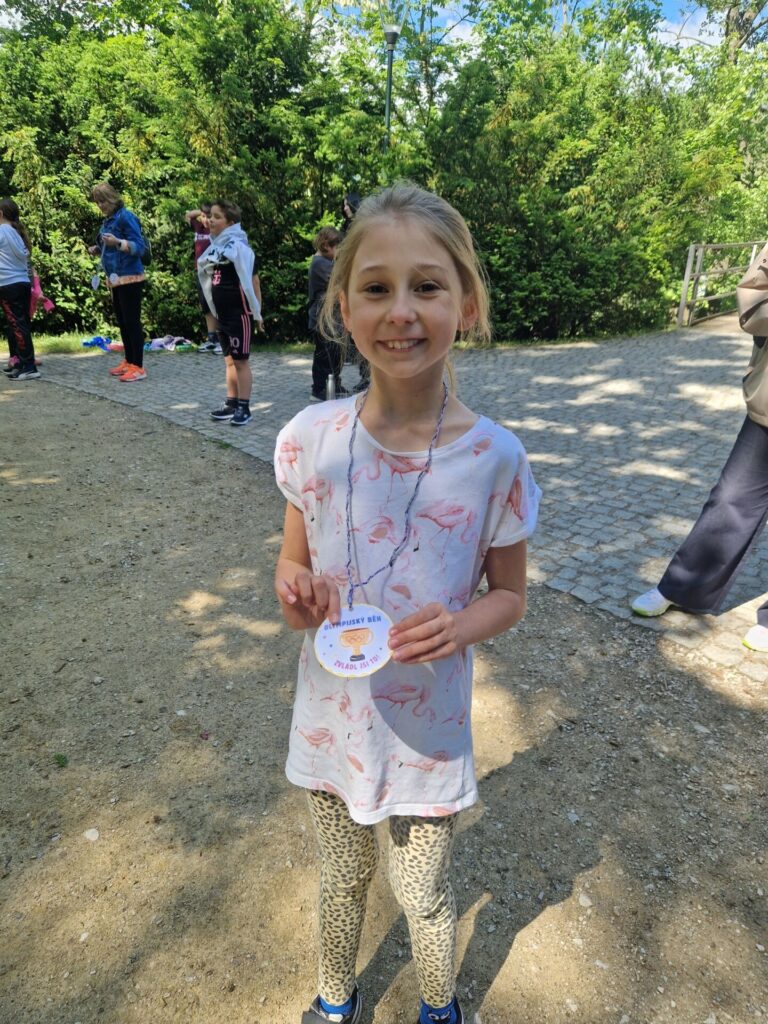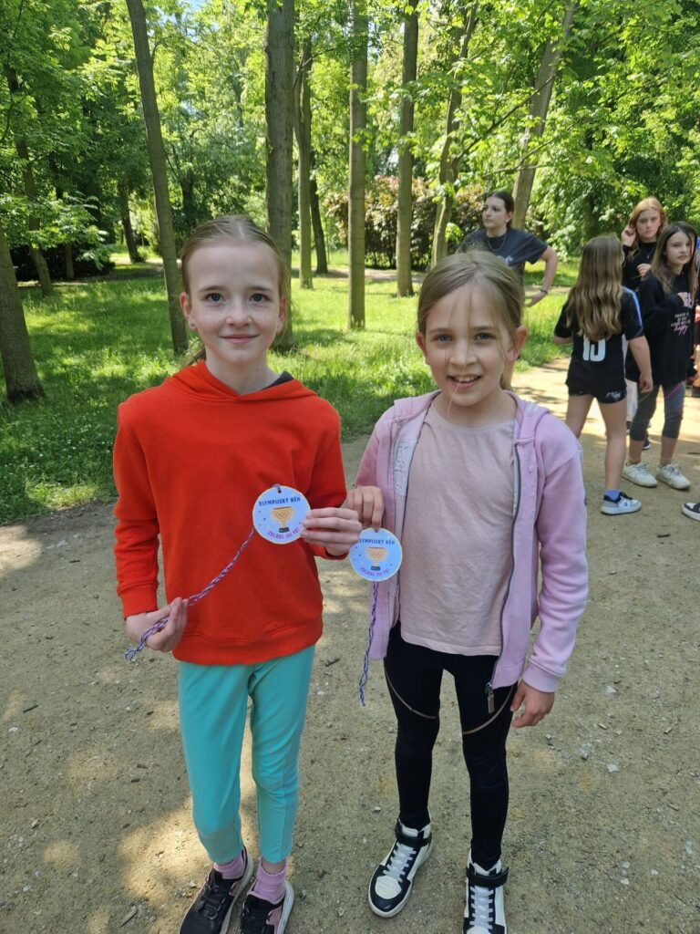Místo klasického tělocviku jsme si v místním parku zaběhli "olympijský běh" :-) Po našem sportovním výkonu jsme byli oceněni medailemi. Vše si pro nás připravili deváťáci spolu s učiteli tělocviku.