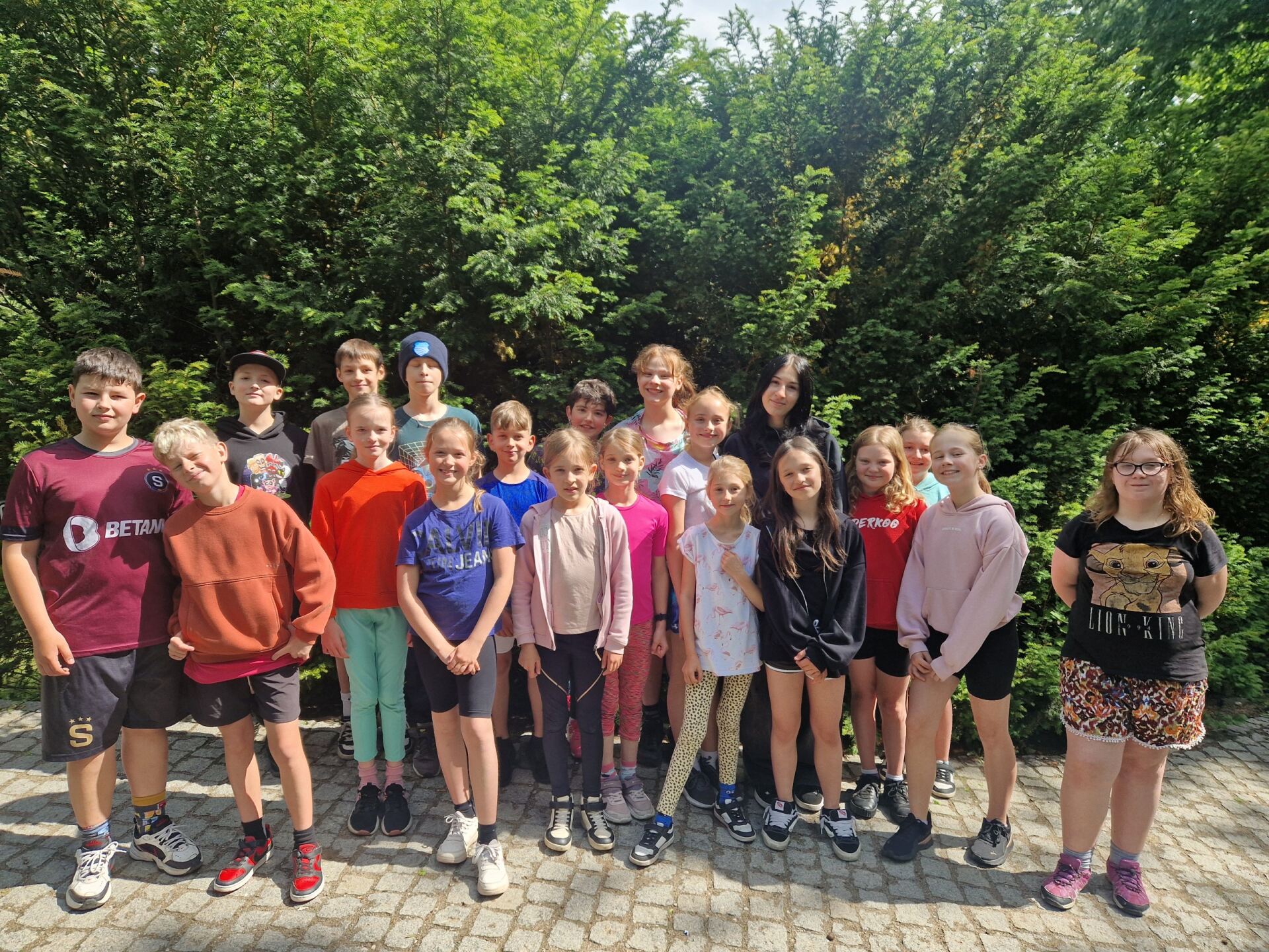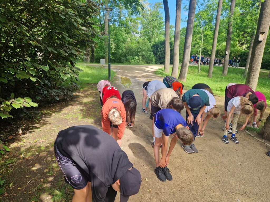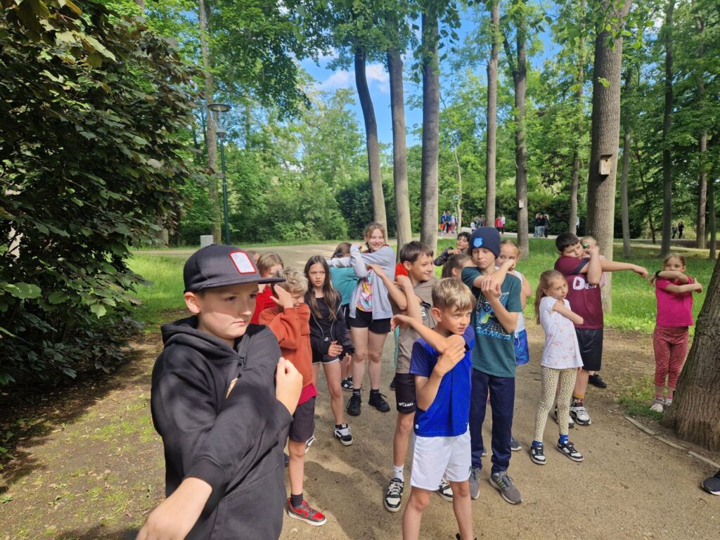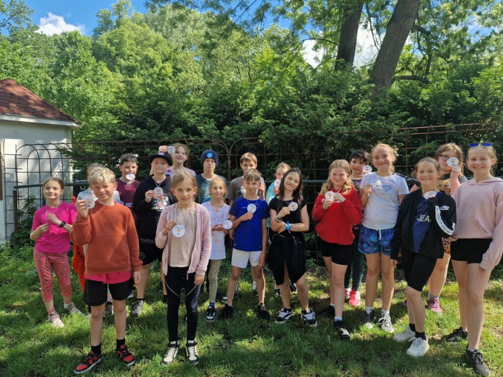 Místo klasického tělocviku jsme si v místním parku zaběhli "olympijský běh" :-) Po našem sportovním výkonu jsme byli oceněni medailemi. Vše si pro nás připravili deváťáci spolu s učiteli tělocviku.