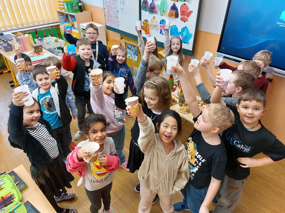 Oslava prvního vysvědčení byla úspěšná. Všichni jsme si připili nejen na zdraví, ale i na další školní úspěchy a přátelství.