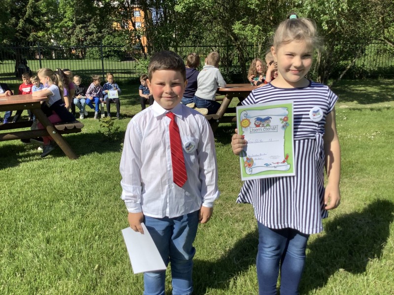 Všichni naši prvňáčci prokázali své čtenářská zdatnosti. Zvládli čtení a mohli být pasováni na čtenáře.