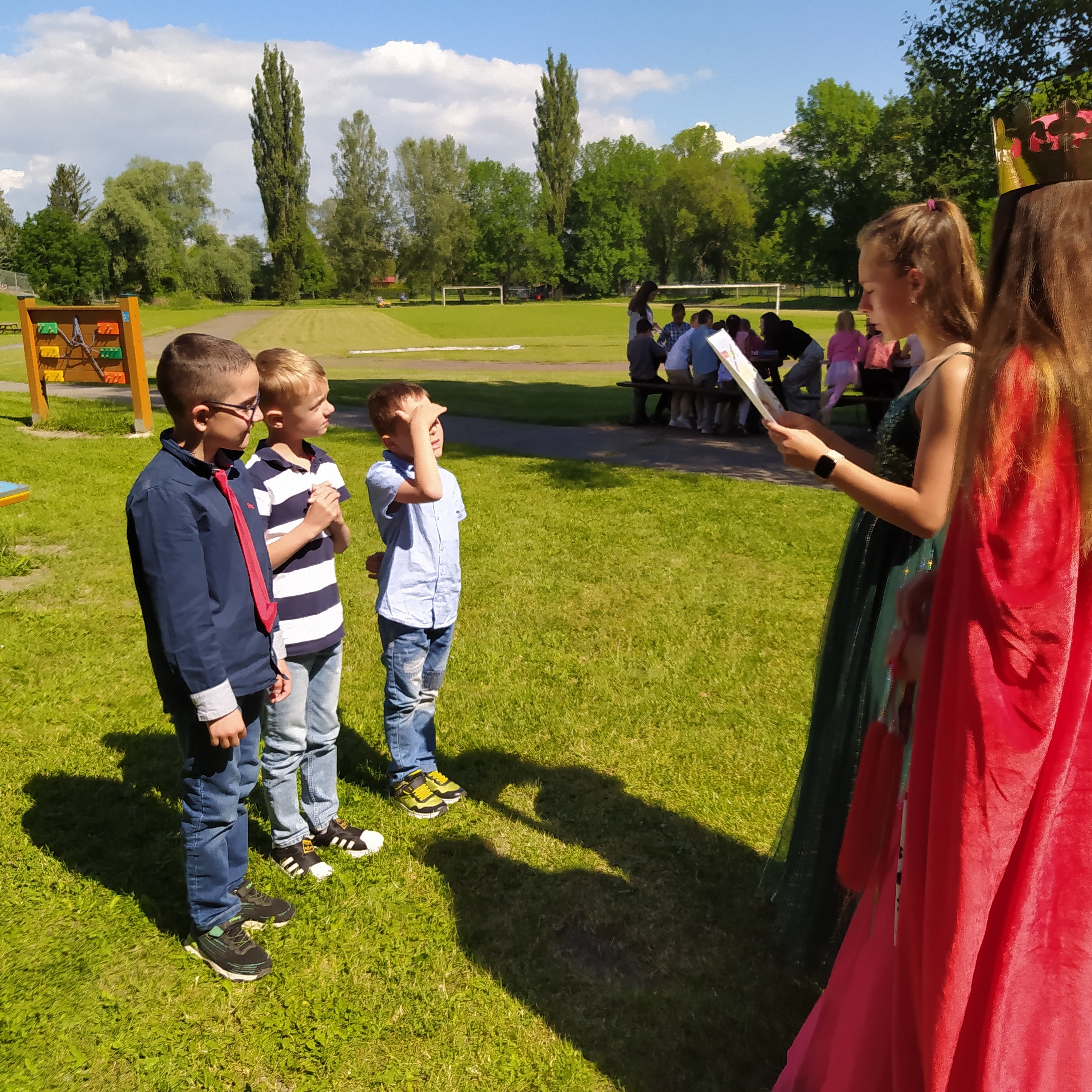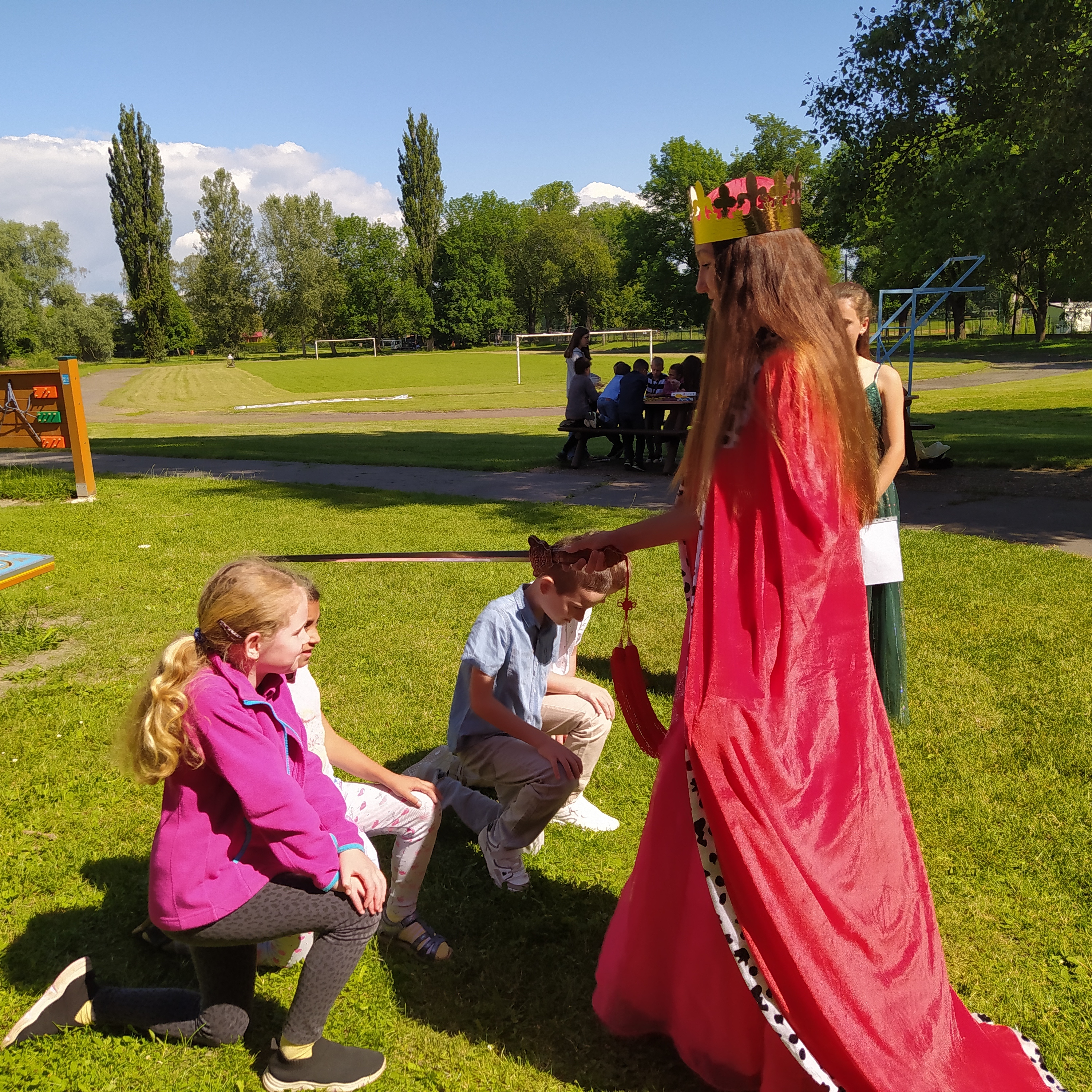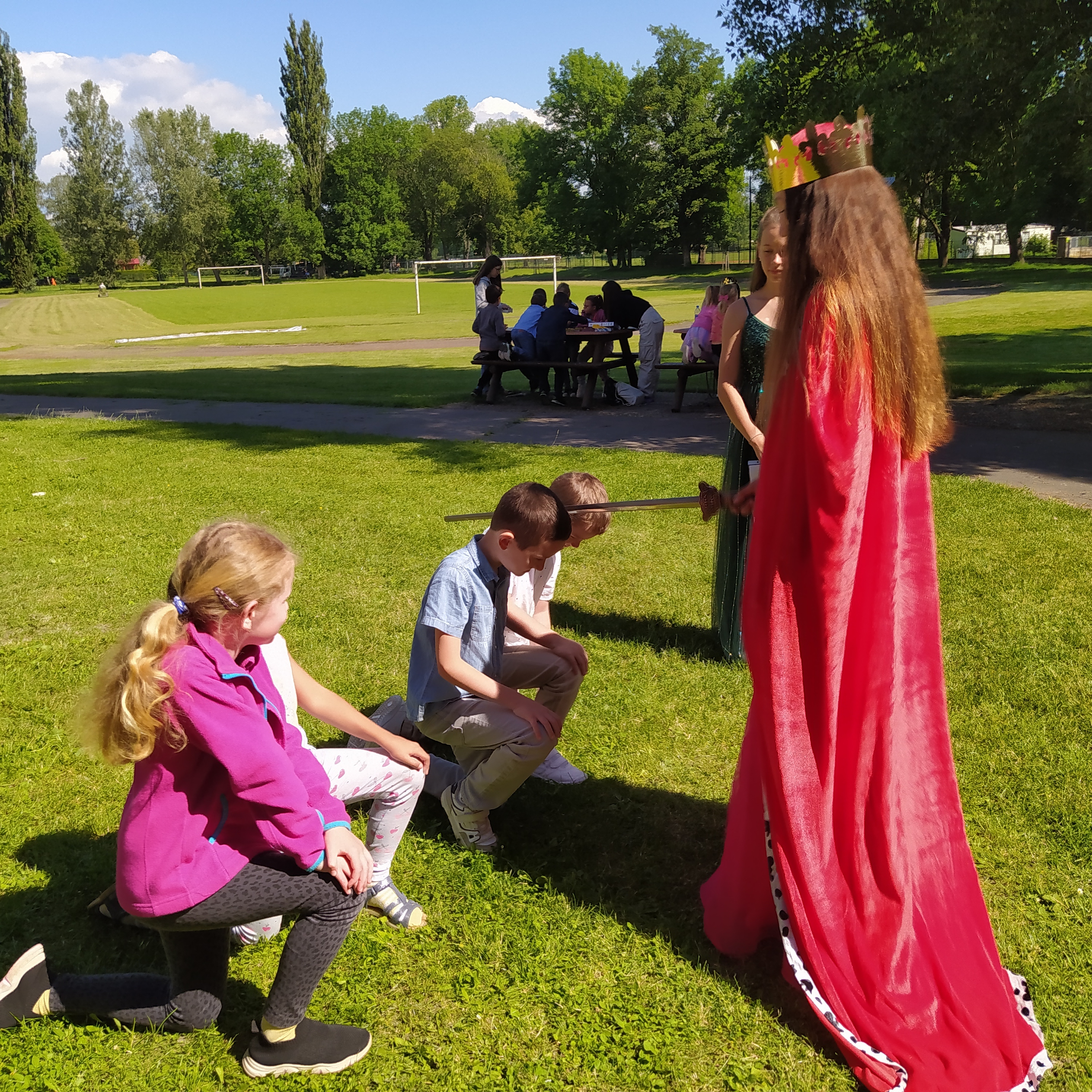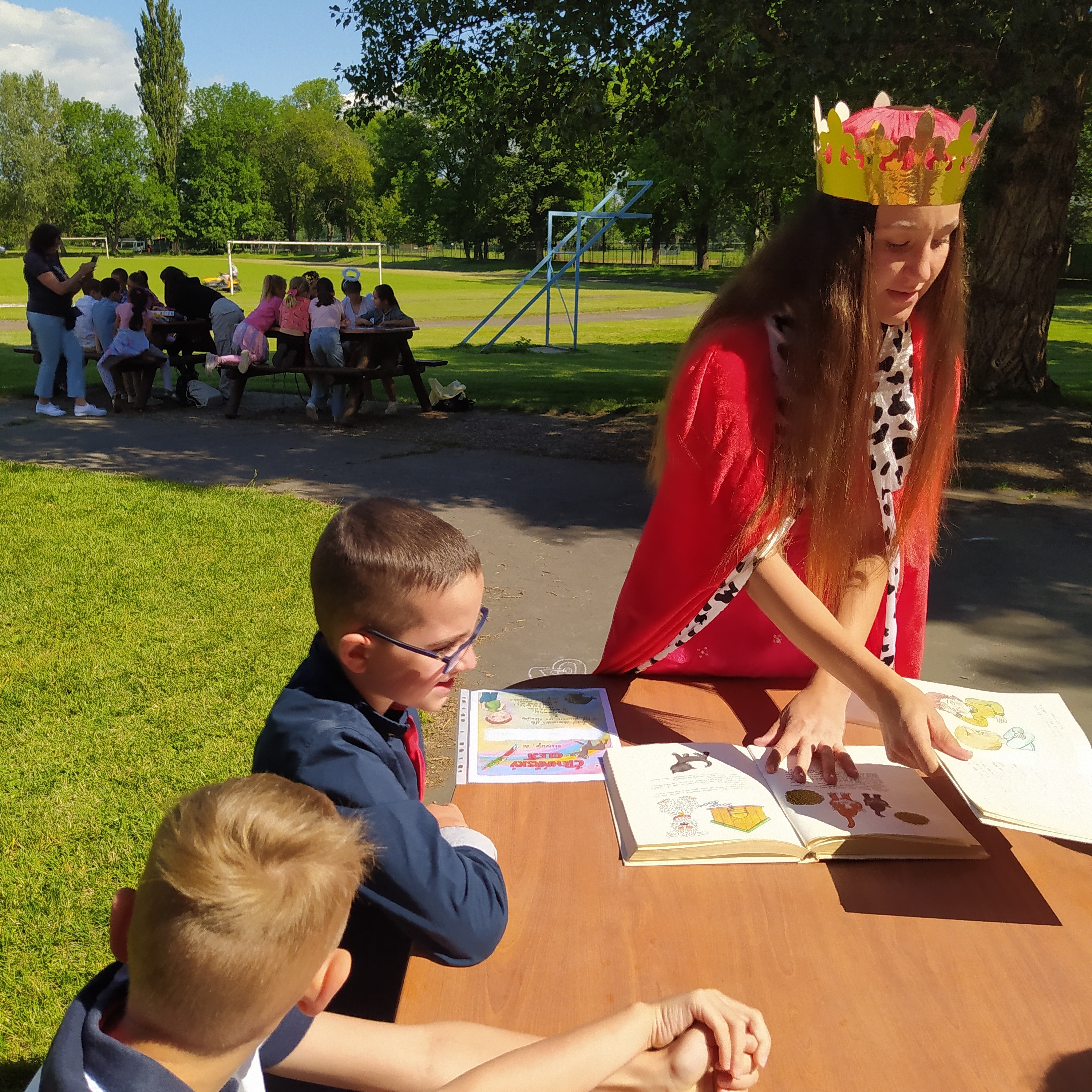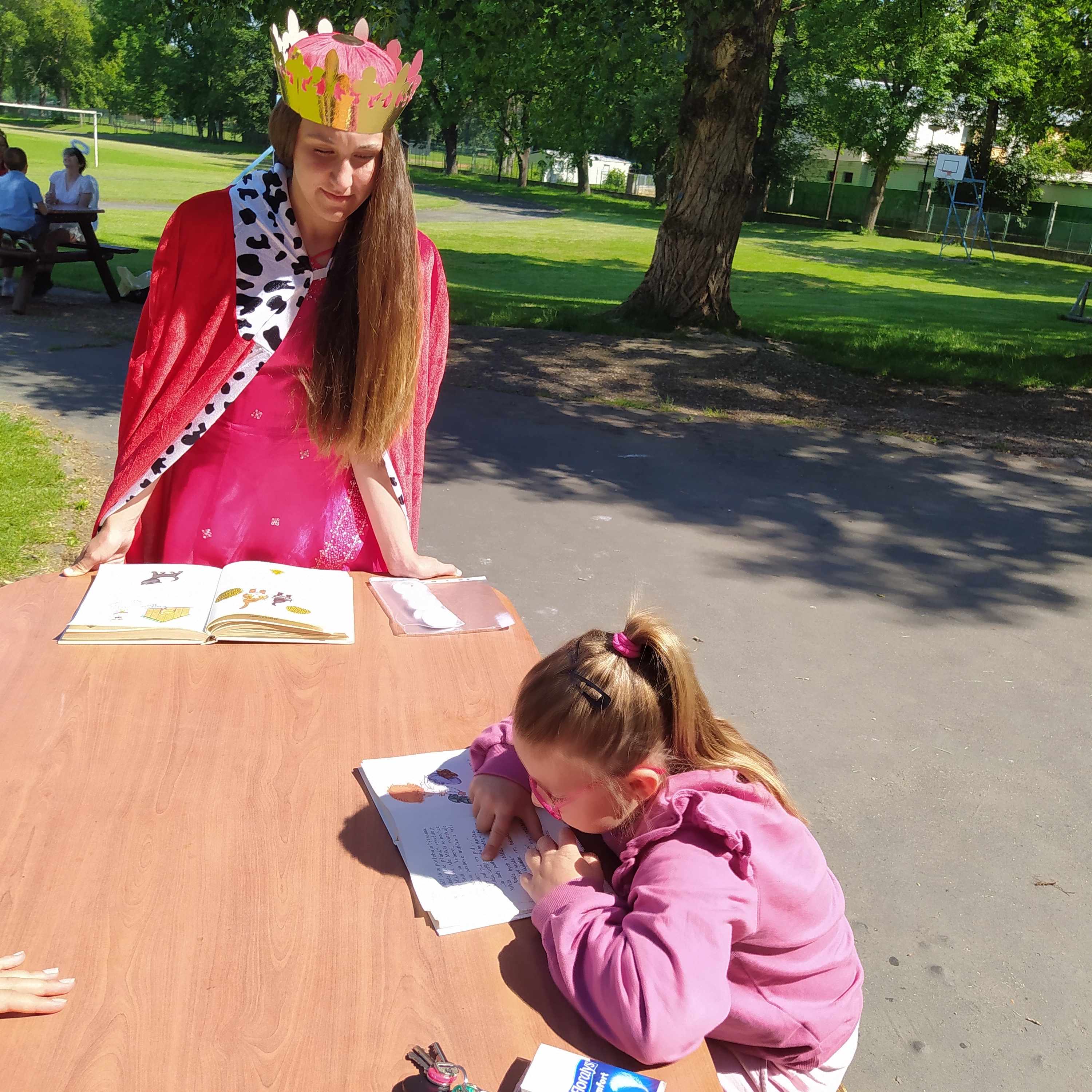 Nejdříve jsme se seznámili s královnou a její družinou, poté jsme jí přečetli úryvek z knížky.