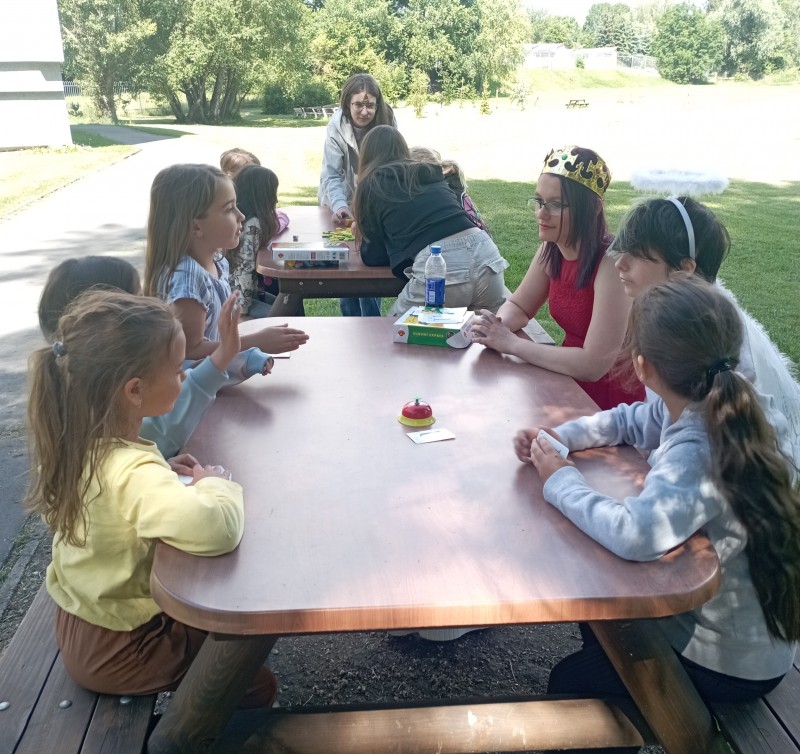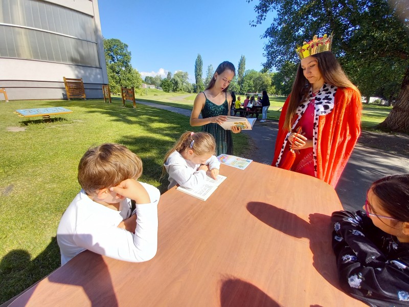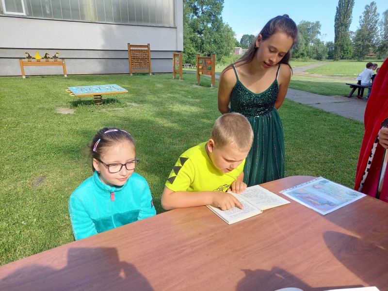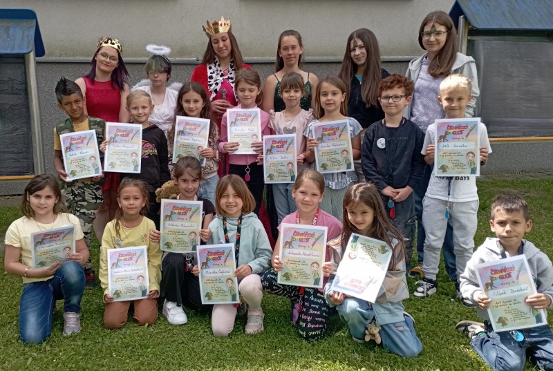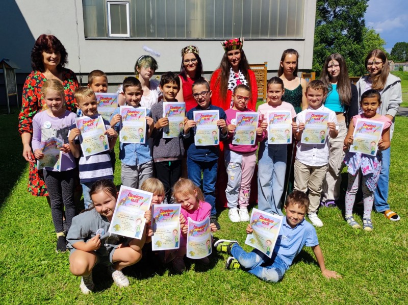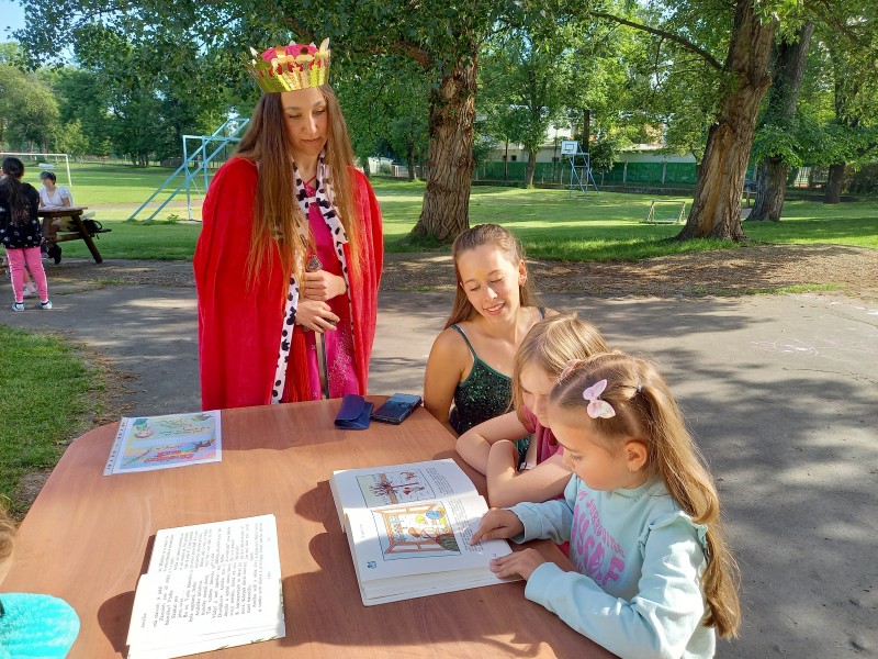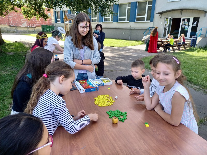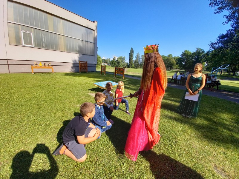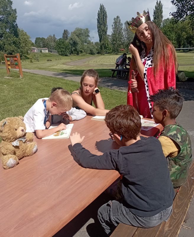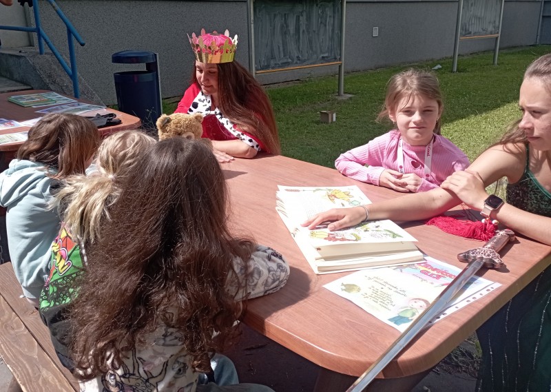 Ve středu 12. června jsme se s prvňáčky vydali na naše školní hřiště. Tentokrát nás tam čekala i královna se svojí sestrou a pohádkovou družinou.