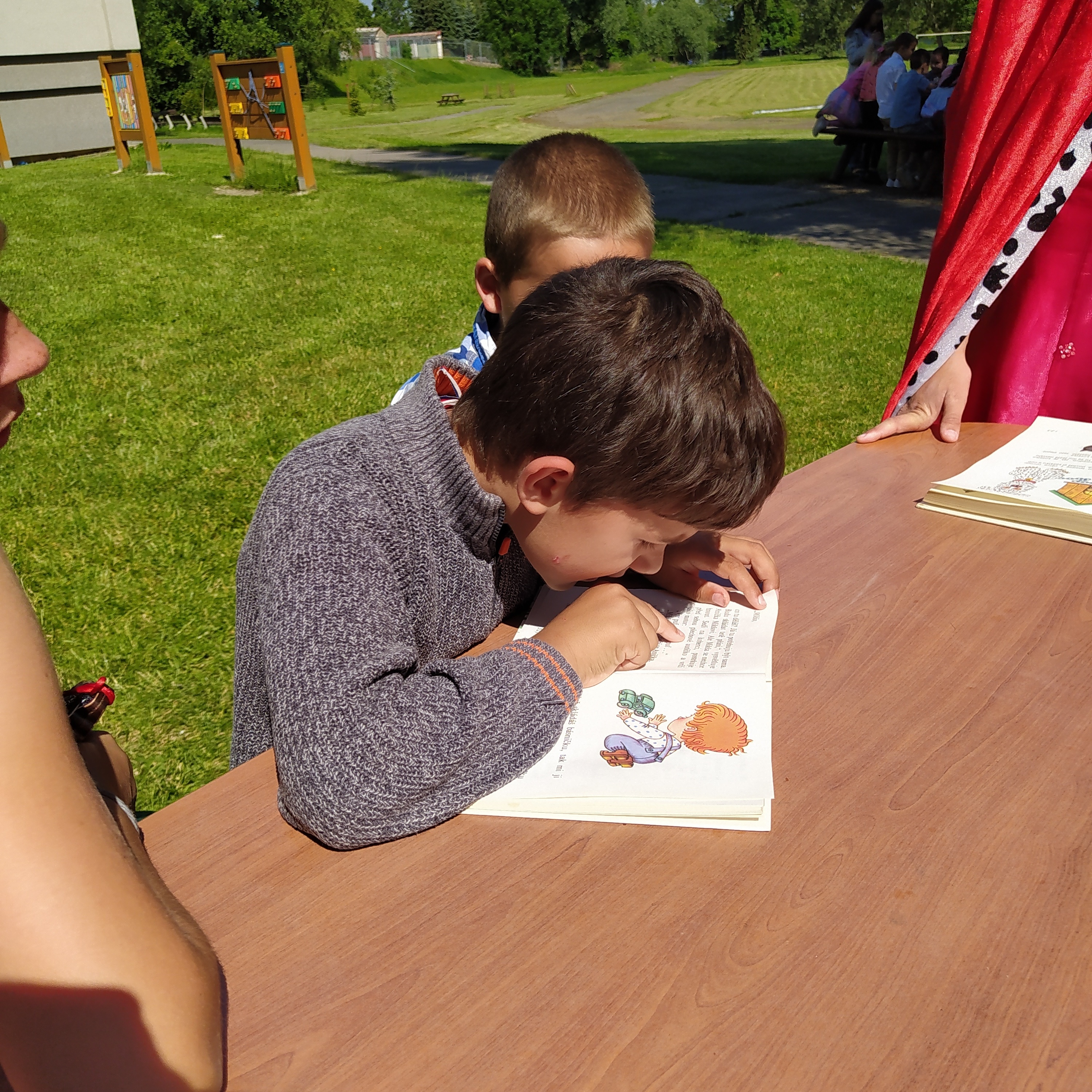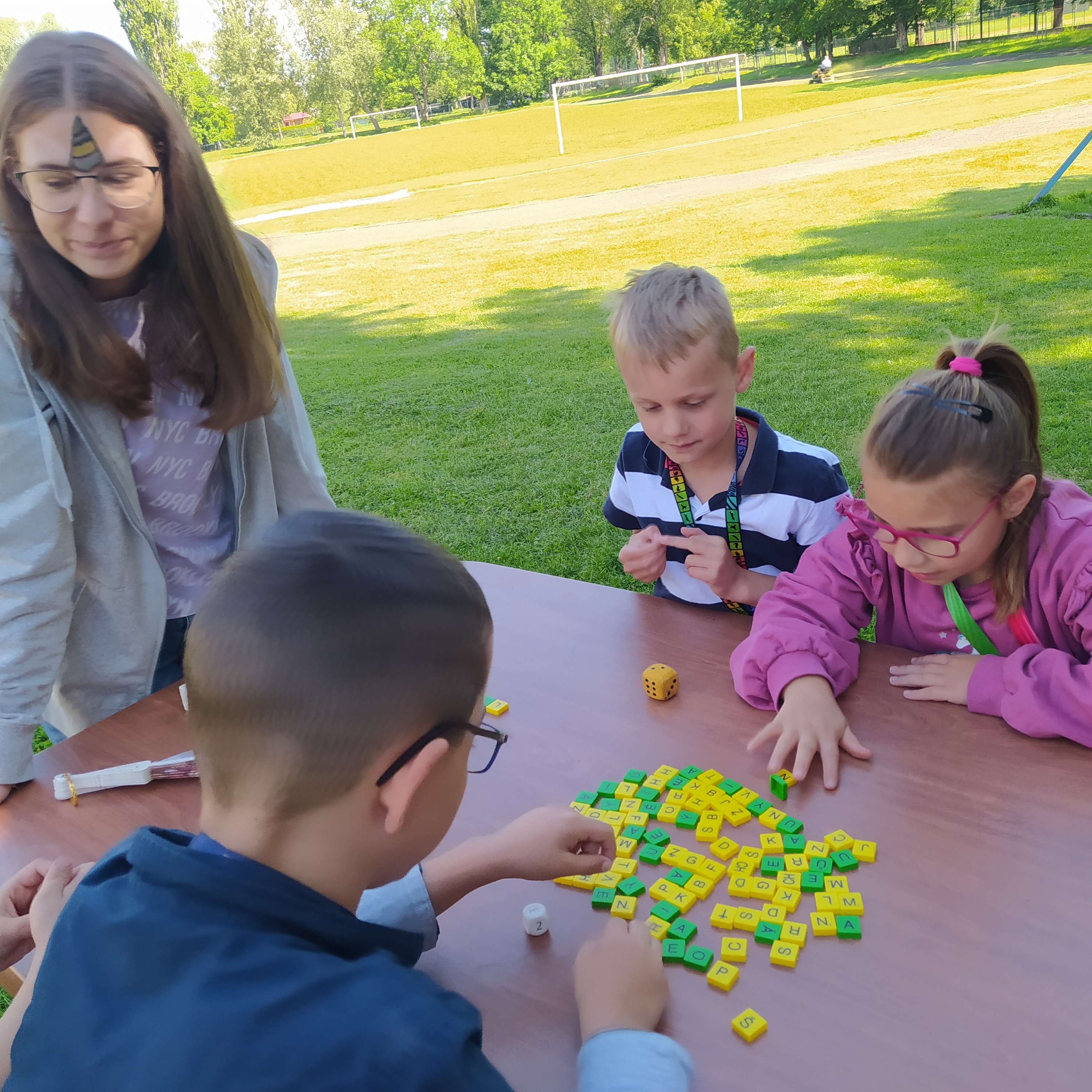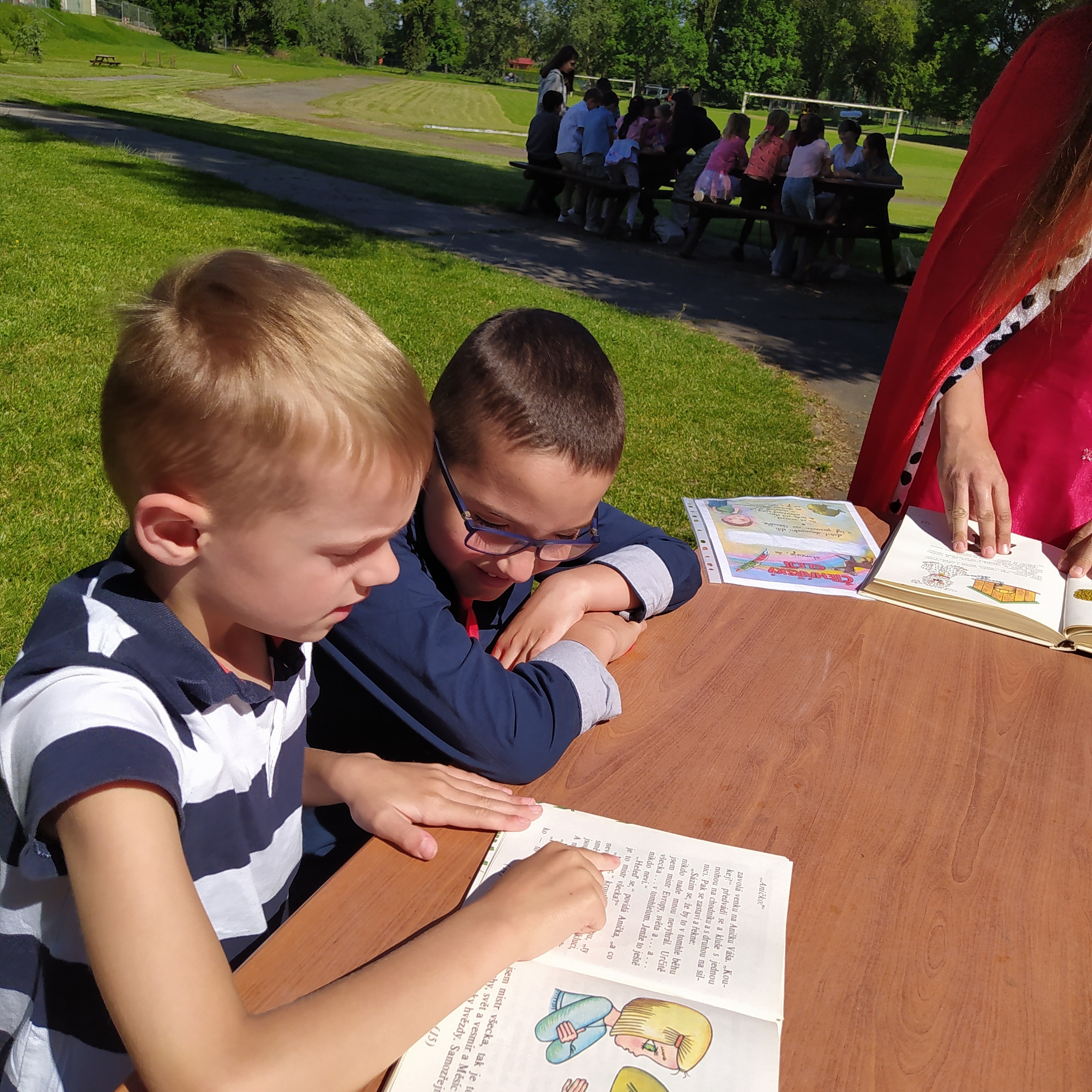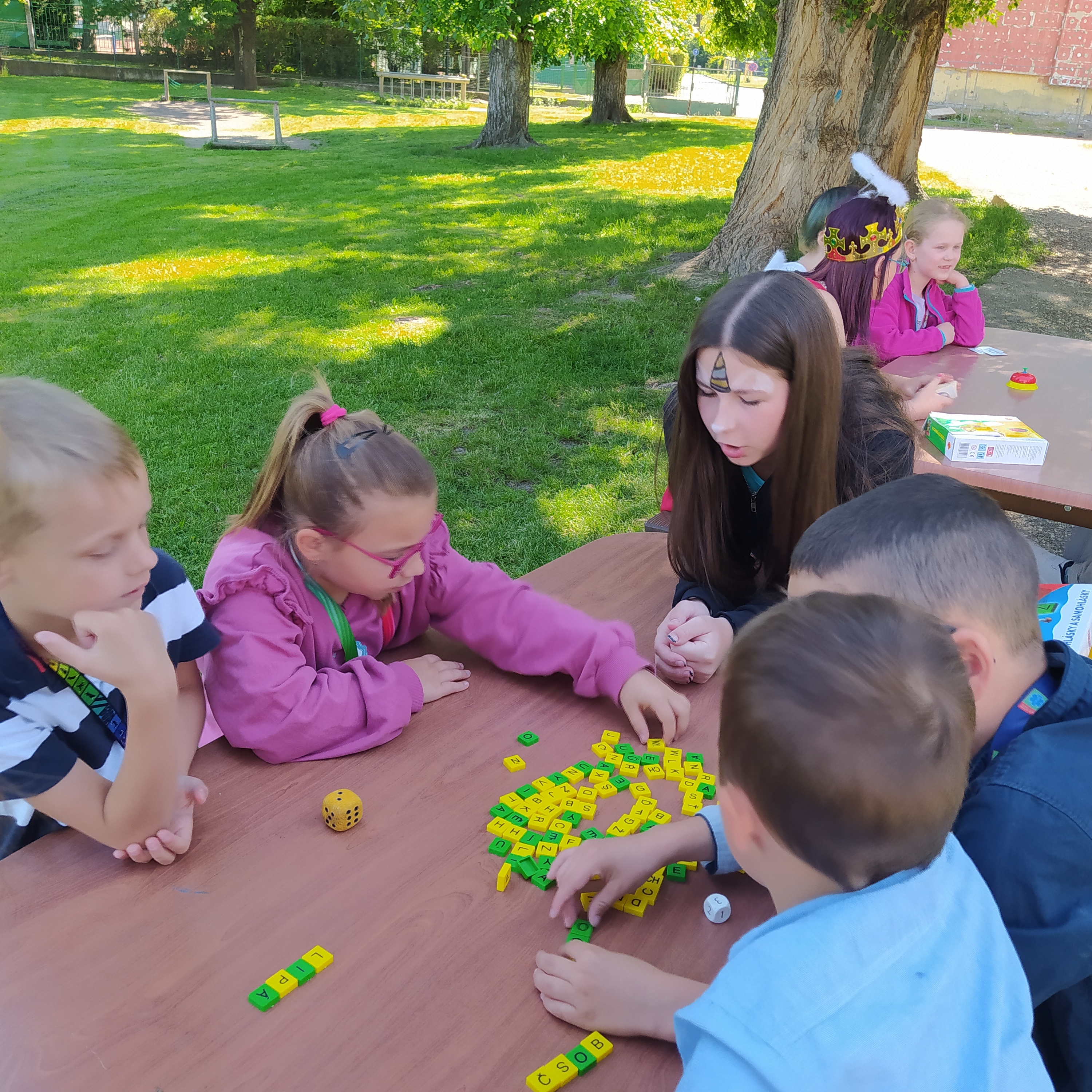 Ve středu 12. června jsme se s prvňáčky vydali na naše školní hřiště. Tentokrát nás tam čekala i královna se svojí sestrou a pohádkovou družinou.