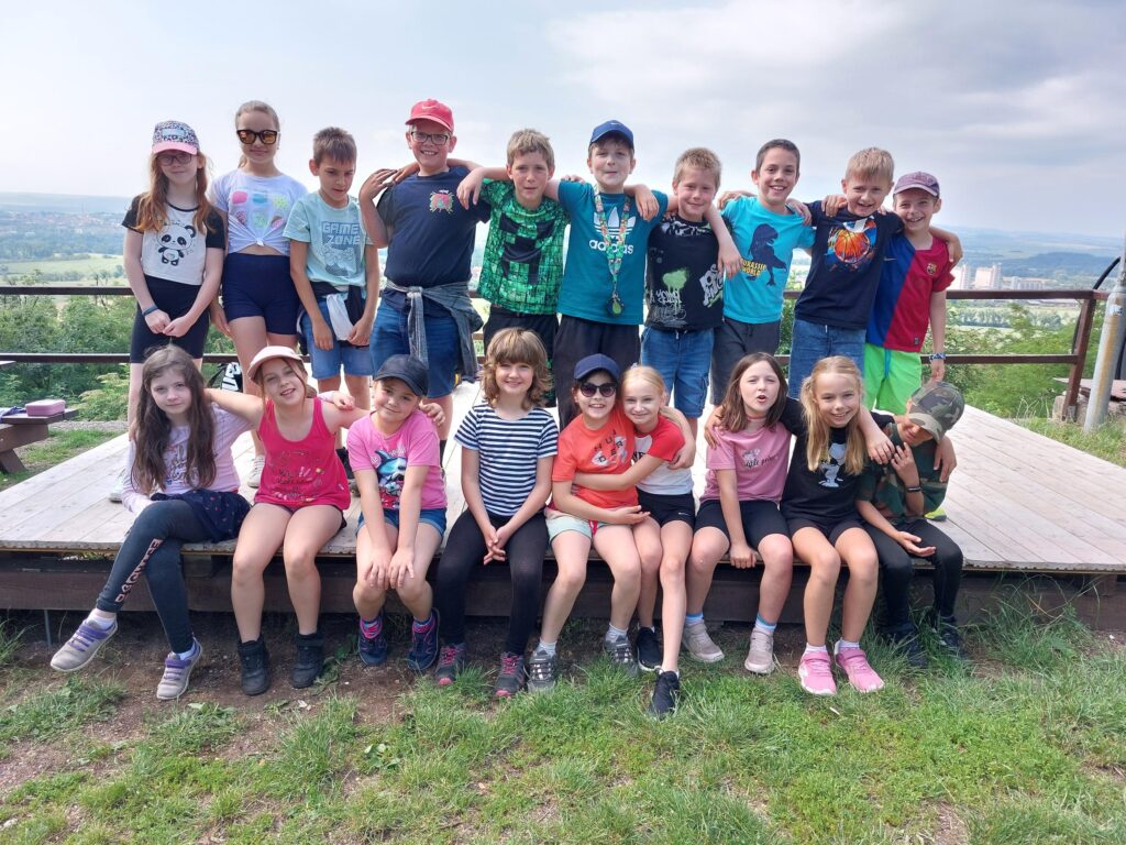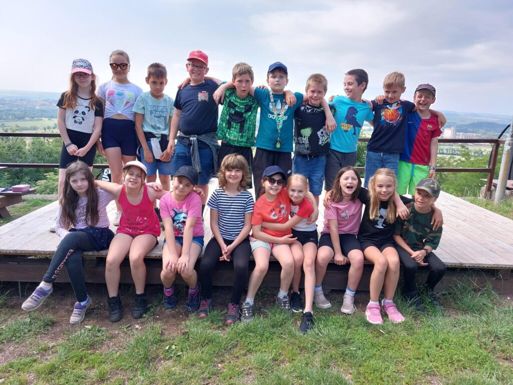 Na vrcholu nás čekala zasloužená odměna – výhled do širokého okolí z výšky a svačinka. Cestou zpět jsme si ještě stačili nasbírat pár listů a kamínků na památku.