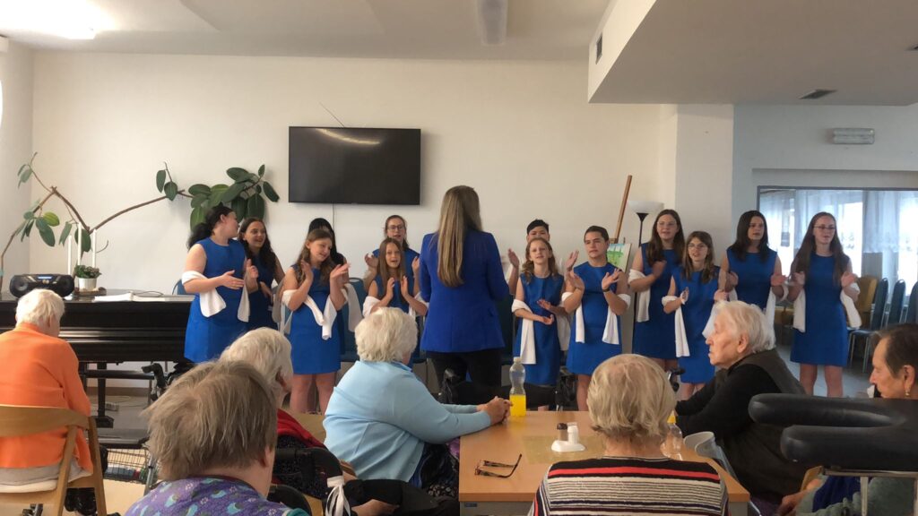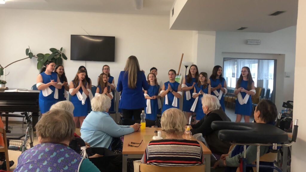 Dne 28. 5. se náš pěvecký sbor rozhodl potěšit obyvatele domu seniorů. Vybrali jsme písně jak pomalejší, tak i trochu svižnější....závěrečnou skladbu Vysoký jalovec zpívali všichni společně s námi a to znělo :-) :-)