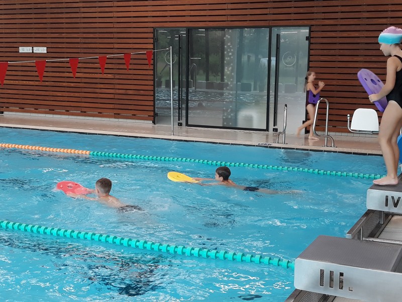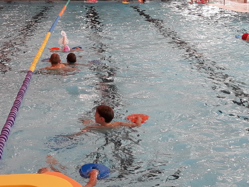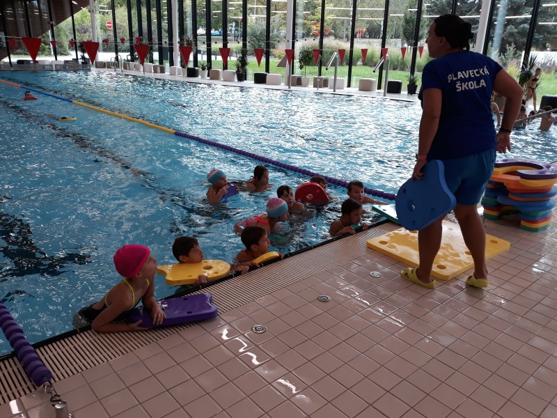 Poctivě trénujeme splývání, dýchání do vody, kraulové ruce i nohy. Začali jsme s nácvikem skoků do vody....