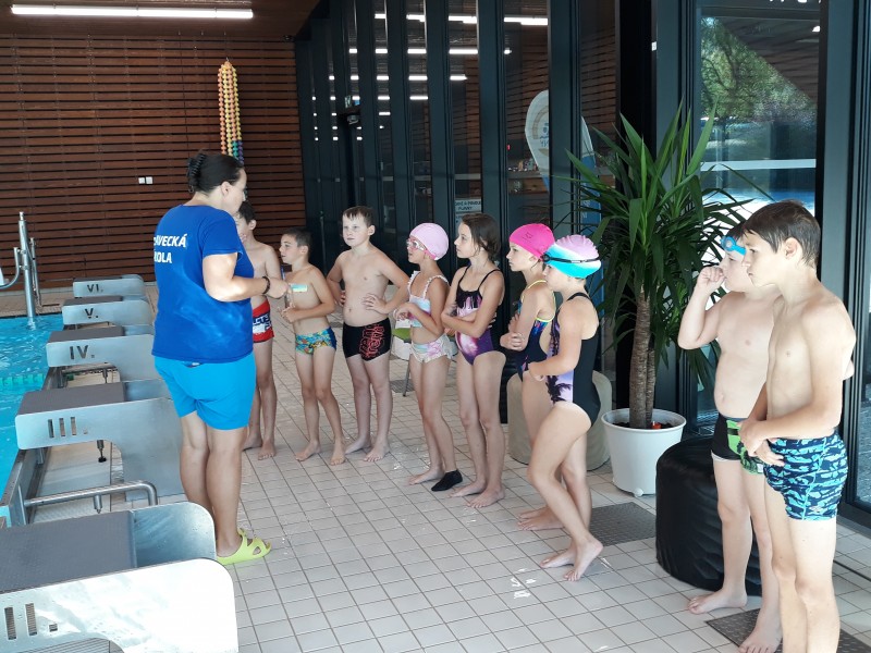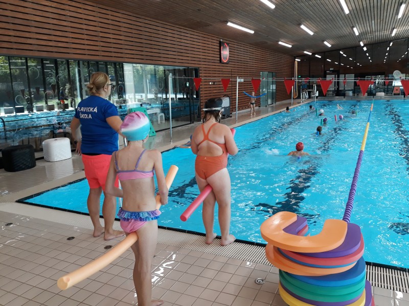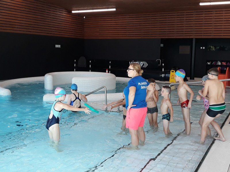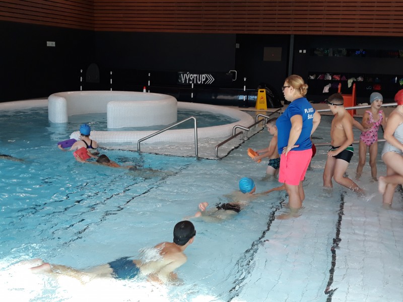 Úspěšně pokračujeme v plaveckém výcviku. Tentokrát jsme se věnovali nácviku pohybu nohou a rukou při plaveckém stylu znak. Přidali jsme skoky do vody a potápění pro plavecké pomůcky.