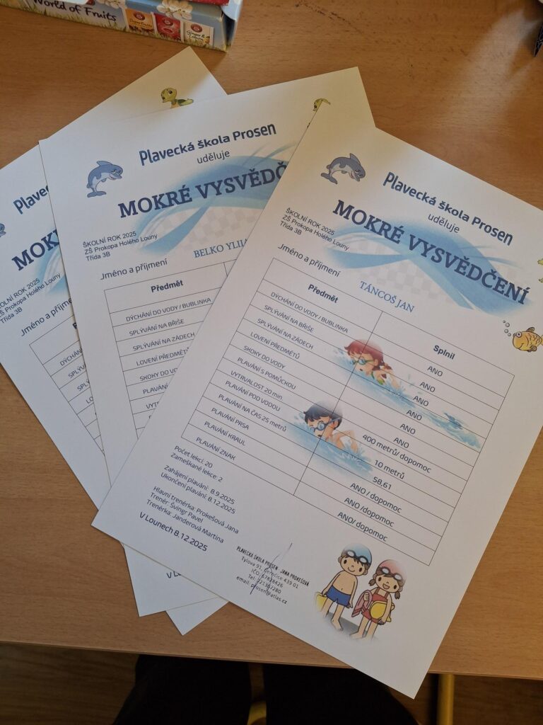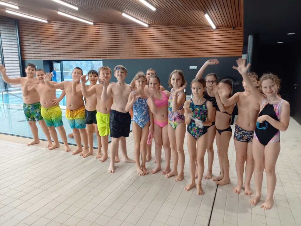 Ve 3. B všechny děti úspěšně dokončily plavecký výcvik! Získaly své „mokré vysvědčení“ a užily si i závěrečné řádění na tobogánech.