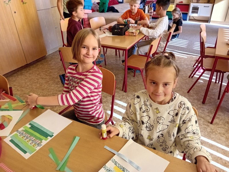 Podzim nám přináší spoustu inspirace pro naše výtvarné i pracovní činnosti. Ve školní družině se učíme, co se na podzim sklízí, poznáváme zeleninu a ovoce. Protože probíhá ráj houbařů, rozlišujeme také, které houby sbíráme a které necháváme v lese.
