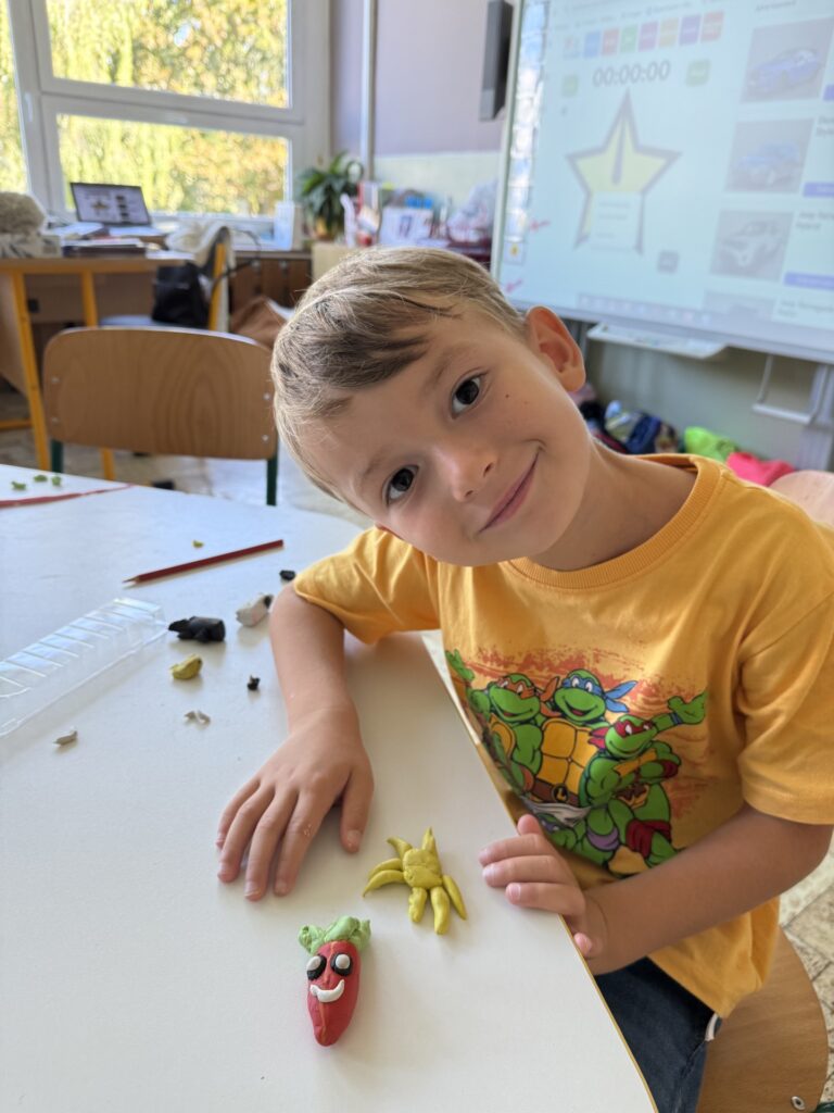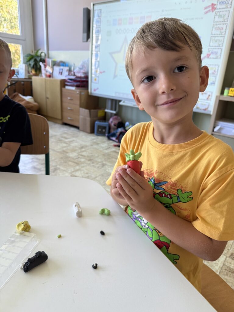 A protože nás jen poslouchání nebaví, pustili jsme se do tvoření – řepu i všechny postavičky jsme si vymodelovali. Někde byla řepa obrovská, jinde legračně malá, ale všechny měly jedno společné – spoustu fantazie a radosti.
