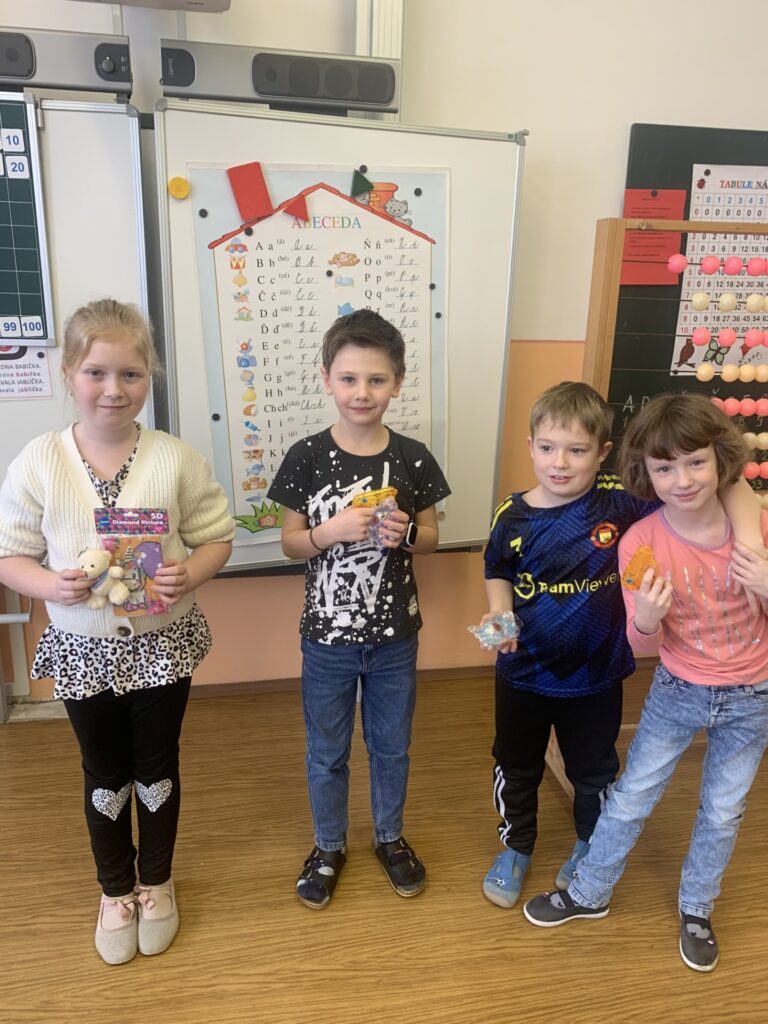 Naši třídní šikulové byli také oceněni. Za nemocného Matýska vysvědčení přebrali jeho sourozenci.