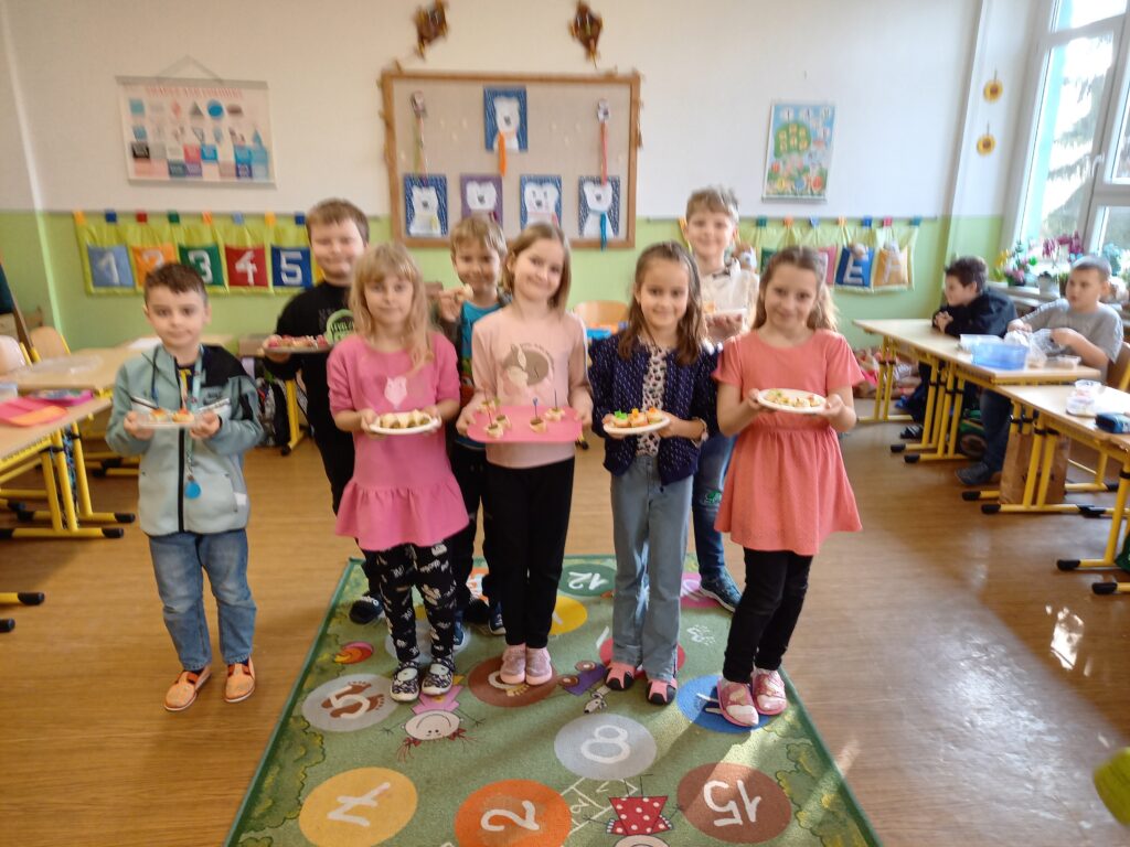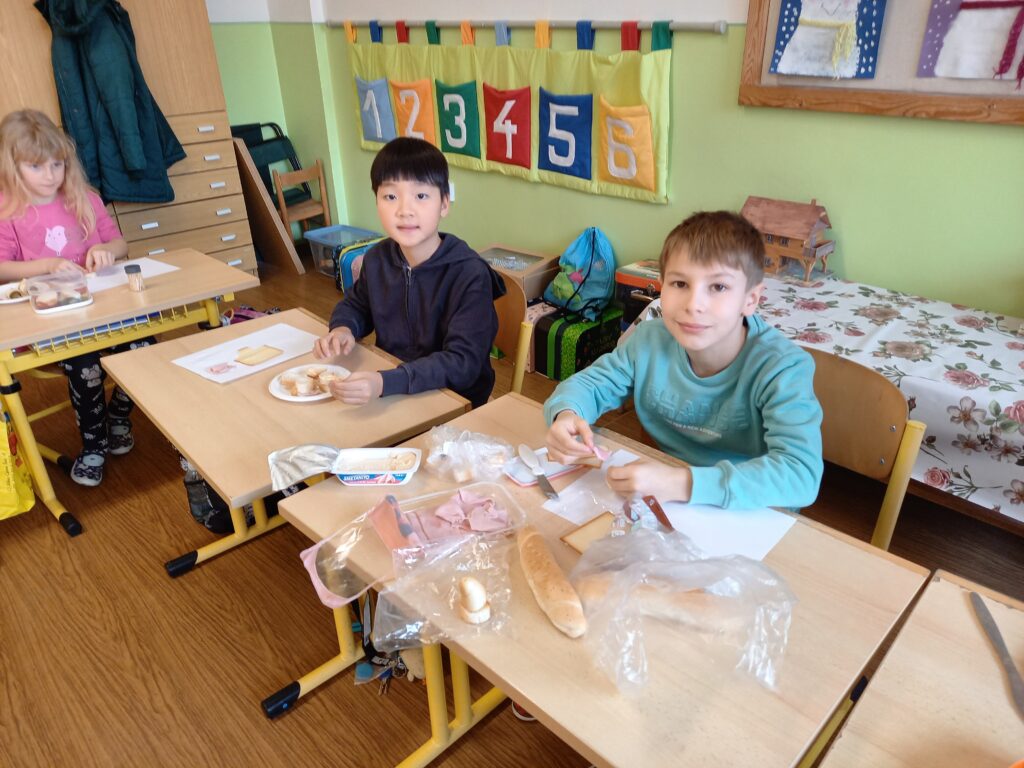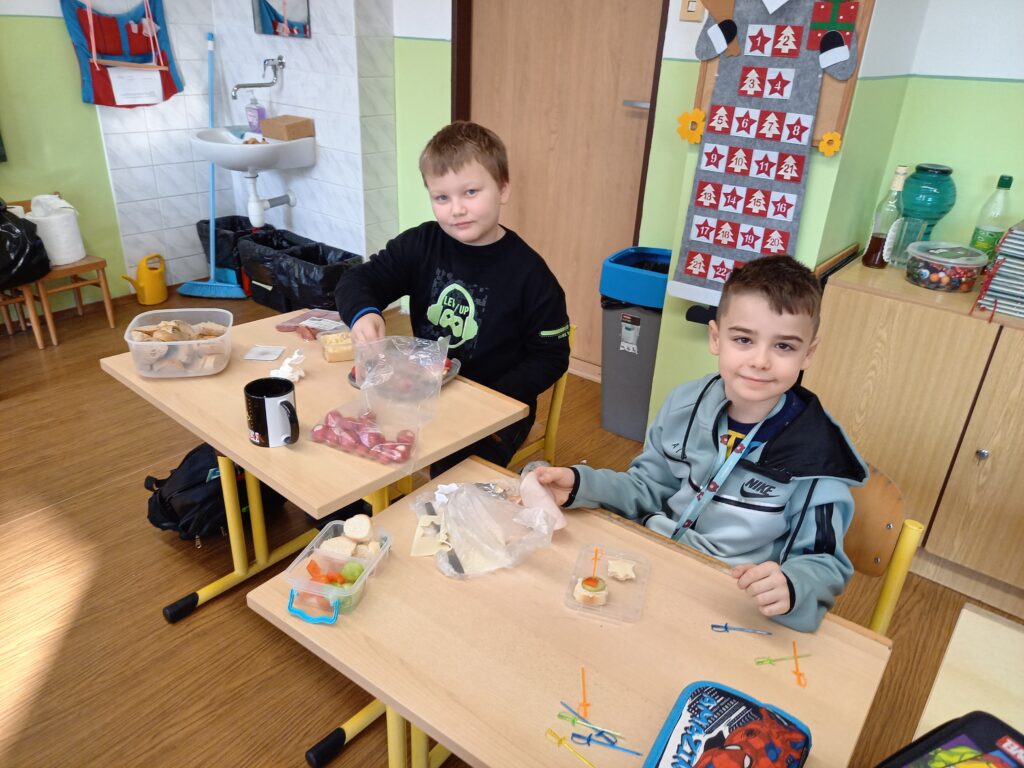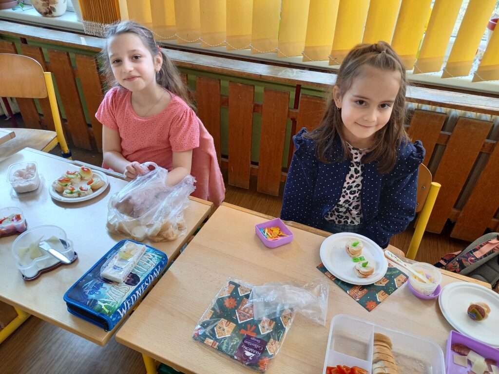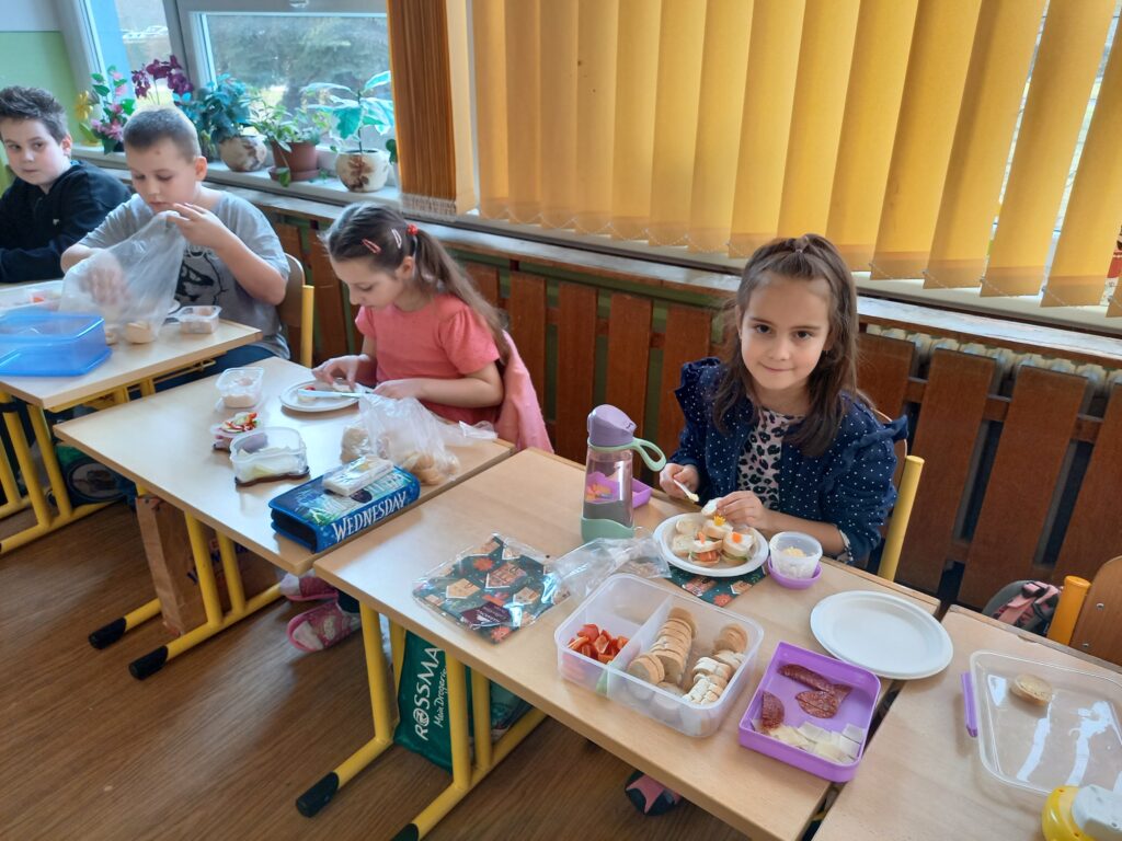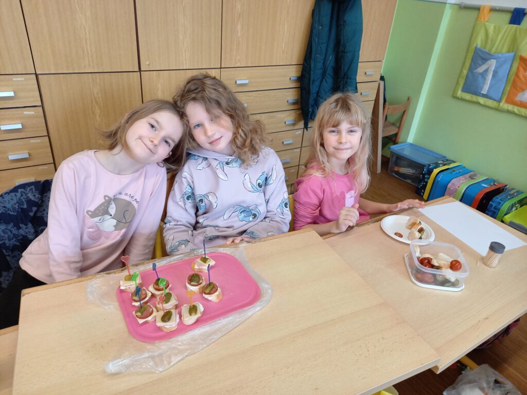 Děti si donesly všelijaké dobroty a práce jim šla od ruky. Ze svých surovin si vyrobily chutné jednohubky a obložené talíře.