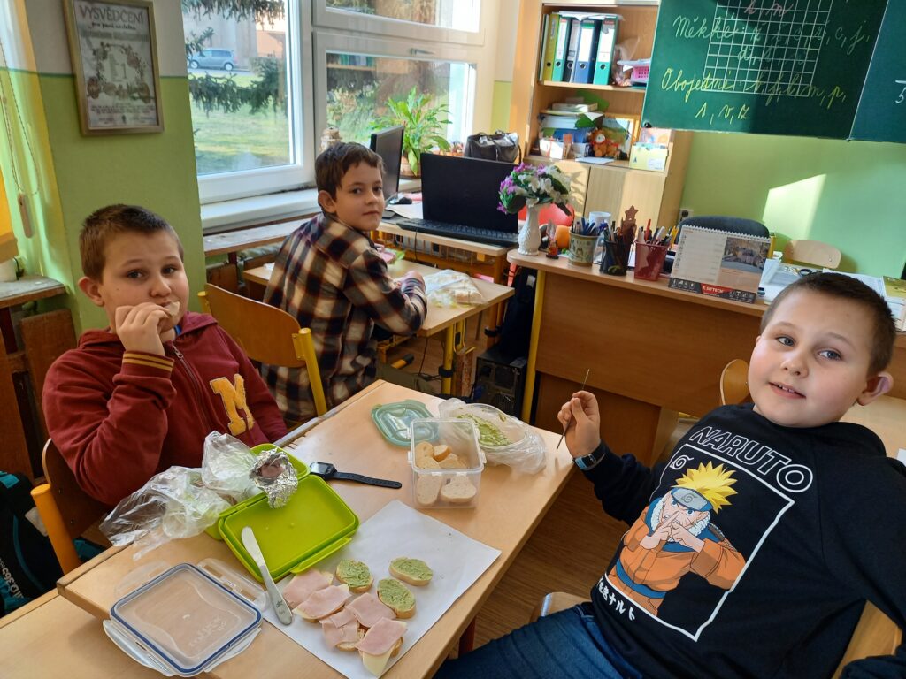 Děkujeme všem maminkám i babičkám za pomoc při výrobě pomazánek. Kluci i holčičky navzájem ochutnávali, nechyběla zábava ani tanec.