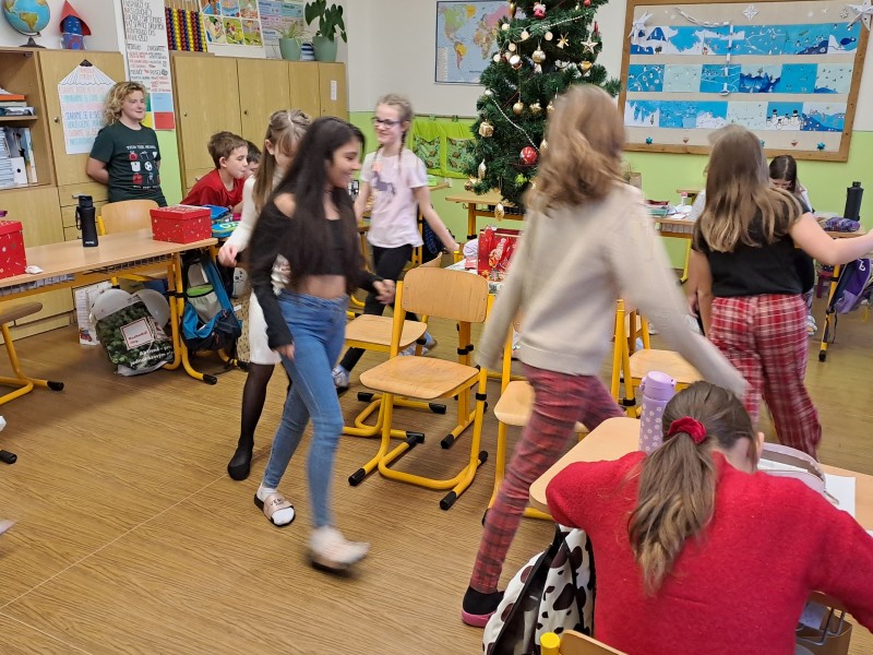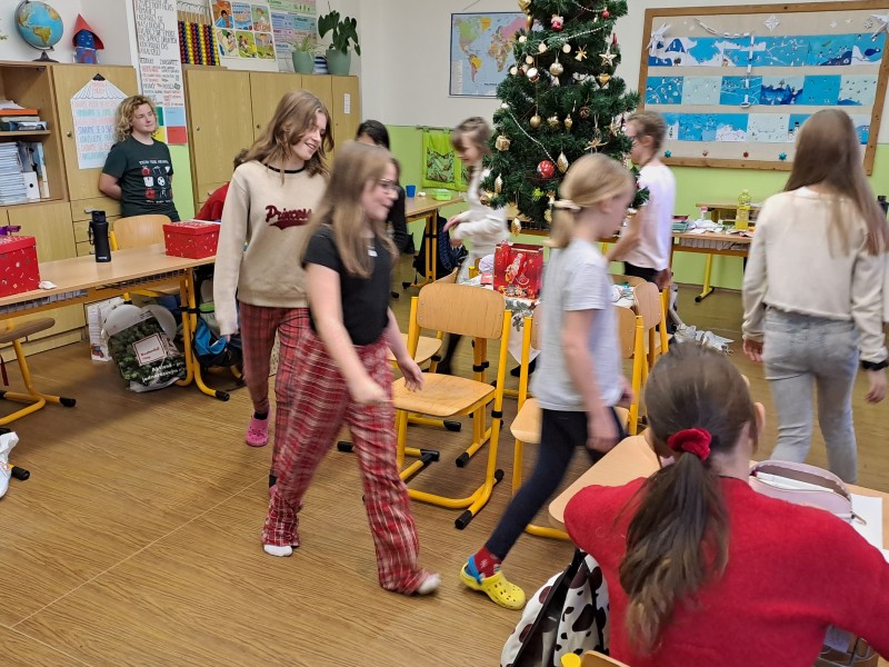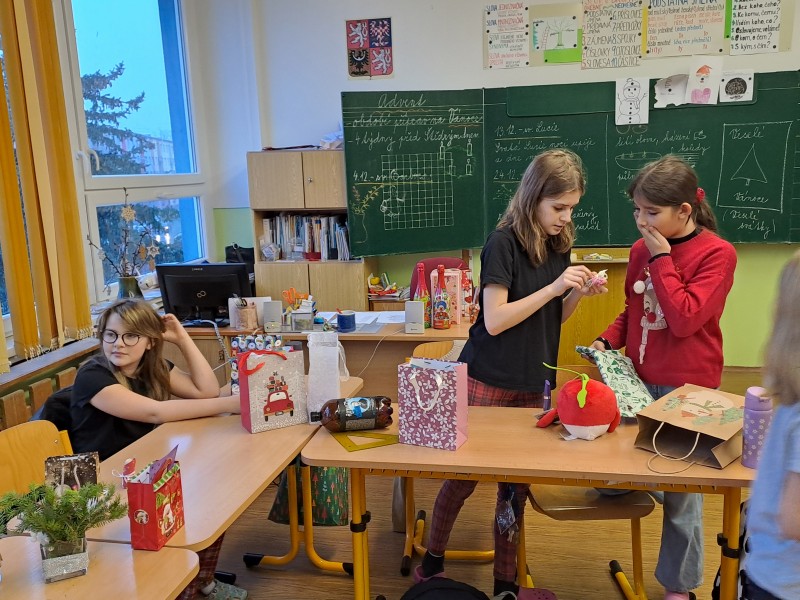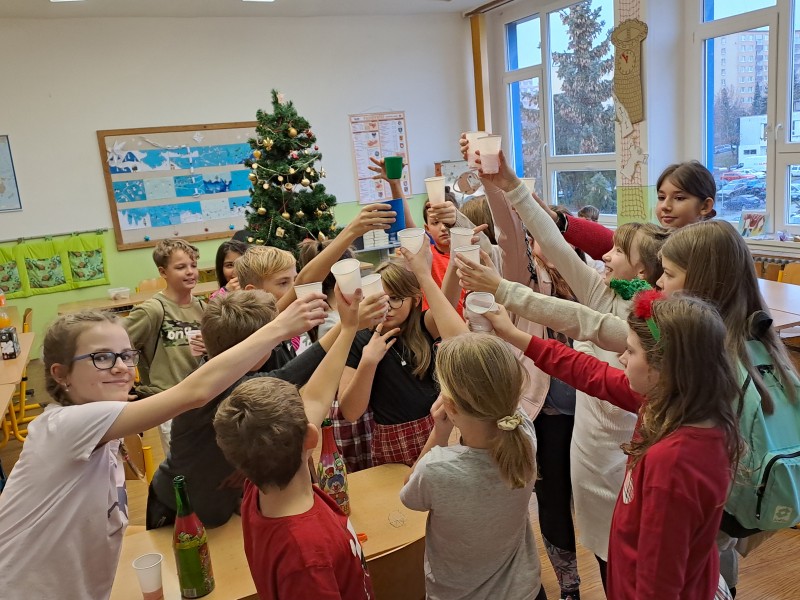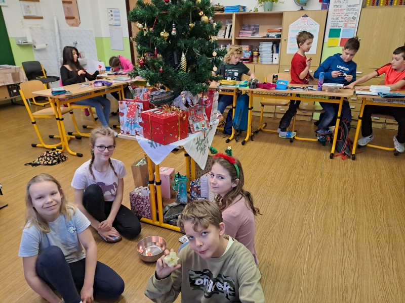 V pátek 22. prosince jsme si udělali besídku. Připomněli jsme si lidové zvyky, vyrobili přání, zazpívali si se sborem koledy. Kamarádi si předali dárky. Nakonec jsme si popřáli krásné Vánoce a hodně štěstí, zdraví v novém roce.